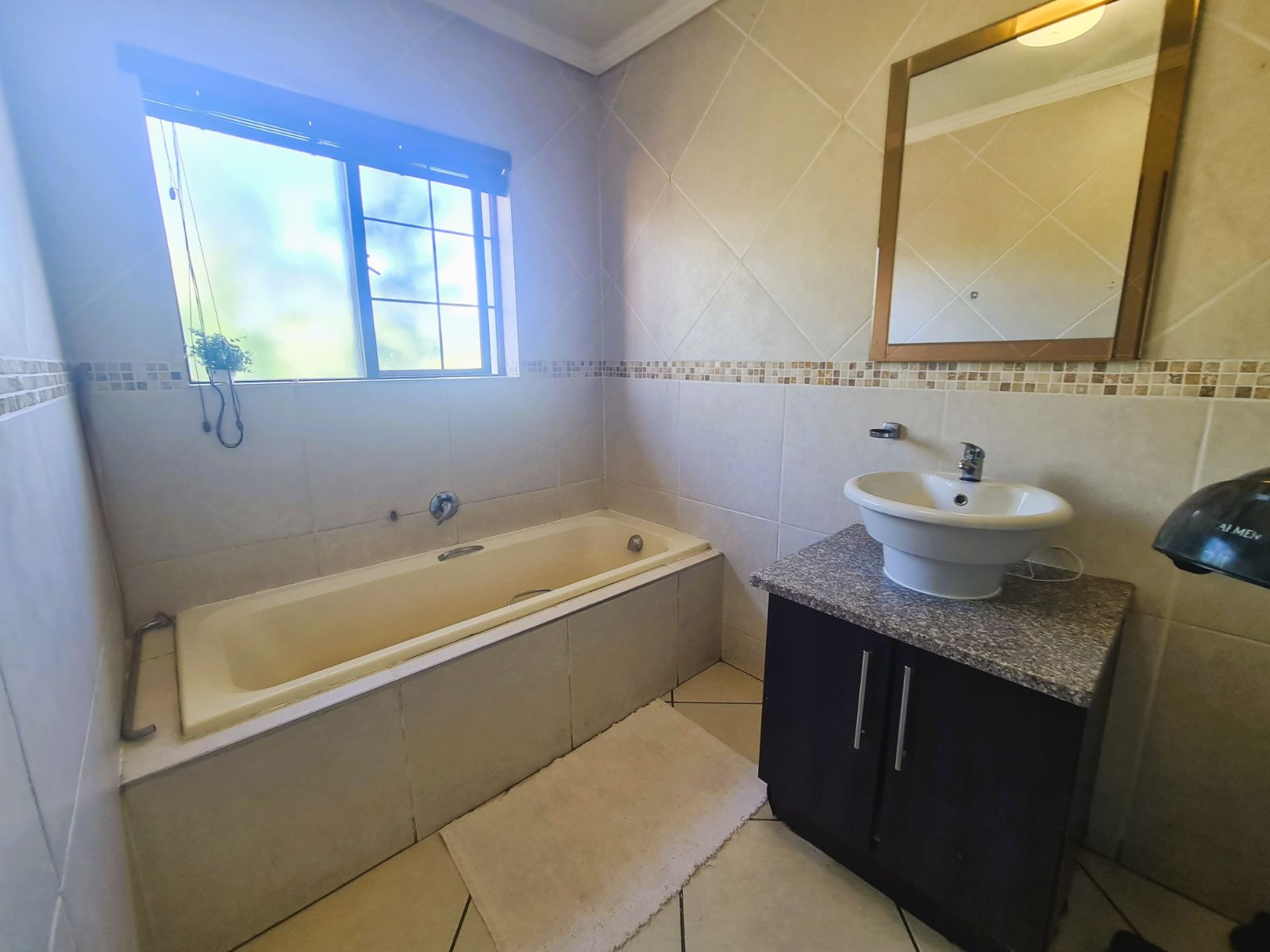 Beautiful kitchen with granite tops and a separate scullery, open-plan dining area, and a spacious lounge that opens up onto a covered patio with a built-in braai — perfect for entertaining while overlooking the well-kept garden. There is also a guest toilet for convenience.
