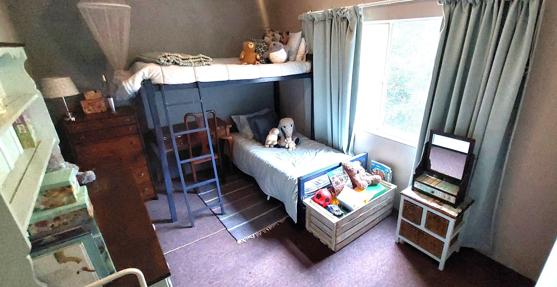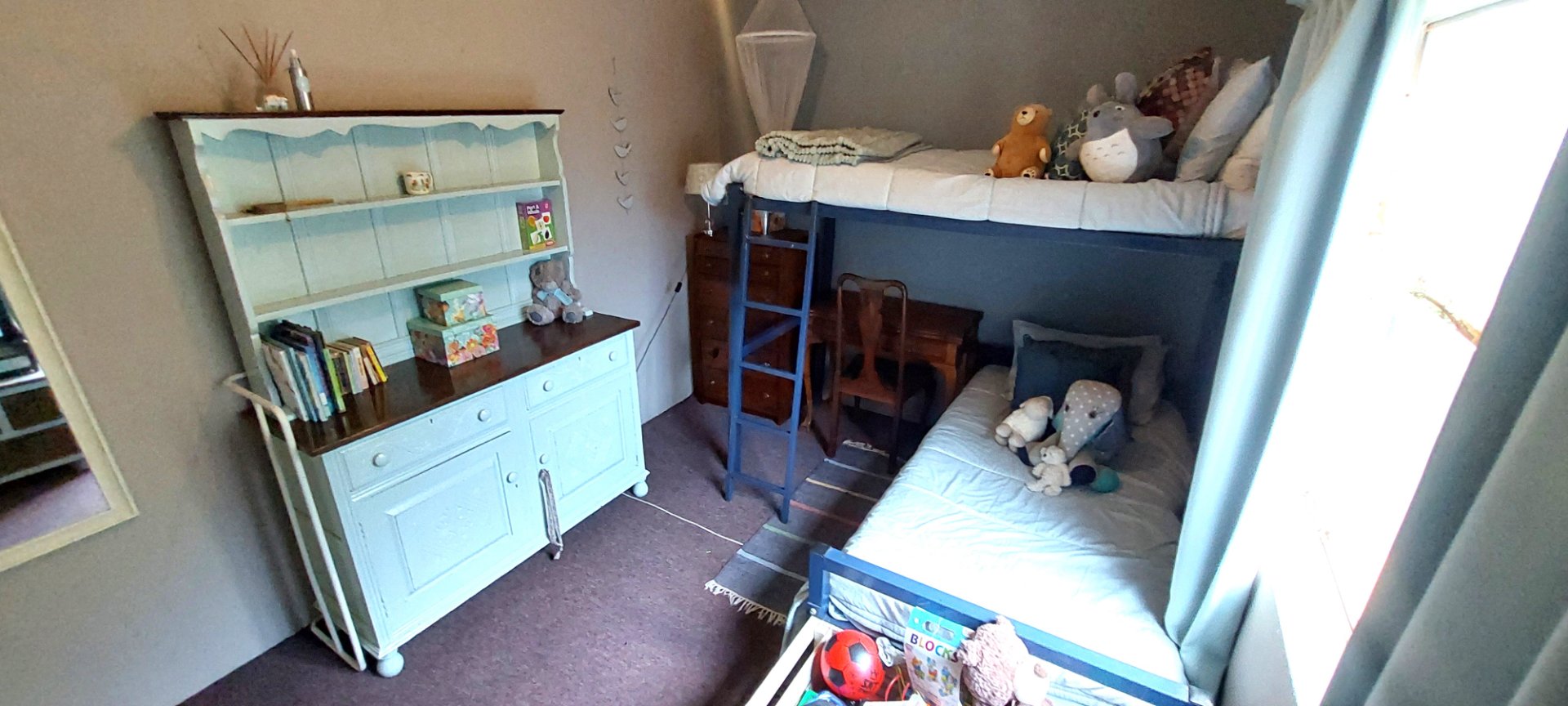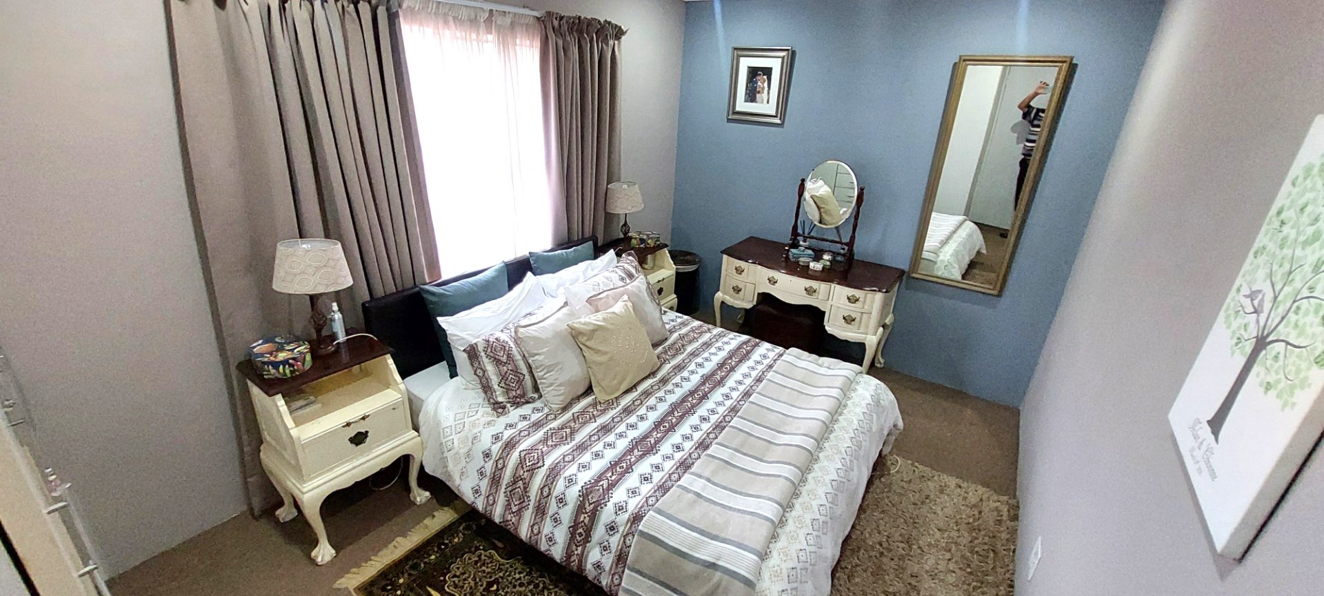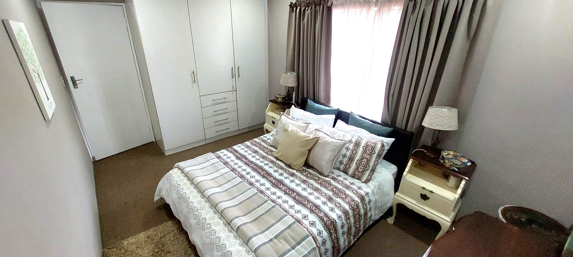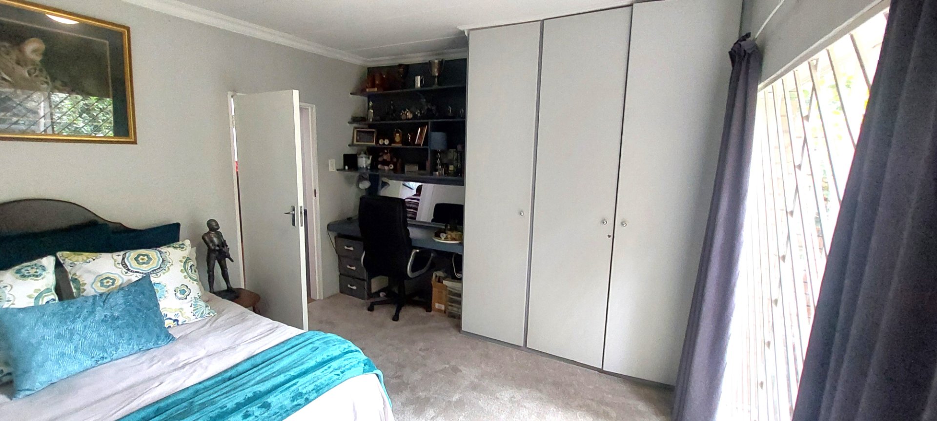 o Three spacious bedrooms with carpets and large windows.