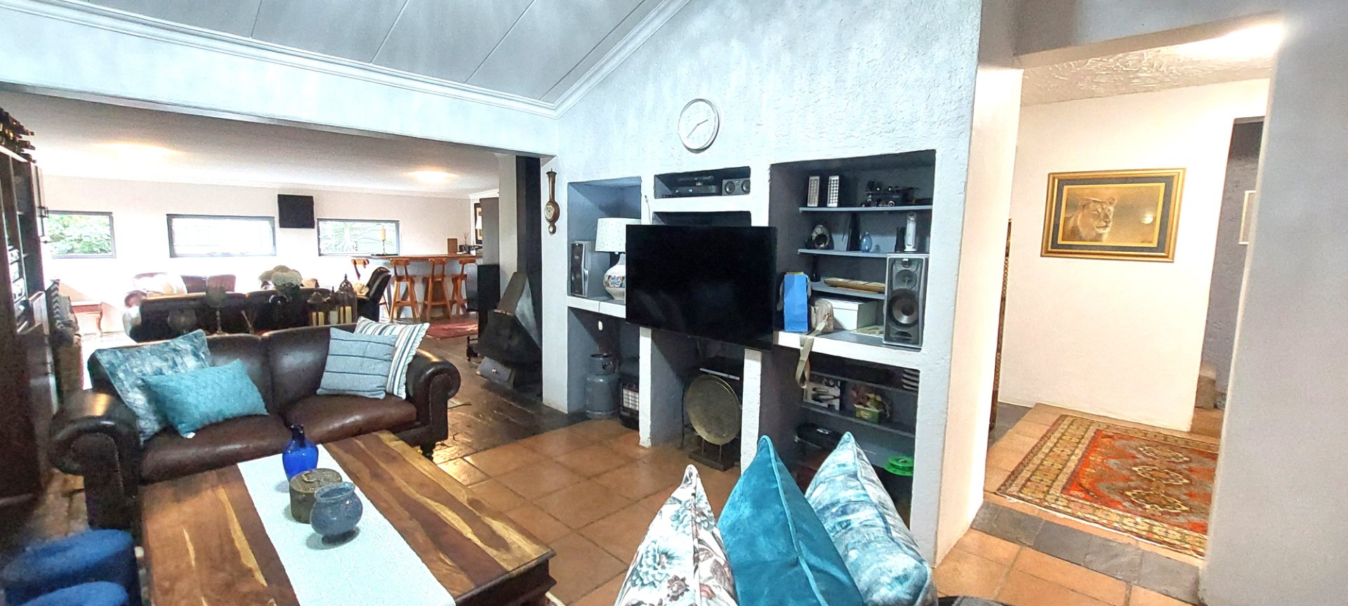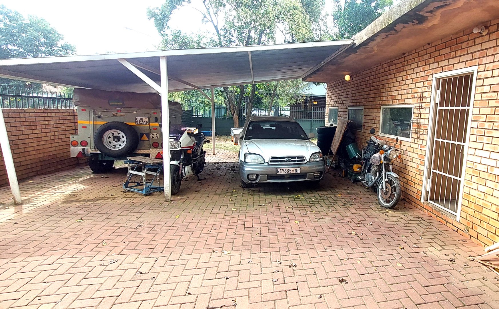 o Ample parking space for cars, a caravan, and bakkies. The double garage features motorized doors, while a single garage and carport accommodate 3 more vehicles. There’s additional safe parking for visitors and extra driveway space.