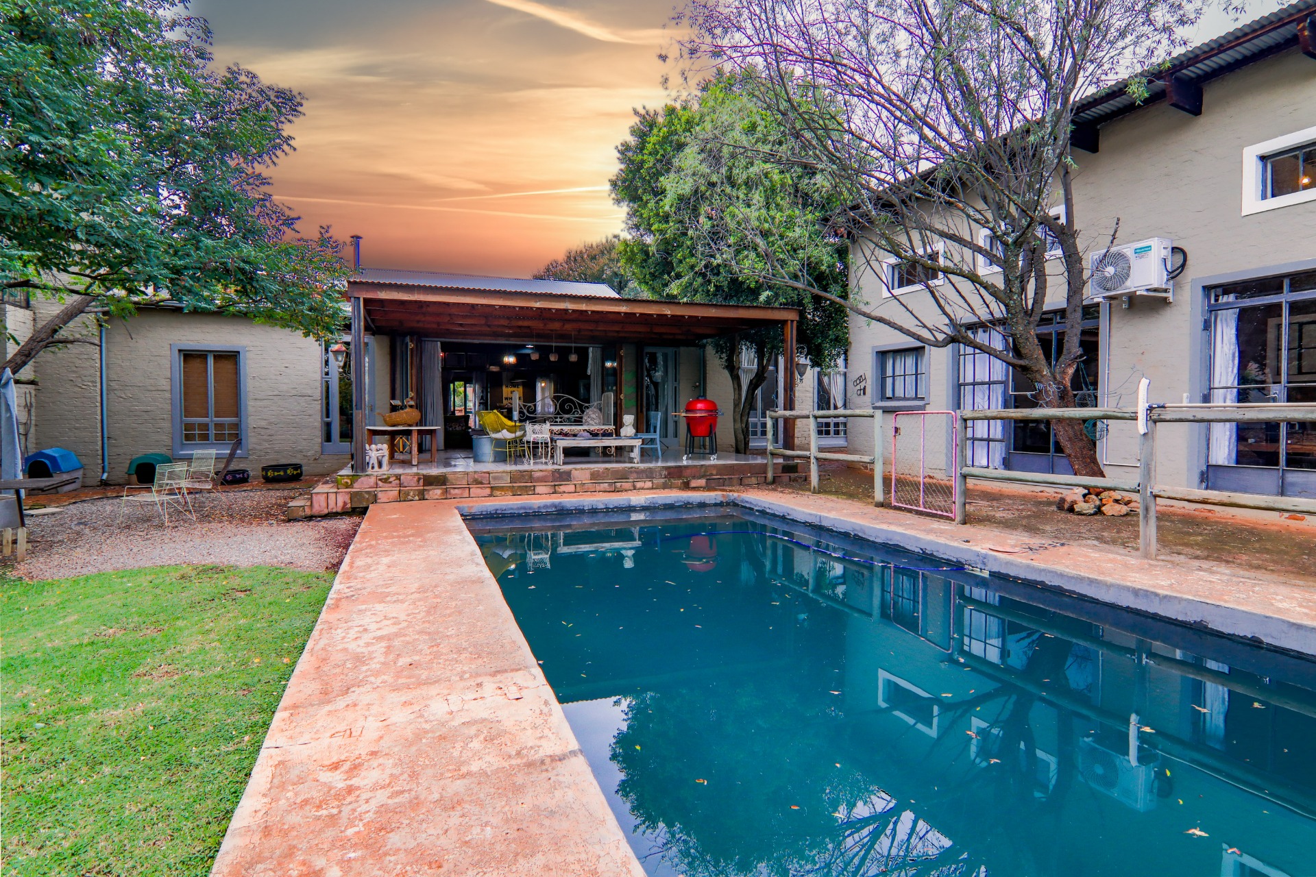 Surrounded by expansive gardens, this home is ideal for gardening enthusiasts. The pool and patio provide a perfect setting for al fresco dining and entertaining guests.