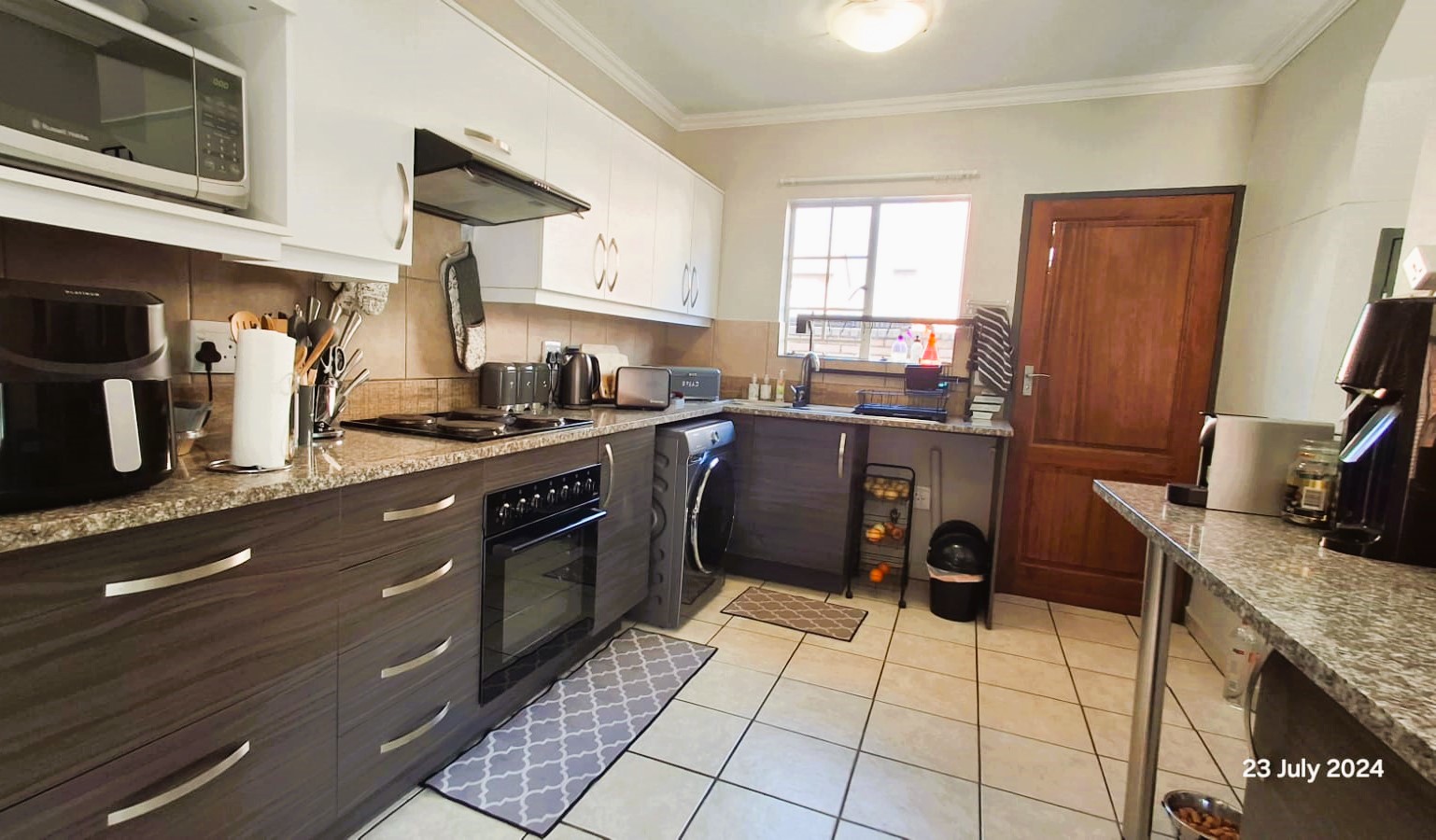 Open plan kitchen with lovely modern finishes and a scullery