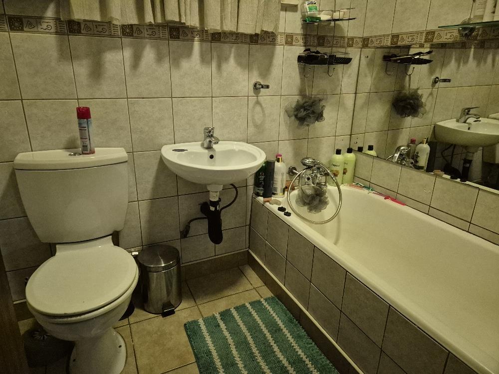 A well-appointed bathroom includes a bath, basin, and toilet, providing all the essentials for your daily routine.