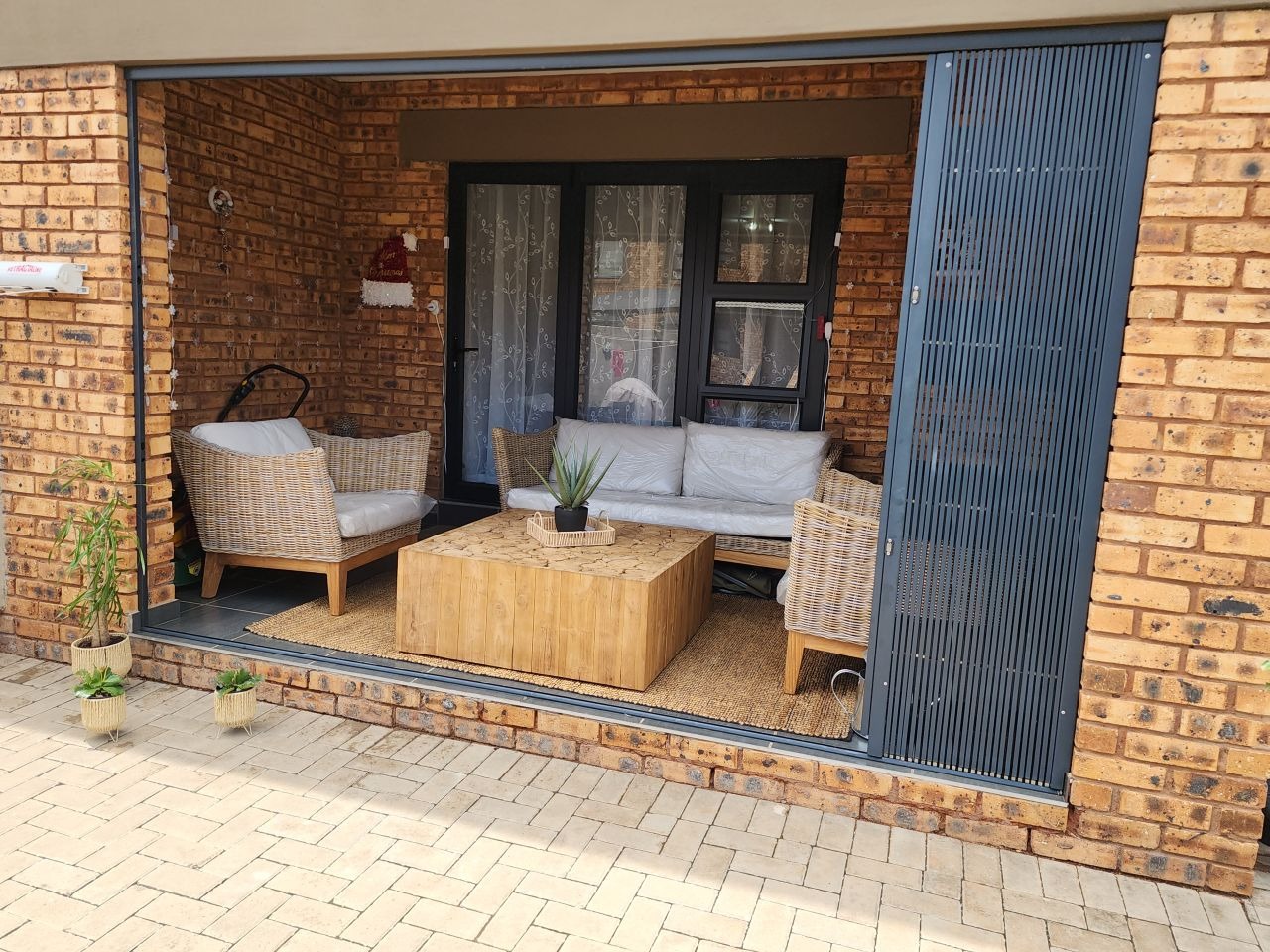 Tiled throughout this 3 bedroom, 2 bathroom unit has an open plan living area with sliding doors onto a covered patio overlooking a neat garden. The master bedroom is en-suite with a shower and the second bathroom has a bath. The kitchen has a gas hob and ample cupboard space. There is prepaid electricity, fiber and 2 covered parking bays.