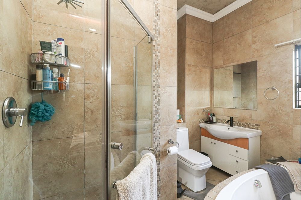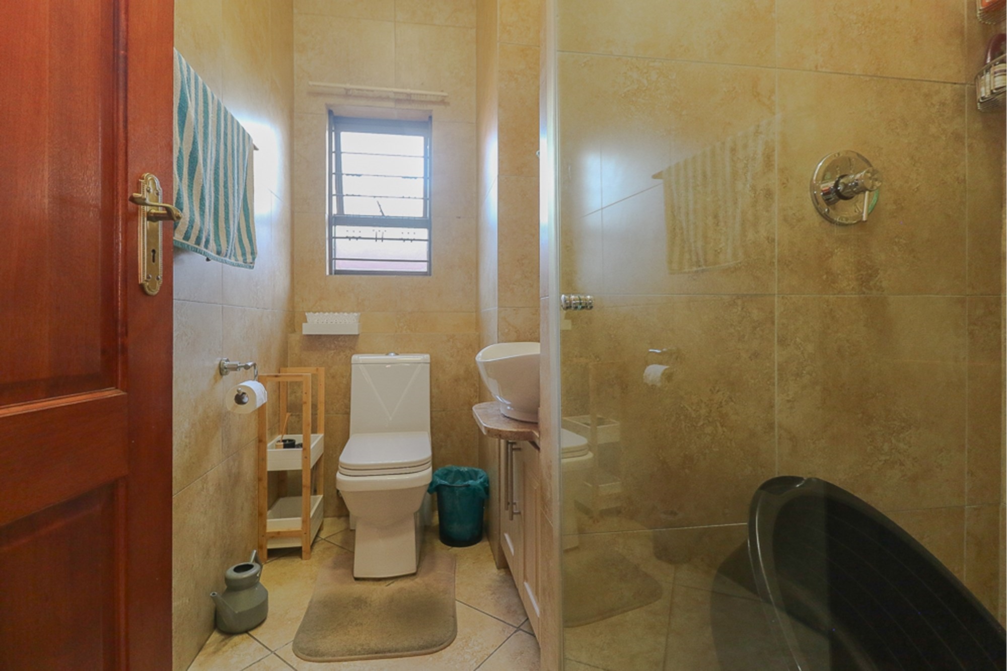 The kitchen is thoughtfully designed with high-end finishes, including eye-level ovens, a gas hob, and space for three appliances. A convenient storage cupboard and a dedicated study area in the passage which may be easily convertible into extra cupboard space all add to the home’s practical appeal.