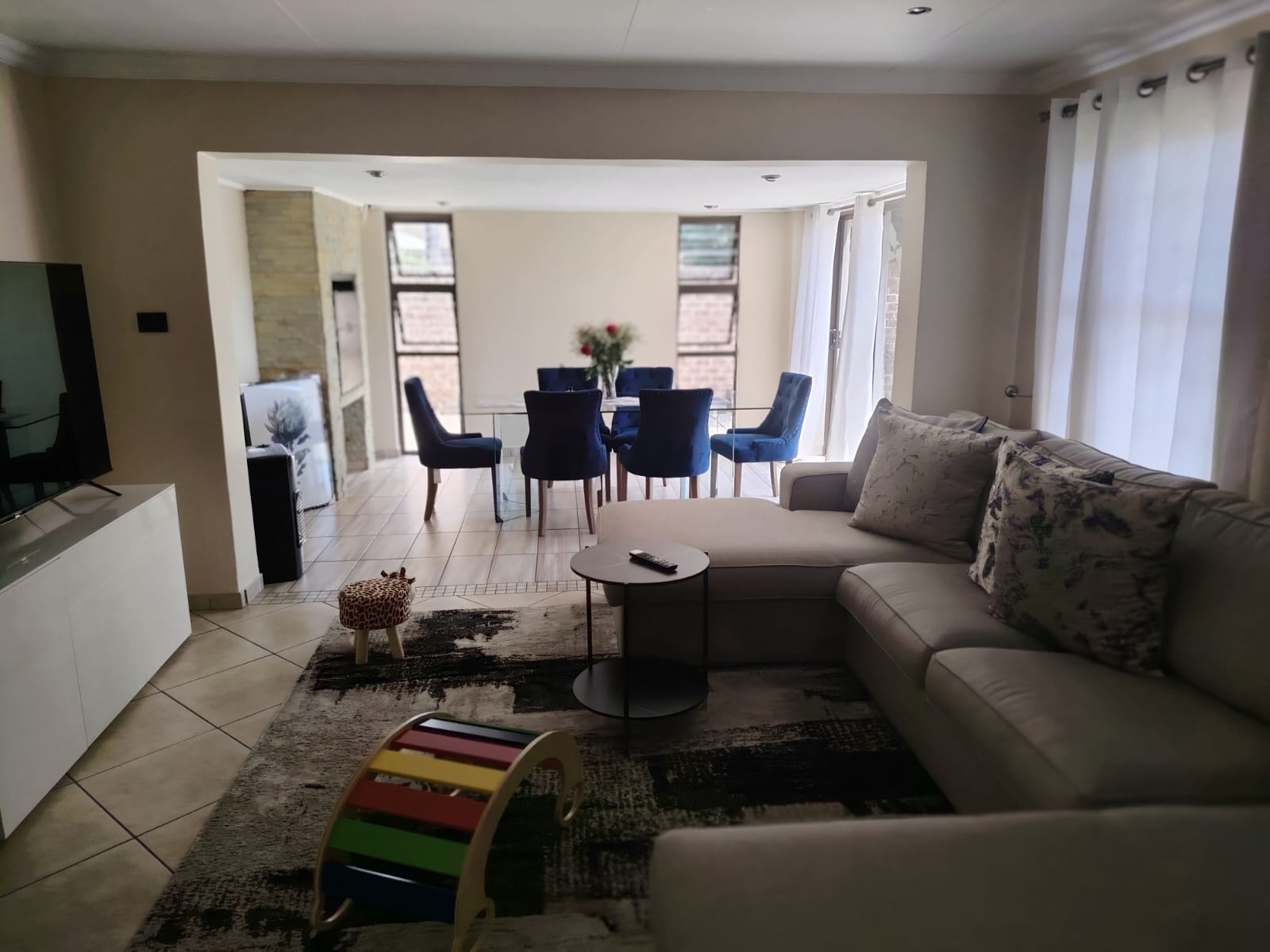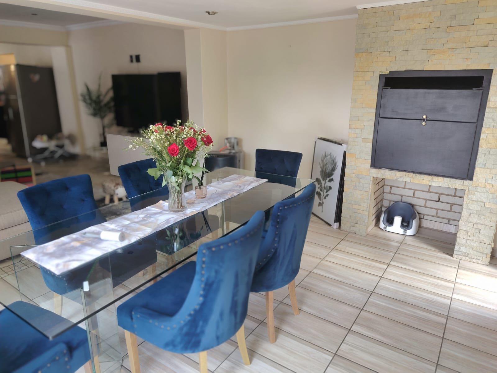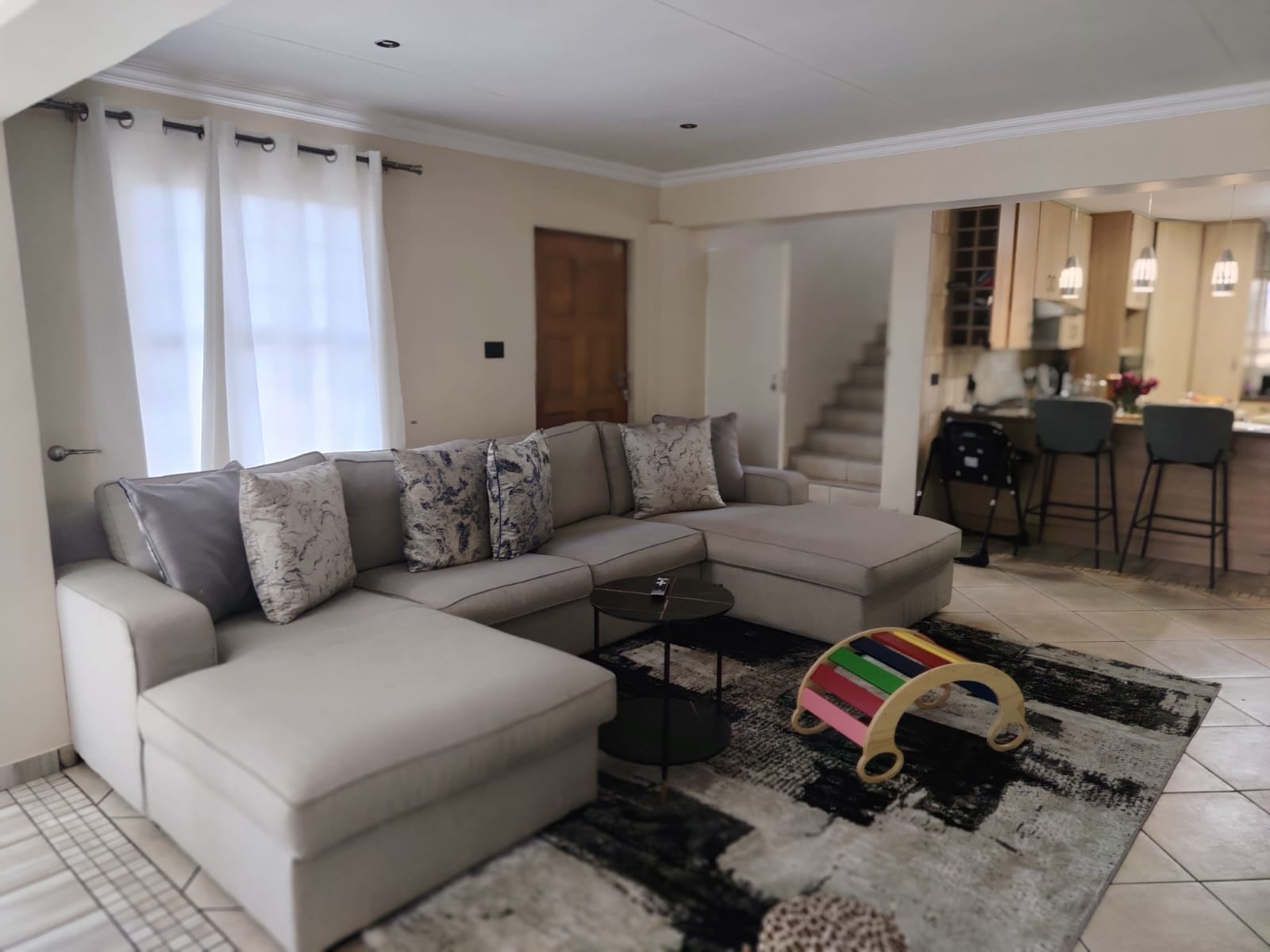 Experience sophisticated estate living in this beautiful 4-bedroom duplex cluster home, perfectly positioned in a secure complex. Designed for seamless open-plan living, the modern kitchen – complete with gas stove and granite countertops – flows effortlessly into the spacious family room and versatile dining or entertainment area with a built-in braai. Step outside to your pet-friendly garden and solar-heated swimming pool – ideal for indoor-outdoor entertaining all year round.
