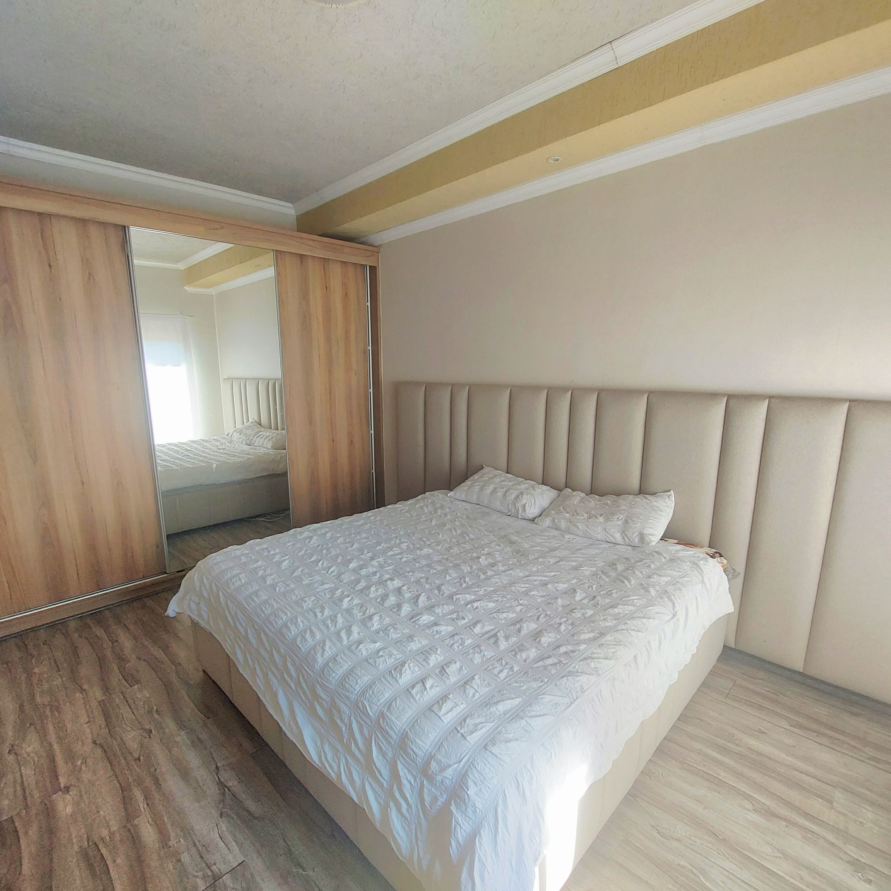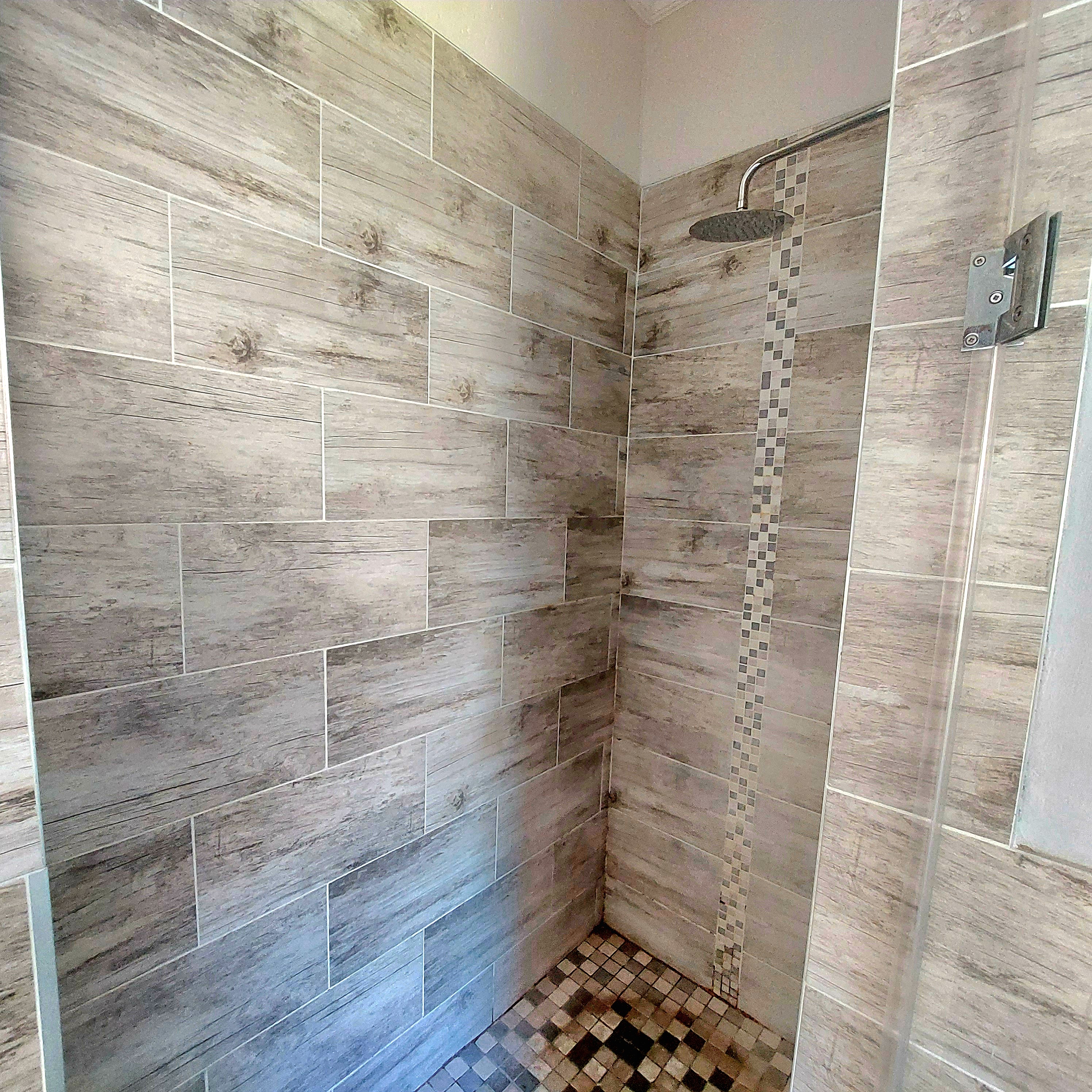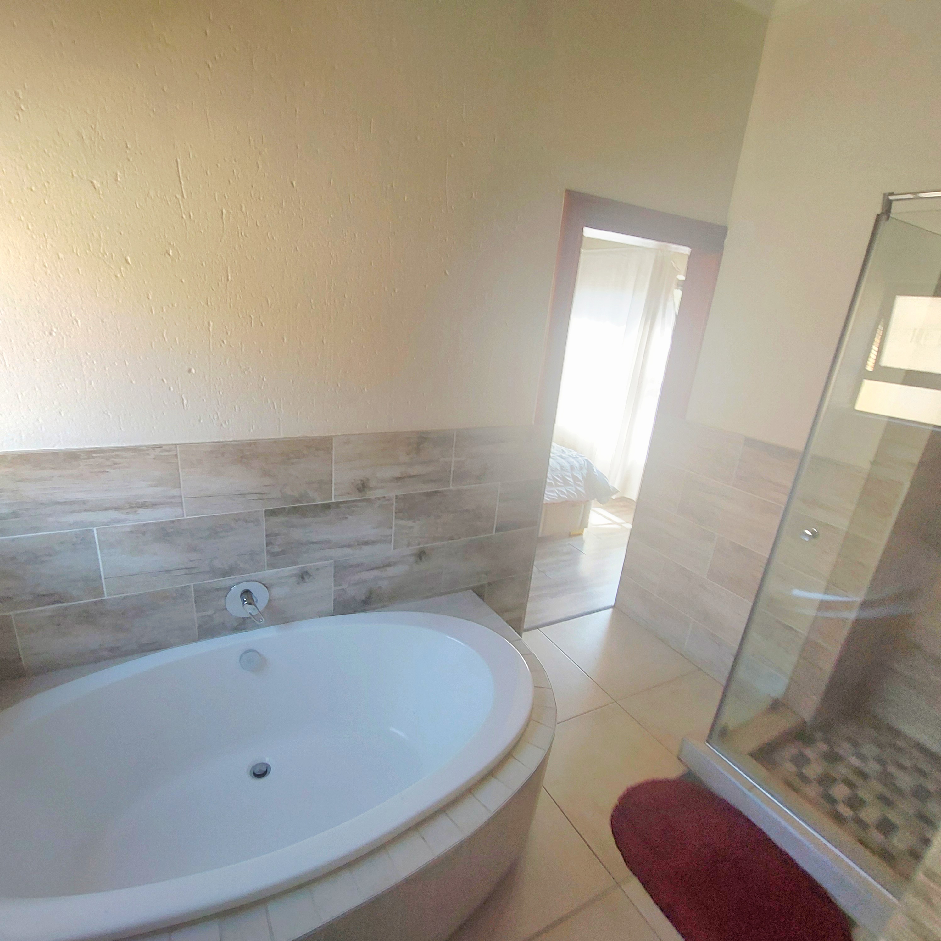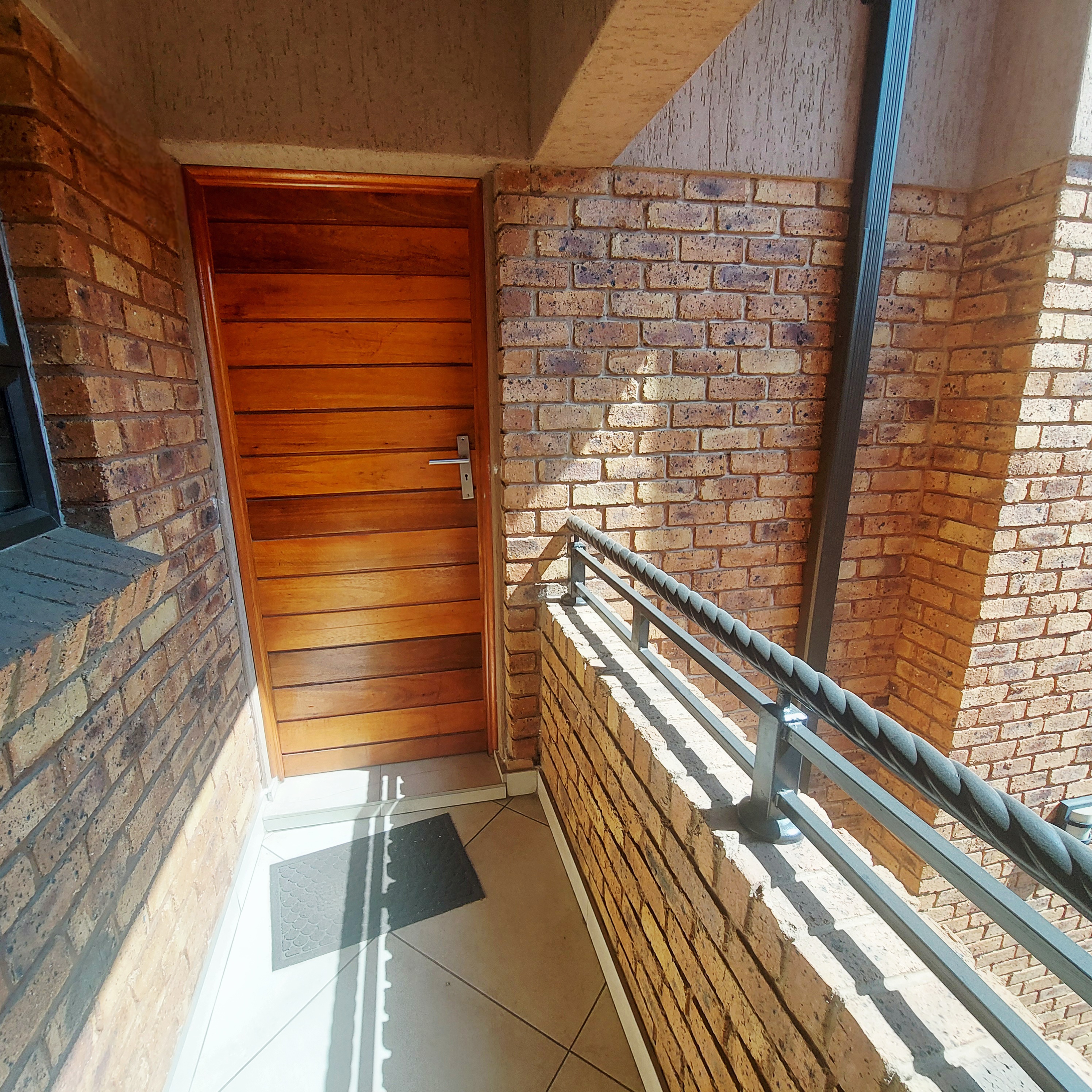 Offering 2 spacious bedrooms and 2 elegant bathrooms, the home is designed with high ceilings and generously sized rooms throughout, creating a light and airy feel. The contemporary kitchen features Caesar stone countertops, a gas cooker, and ample cupboard space, flowing seamlessly into the large dining area and open-plan lounge. From here, sliding doors open onto a spacious balcony with a built-in braai area – perfect for entertaining.