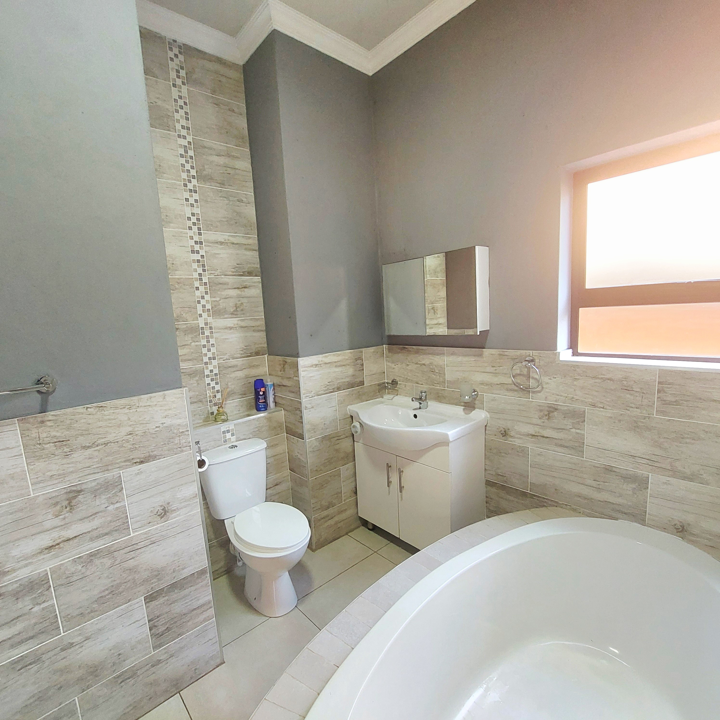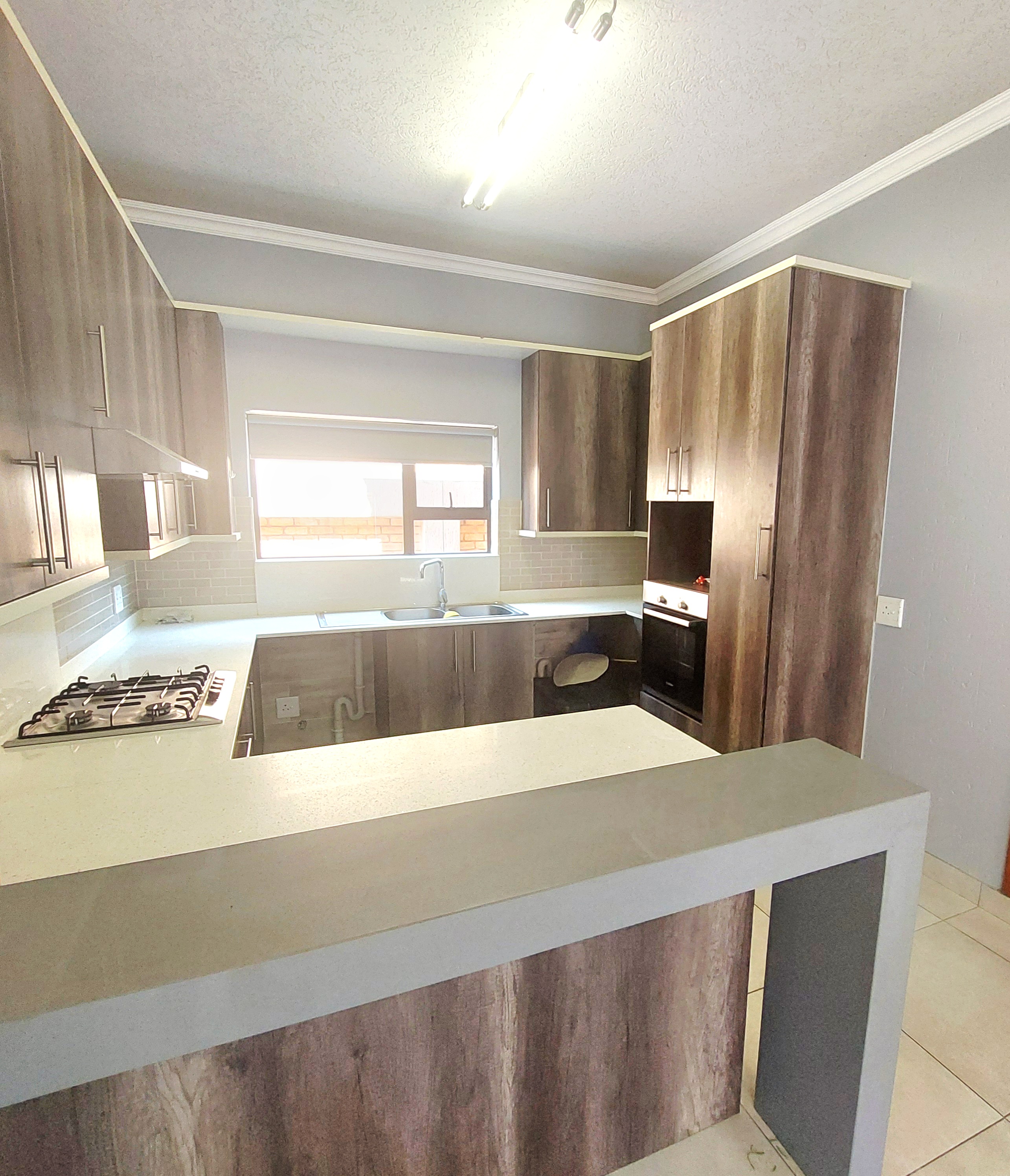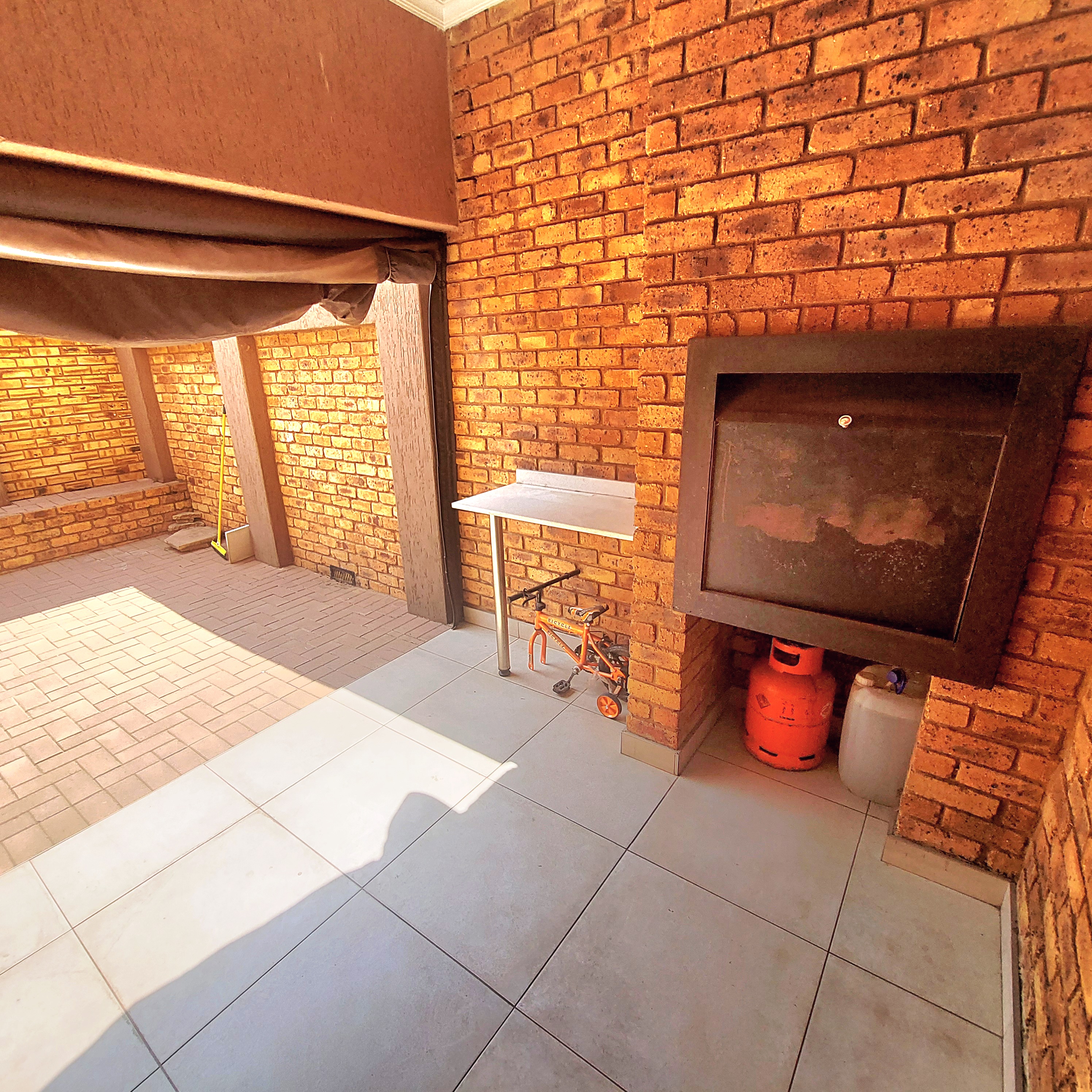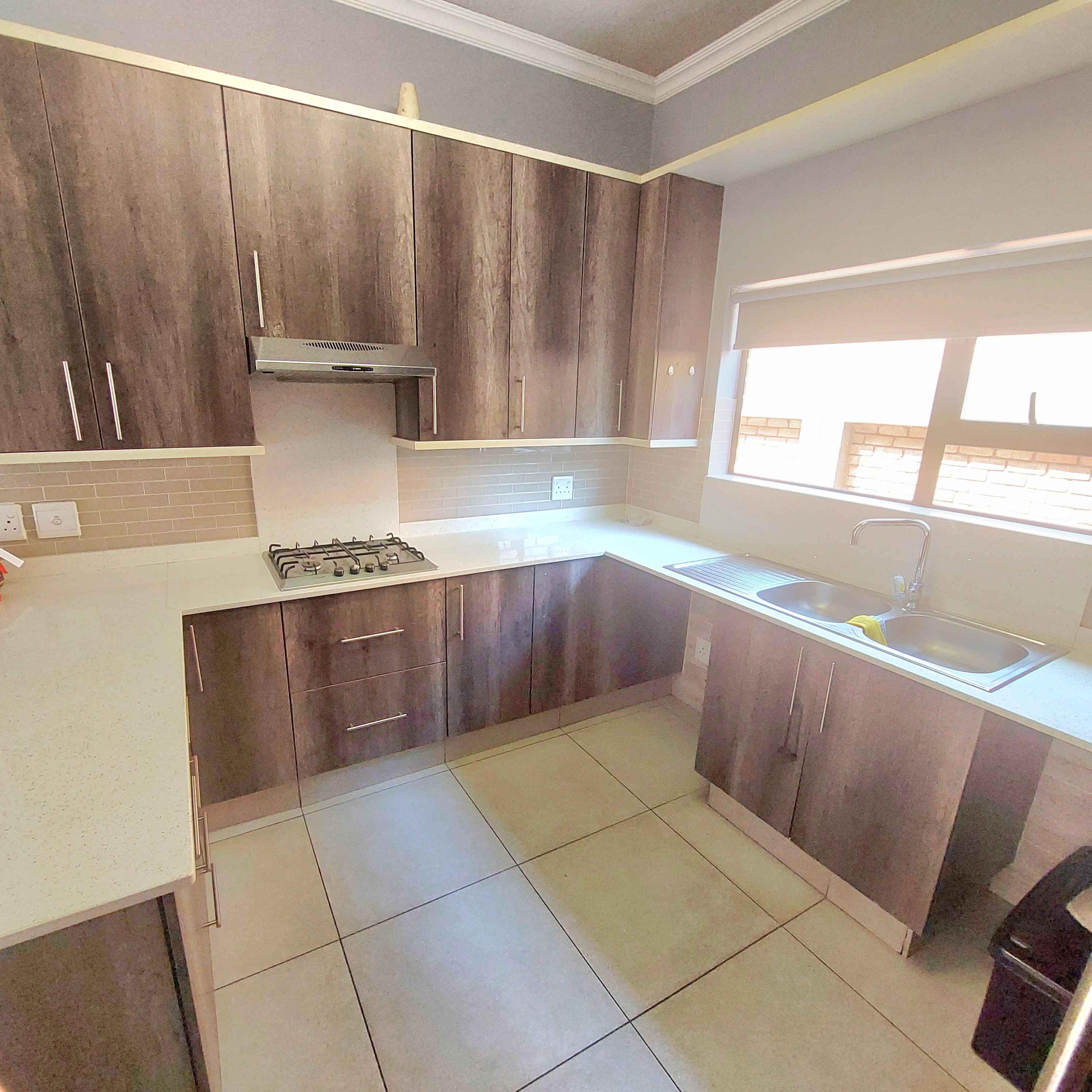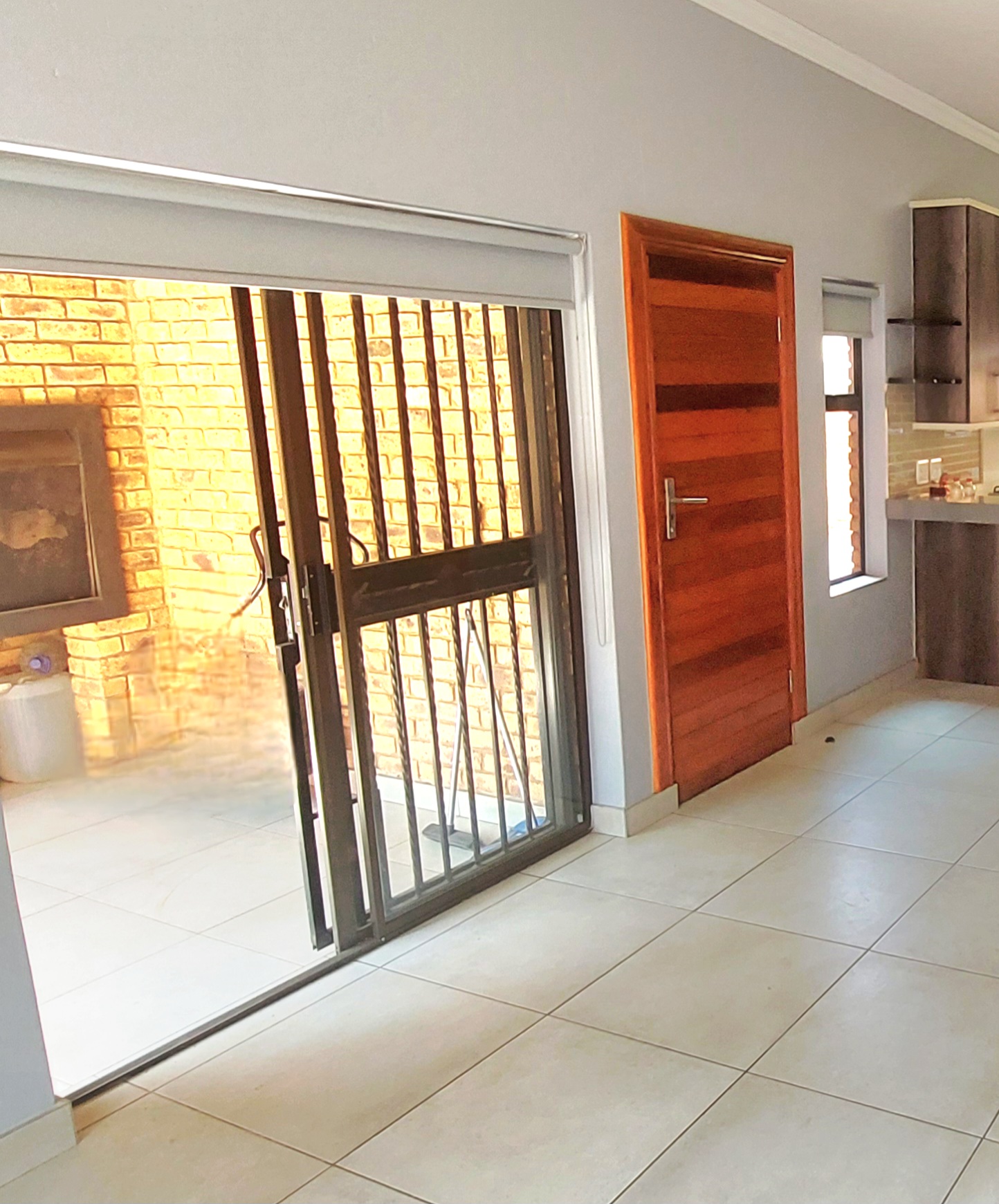 The inviting lounge flows seamlessly to a large, enclosed braai area, ideal for year-round entertaining, and opens out to a well-sized private garden that is pet friendly. As a corner unit, the home enjoys exceptional privacy and tranquility.