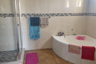 Big house for the larger family! Huge 5 bedrooms, 4 bathrooms, 3 living areas, 4 garages double storey house in Rayton Estates with glorious views over the estates. The ground floor consists of a very comfortably sized open plan living area which consists of a lounge with guest toilet, a huge modern kitchen with granite tops, breakfast nook, stove, pantry and separate scullery and dining room which flows onto a large covered patio with braai and a sparking swimming pool. There is a double garage which lead directly into the house and another double garage. There is also a study on the ground floor. Upstairs are 4 bedrooms, all bedrooms very spacious with lots of built-in cupboards, 3 bathrooms and is a large living area.