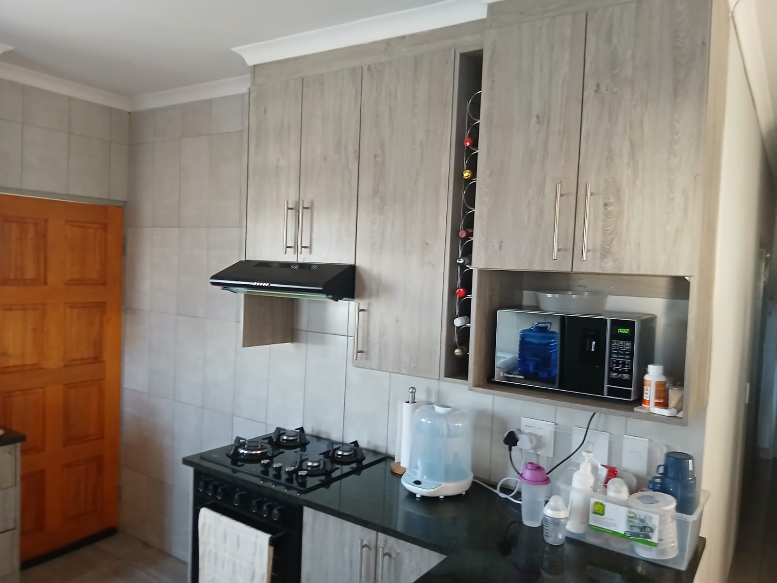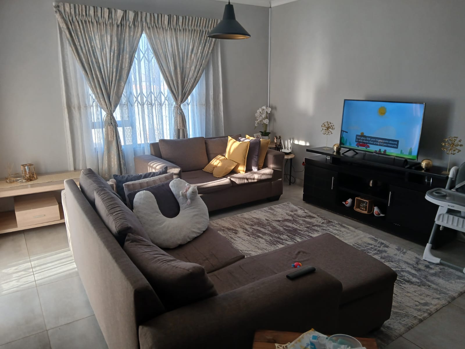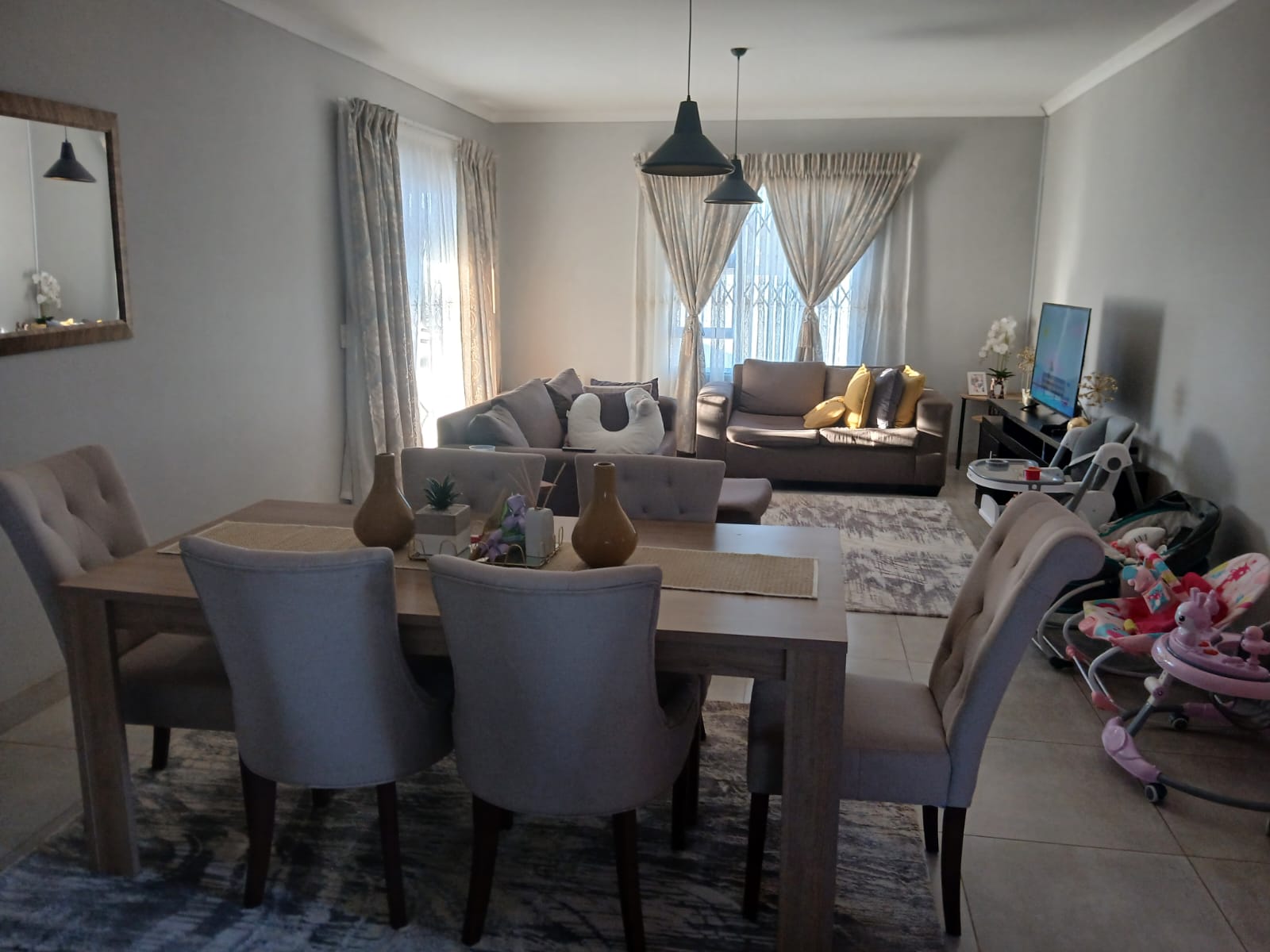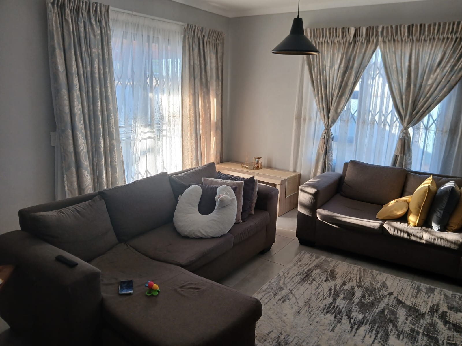 Step into modern elegance with this beautifully finished home—perfectly designed for first-time buyers who want style, comfort, and peace of mind. This stunning residence offers seamless open-plan living, enhanced by contemporary downlights and sleek tile flooring throughout. The designer kitchen is a standout feature, complete with granite countertops, a gas stove, electric oven, and a cozy breakfast nook that flows effortlessly into the spacious living and dining areas. Sliding doors open onto a charming veranda—secured with Trellidoors—creating an ideal indoor-outdoor living space for entertaining or relaxing. Each bedroom is tastefully tiled with built-in cupboards, while the master suite includes a private en-suite bathroom for your comfort and convenience. Enjoy outdoor living in the generous garden, perfect for kids, pets, or your own veggie patch. The paved backyard offers additional secure parking with a motorized gate, and a double carport at the front ensures easy access. Located in a secure estate with 24-hour guards, this home is not only move-in ready but also a smart, upmarket investment. Gutters around the entire home complete the thoughtful and practical design. Modern Finishes Secure Estate with 24-Hour Guarded Access Pet- and Family-Friendly Garden Extra Secure Parking + Double Carport Perfect for First-Time Buyers Your future home awaits—schedule a viewing today