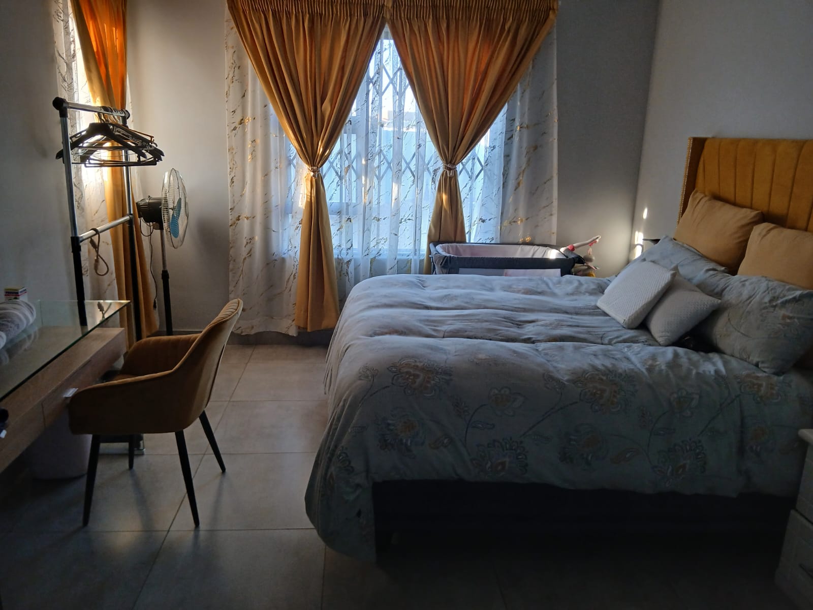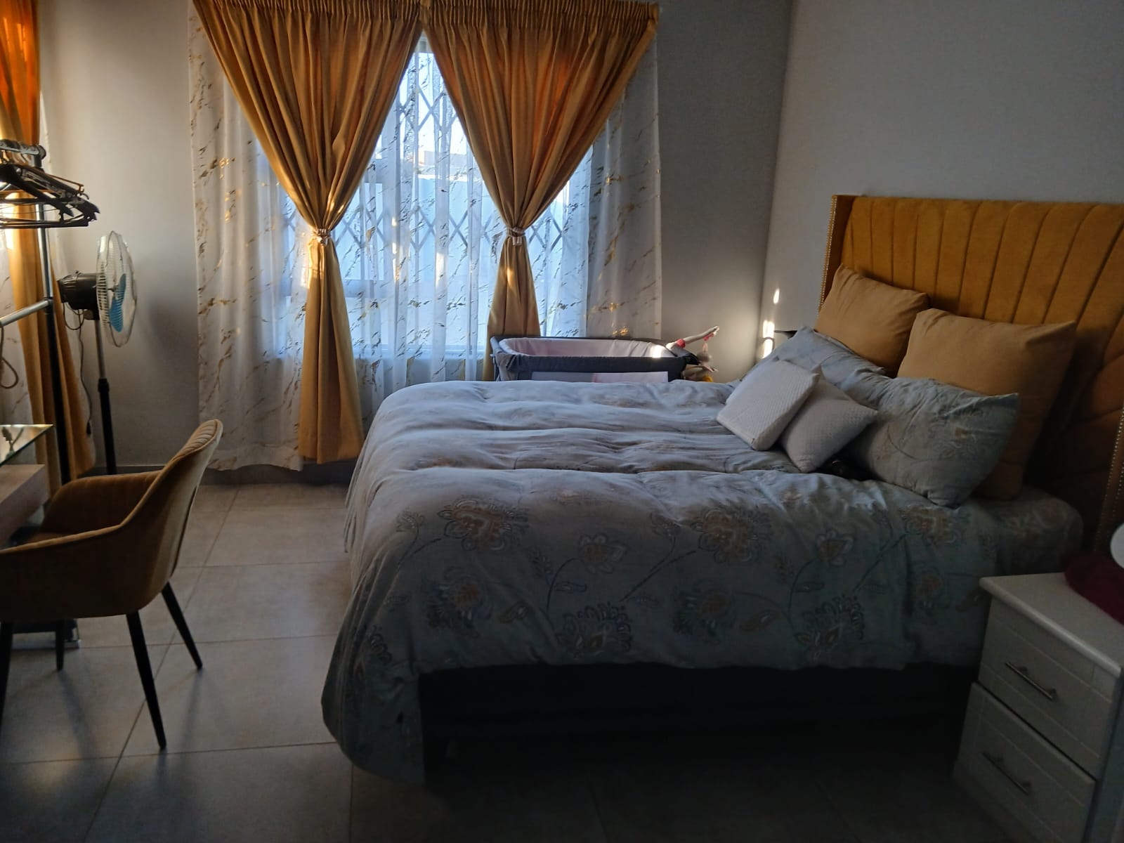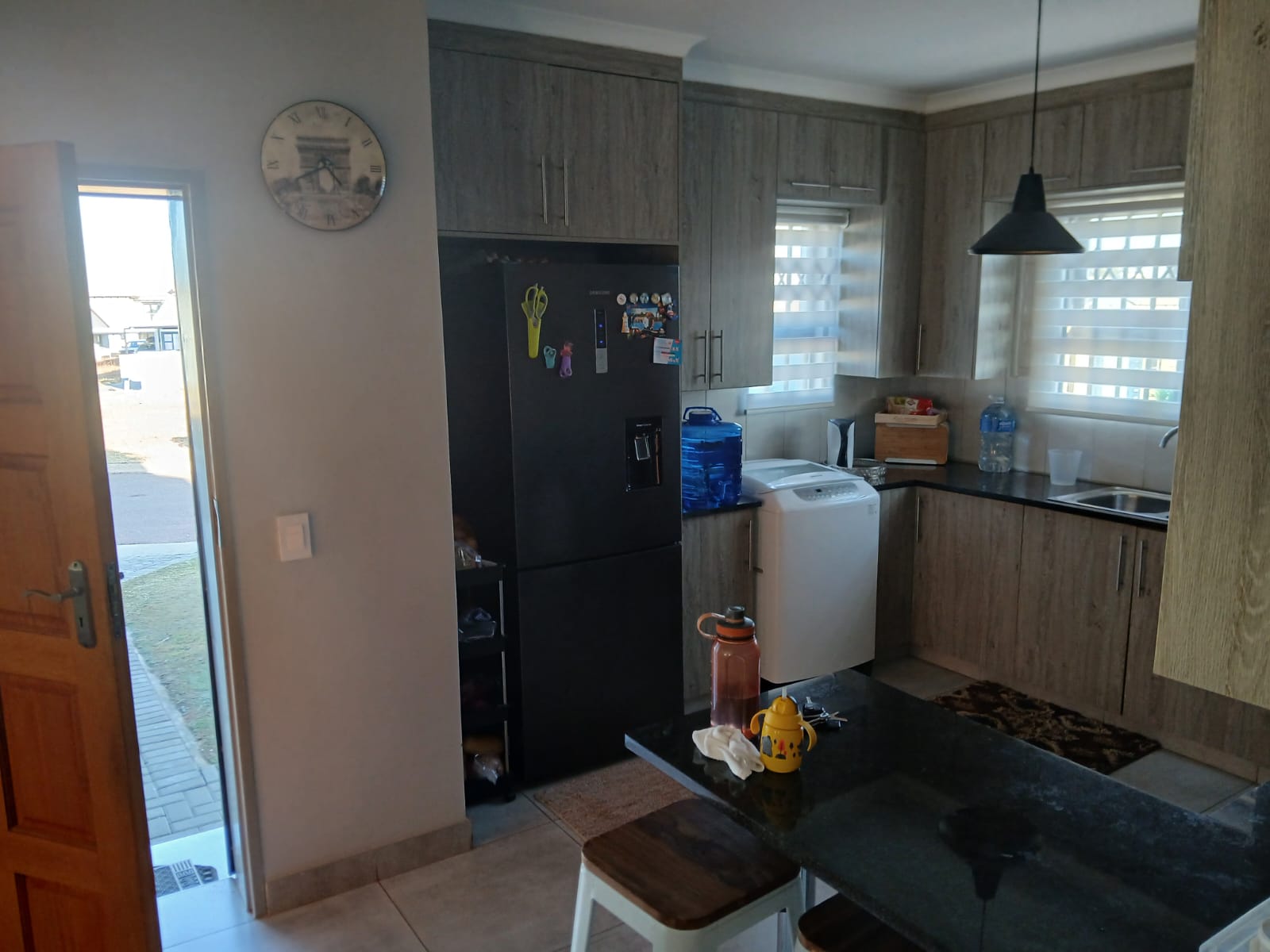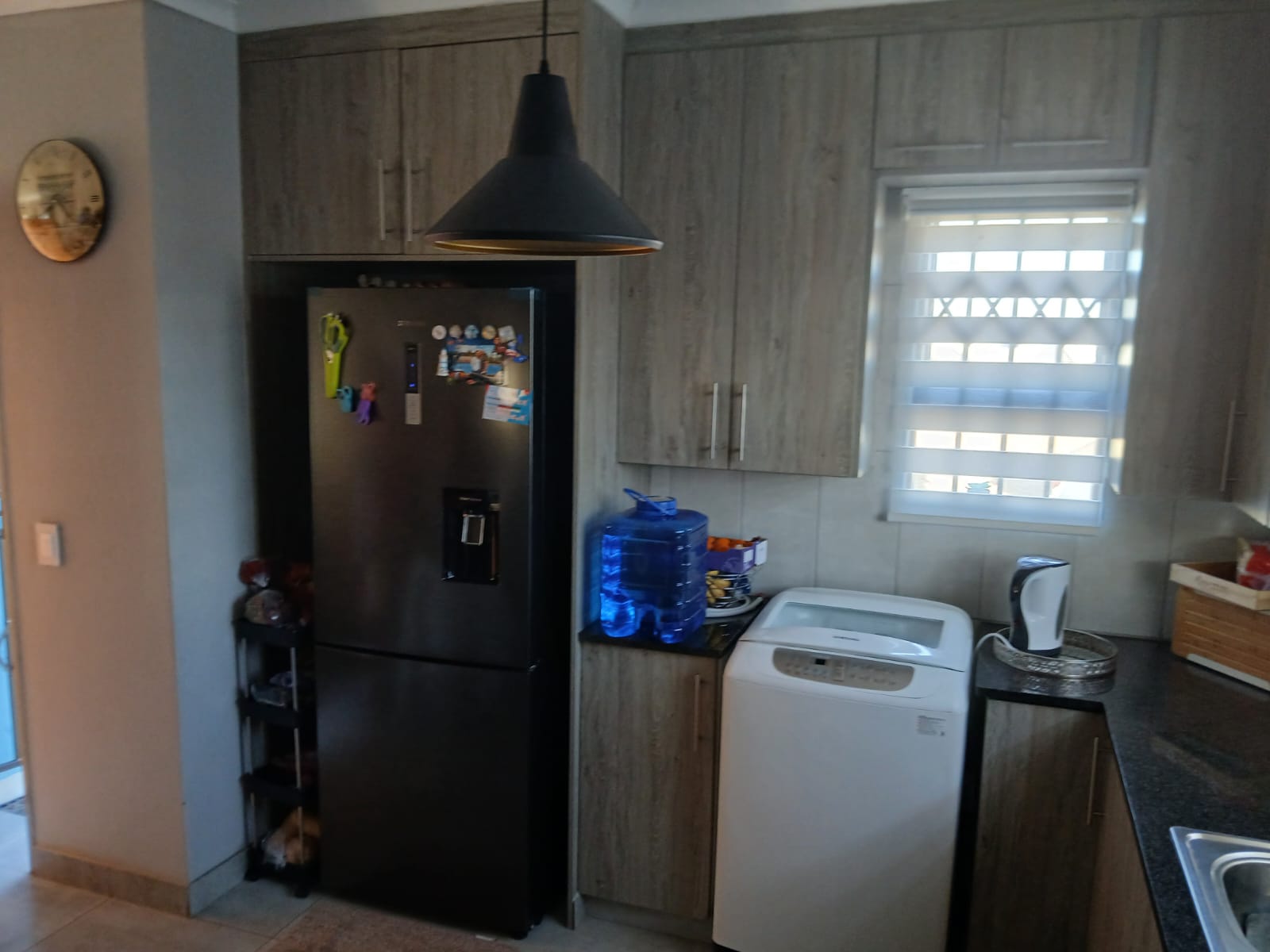 Step into modern elegance with this beautifully finished home—perfectly designed for first-time buyers who want style, comfort, and peace of mind. This stunning residence offers seamless open-plan living, enhanced by contemporary downlights and sleek tile flooring throughout. The designer kitchen is a standout feature, complete with granite countertops, a gas stove, electric oven, and a cozy breakfast nook that flows effortlessly into the spacious living and dining areas. Sliding doors open onto a charming veranda—secured with Trellidoors—creating an ideal indoor-outdoor living space for entertaining or relaxing. Each bedroom is tastefully tiled with built-in cupboards, while the master suite includes a private en-suite bathroom for your comfort and convenience. Enjoy outdoor living in the generous garden, perfect for kids, pets, or your own veggie patch. The paved backyard offers additional secure parking with a motorized gate, and a double carport at the front ensures easy access. Located in a secure estate with 24-hour guards, this home is not only move-in ready but also a smart, upmarket investment. Gutters around the entire home complete the thoughtful and practical design. Modern Finishes Secure Estate with 24-Hour Guarded Access Pet- and Family-Friendly Garden Extra Secure Parking + Double Carport Perfect for First-Time Buyers Your future home awaits—schedule a viewing today
