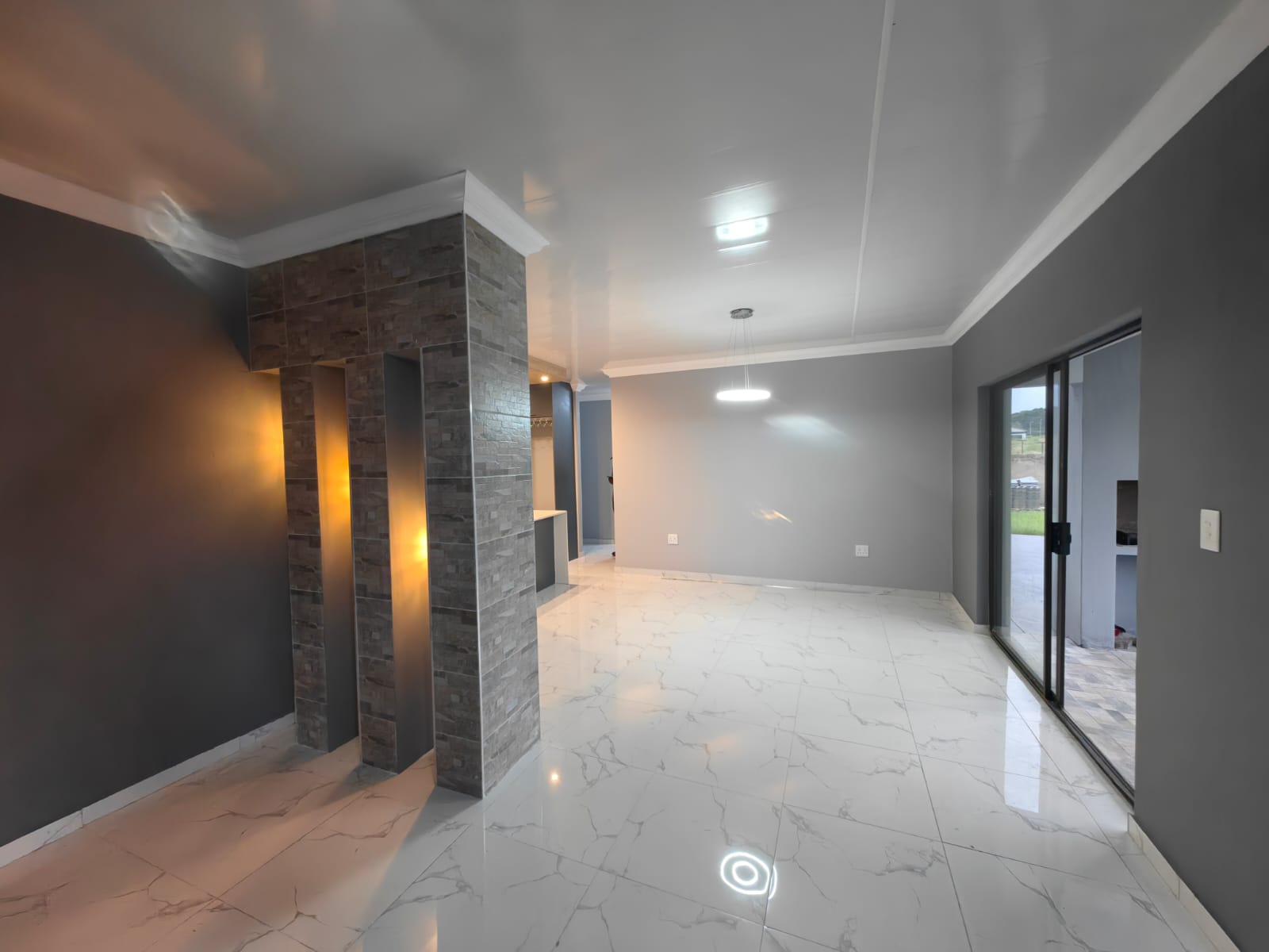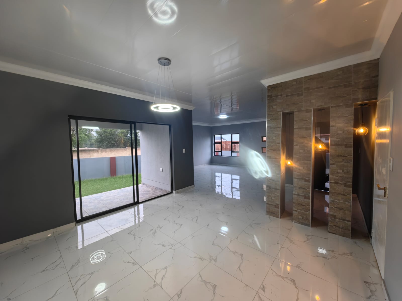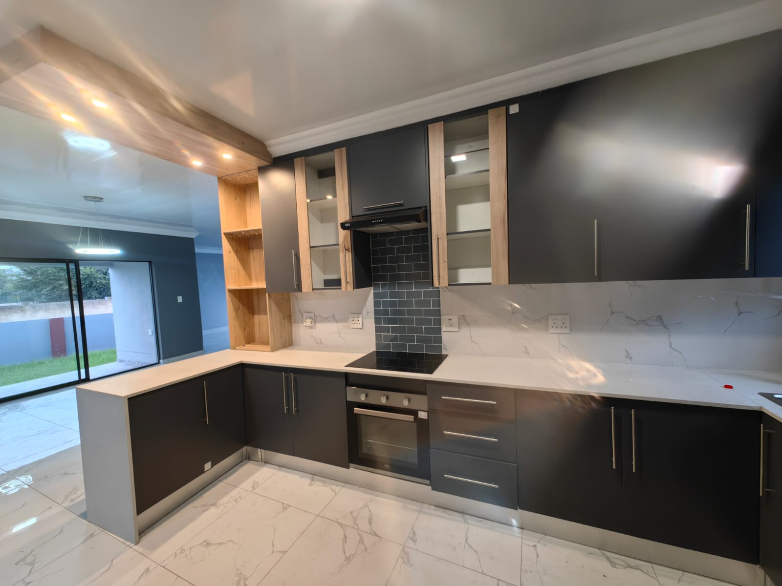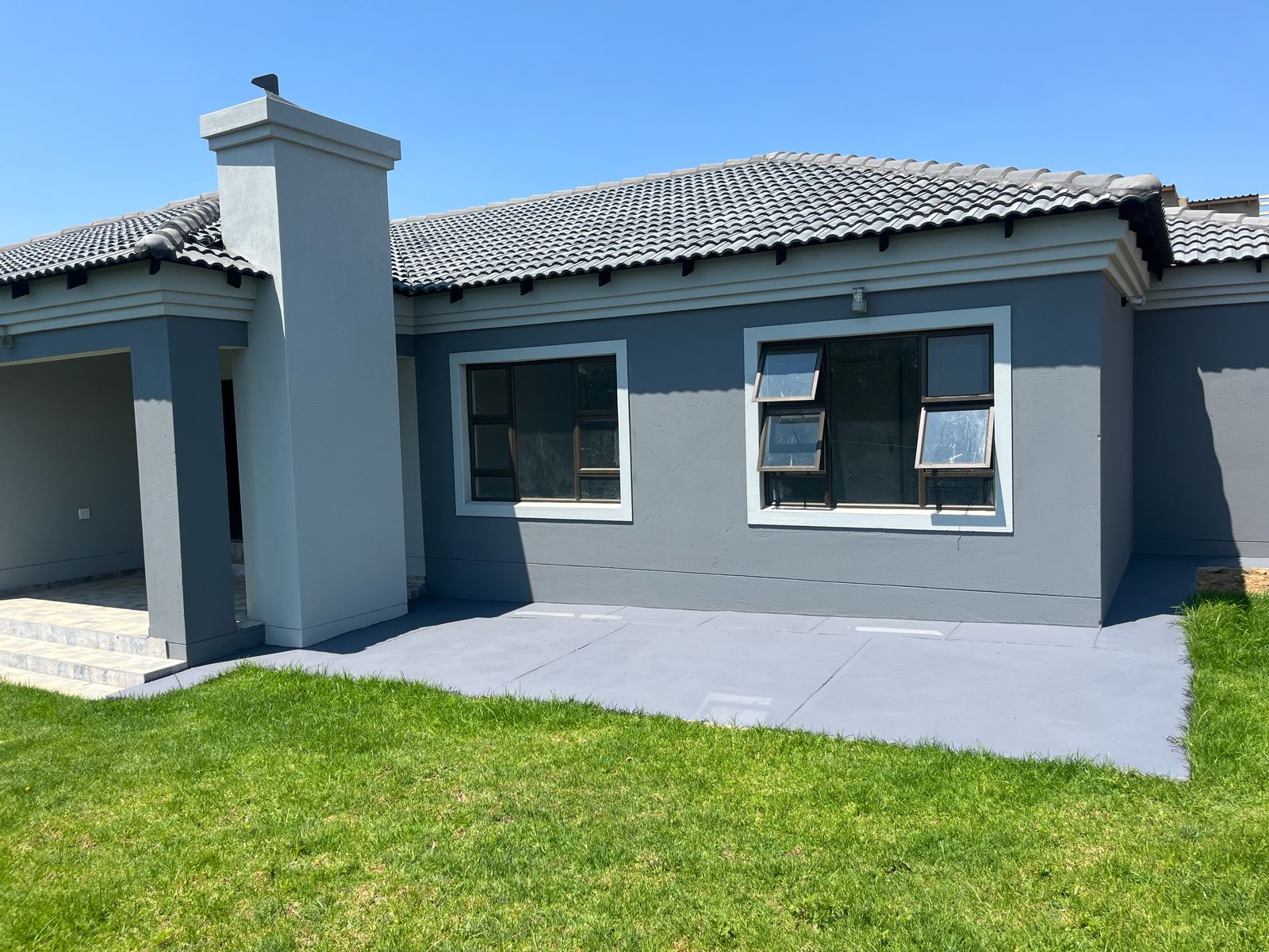 Lovely modern big single storey family house (210 sqm) in an exclusive security upmarket estate with levies of only R850 pm. Mandated Properties would like to offer you this excellent 3-bedroom buy in the small agricultural village Rayton, a mere 8 km from Cullinan. Easy access to the N4 Witbank Highway and only 20 minutes’ drive from Pretoria! Step inside and immediately notice the open-plan design, adorned with exposed beams that lend a rustic charm. The heart of the home is the spacious kitchen and more with frameless glass doors which seamlessly flow into a vast patio, ideal for entertaining guests or enjoying a relaxing meal outdoors. This family house offers you 3 bedrooms, (all bedrooms are spacious with built-in cupboards), the main bedroom has an en-suite bathroom, 2 full bathrooms, each featuring a bathtub, shower and a toilet. The living area consists of a very comfortably sized open plan dining room and an expansive lounge with a cozy fireplace for family gatherings and entertaining guests. There are 2 garages with electric doors for your comfort which lead directly into the house