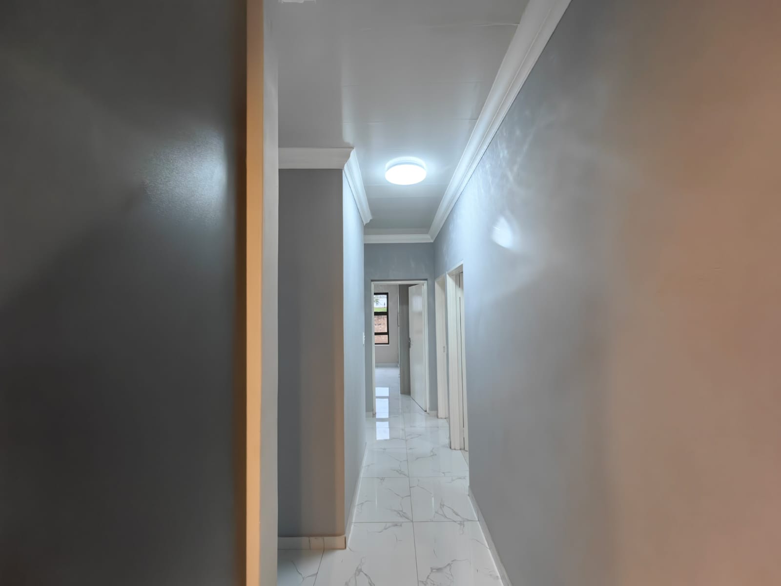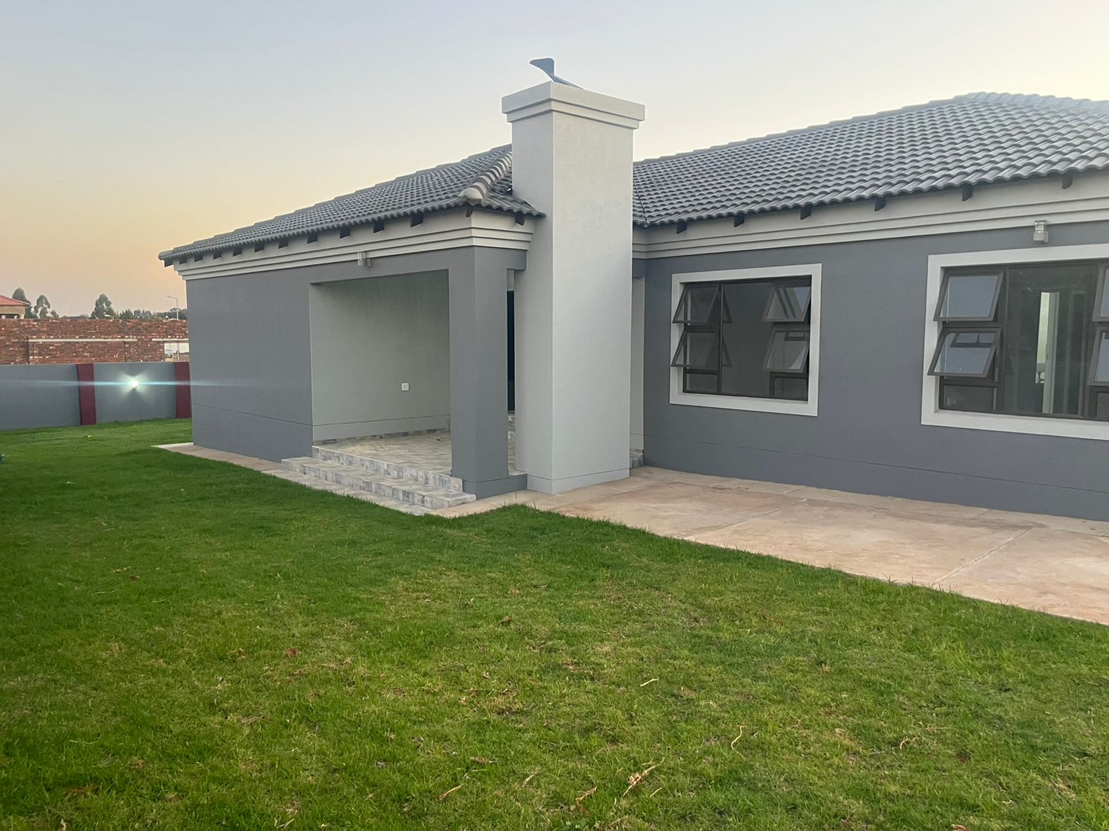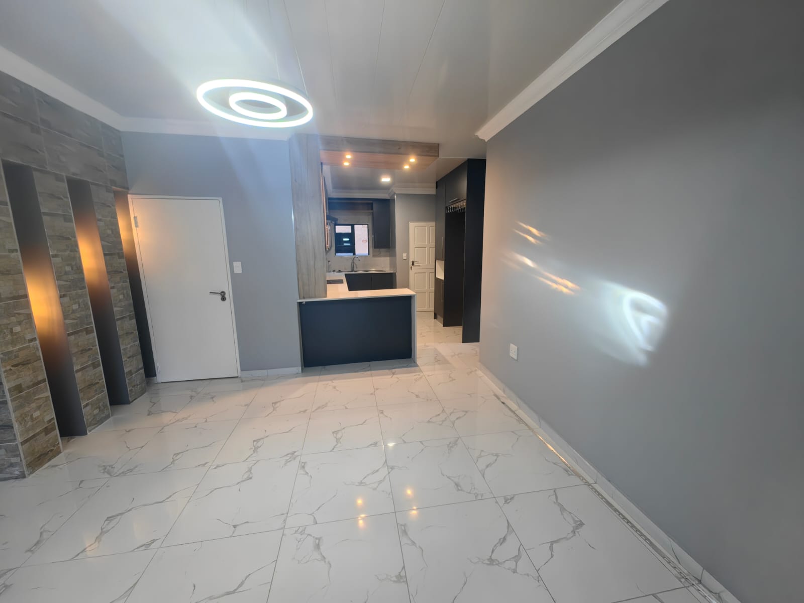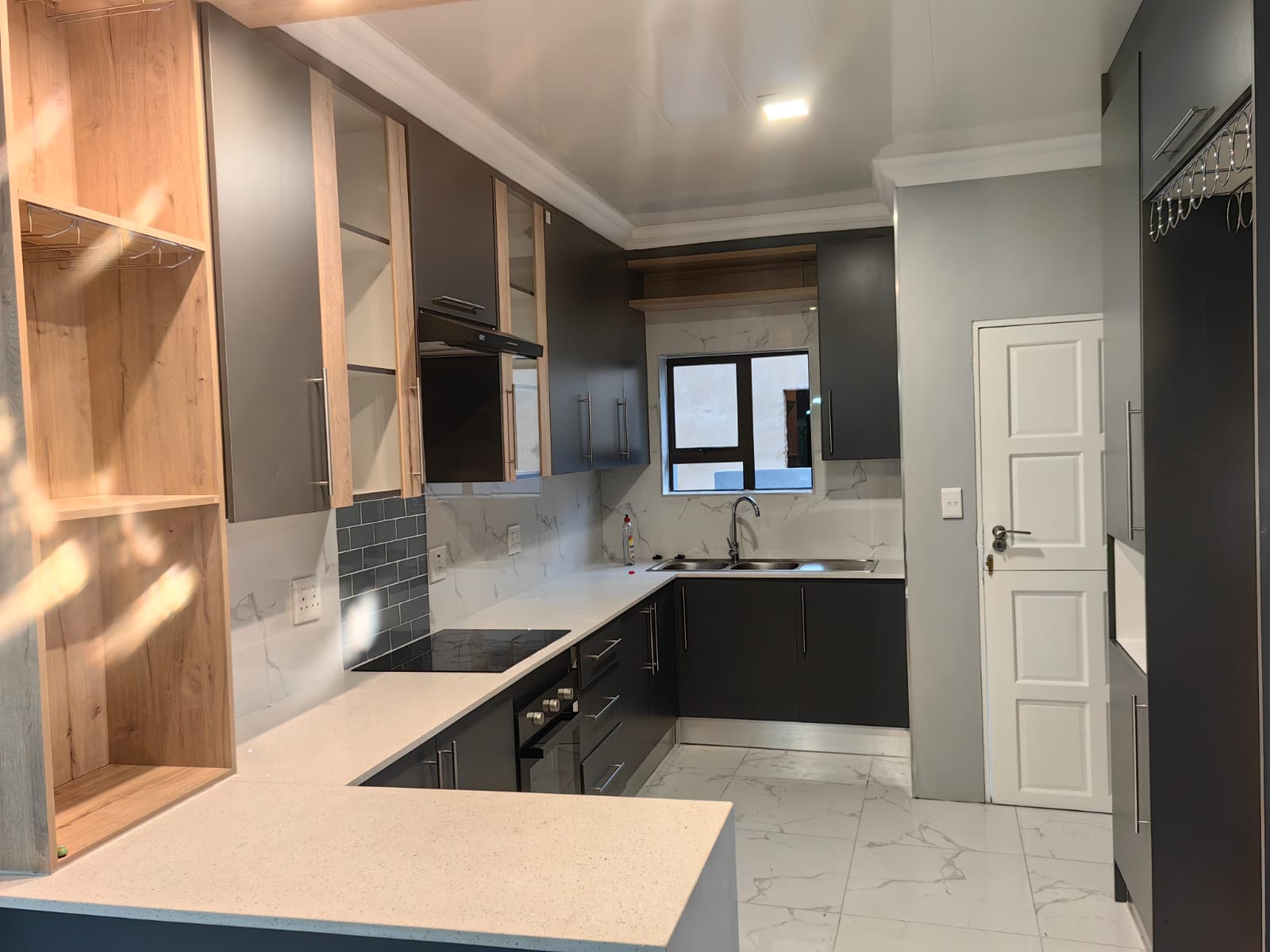 Lovely modern big single storey family house (210 sqm) in an exclusive security upmarket estate with levies of only R850 pm. Mandated Properties would like to offer you this excellent 3-bedroom buy in the small agricultural village Rayton, a mere 8 km from Cullinan. Easy access to the N4 Witbank Highway and only 20 minutes’ drive from Pretoria! Step inside and immediately notice the open-plan design, adorned with exposed beams that lend a rustic charm. The heart of the home is the spacious kitchen and more with frameless glass doors which seamlessly flow into a vast patio, ideal for entertaining guests or enjoying a relaxing meal outdoors. This family house offers you 3 bedrooms, (all bedrooms are spacious with built-in cupboards), the main bedroom has an en-suite bathroom, 2 full bathrooms, each featuring a bathtub, shower and a toilet. The living area consists of a very comfortably sized open plan dining room and an expansive lounge with a cozy fireplace for family gatherings and entertaining guests. There are 2 garages with electric doors for your comfort which lead directly into the house