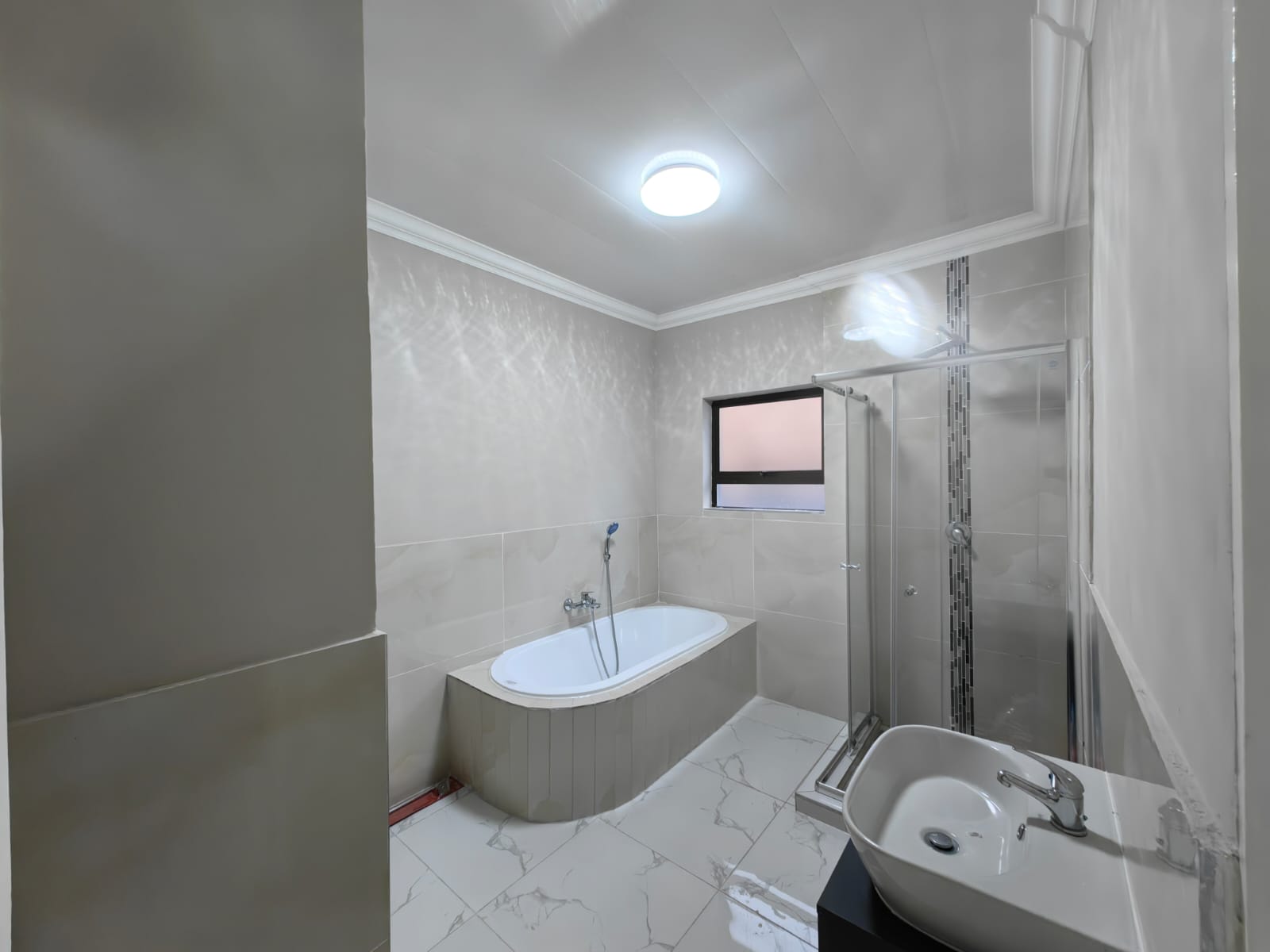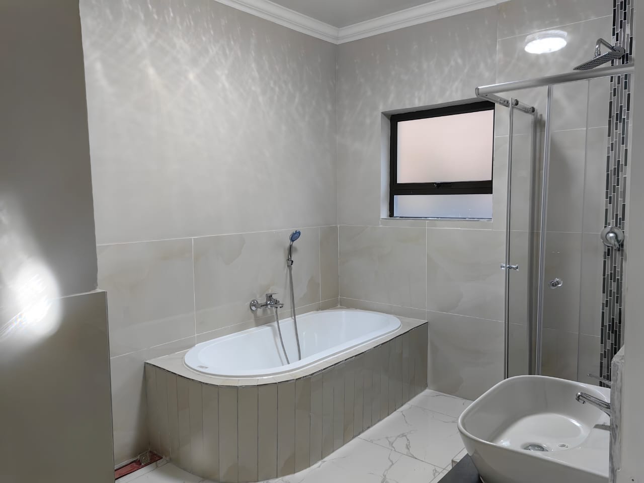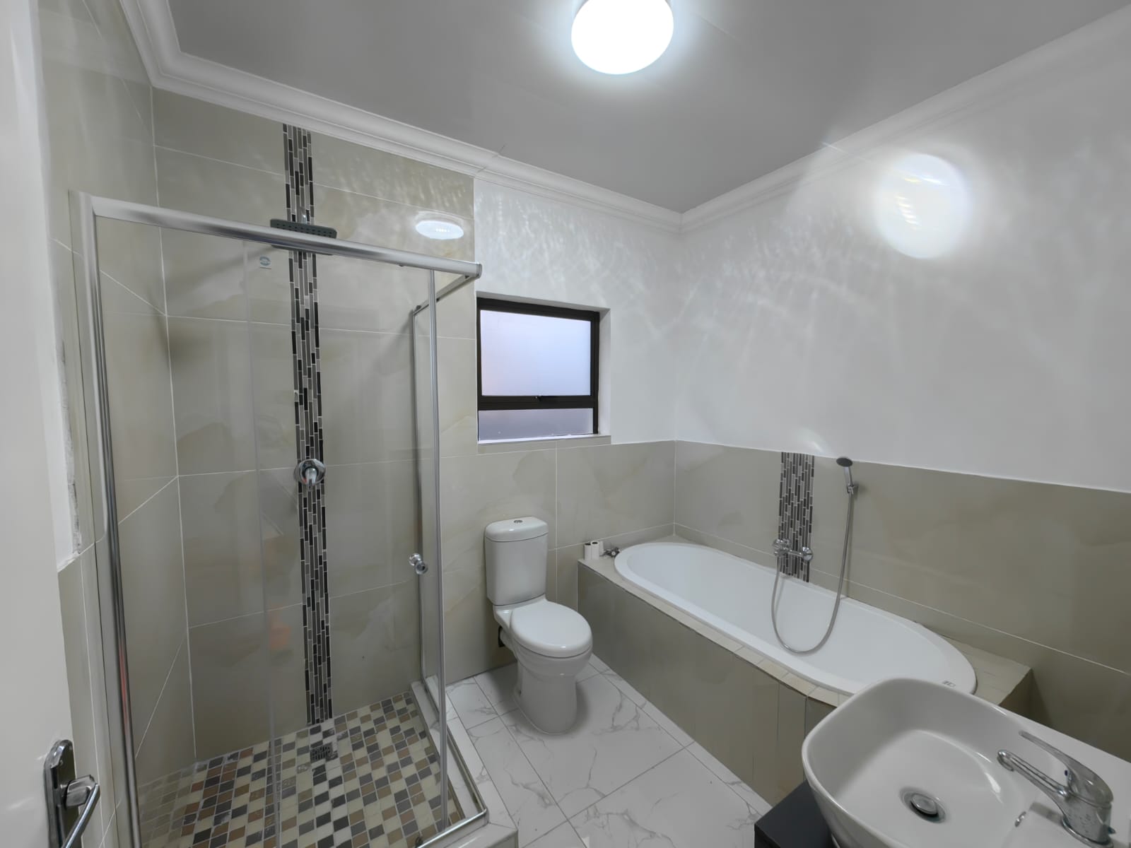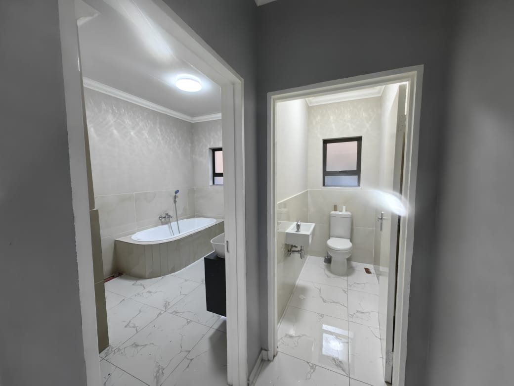 Lovely modern big single storey family house (210 sqm) in an exclusive security upmarket estate with levies of only R850 pm. Mandated Properties would like to offer you this excellent 3-bedroom buy in the small agricultural village Rayton, a mere 8 km from Cullinan. Easy access to the N4 Witbank Highway and only 20 minutes’ drive from Pretoria! Step inside and immediately notice the open-plan design, adorned with exposed beams that lend a rustic charm. The heart of the home is the spacious kitchen and more with frameless glass doors which seamlessly flow into a vast patio, ideal for entertaining guests or enjoying a relaxing meal outdoors. This family house offers you 3 bedrooms, (all bedrooms are spacious with built-in cupboards), the main bedroom has an en-suite bathroom, 2 full bathrooms, each featuring a bathtub, shower and a toilet. The living area consists of a very comfortably sized open plan dining room and an expansive lounge with a cozy fireplace for family gatherings and entertaining guests. There are 2 garages with electric doors for your comfort which lead directly into the house