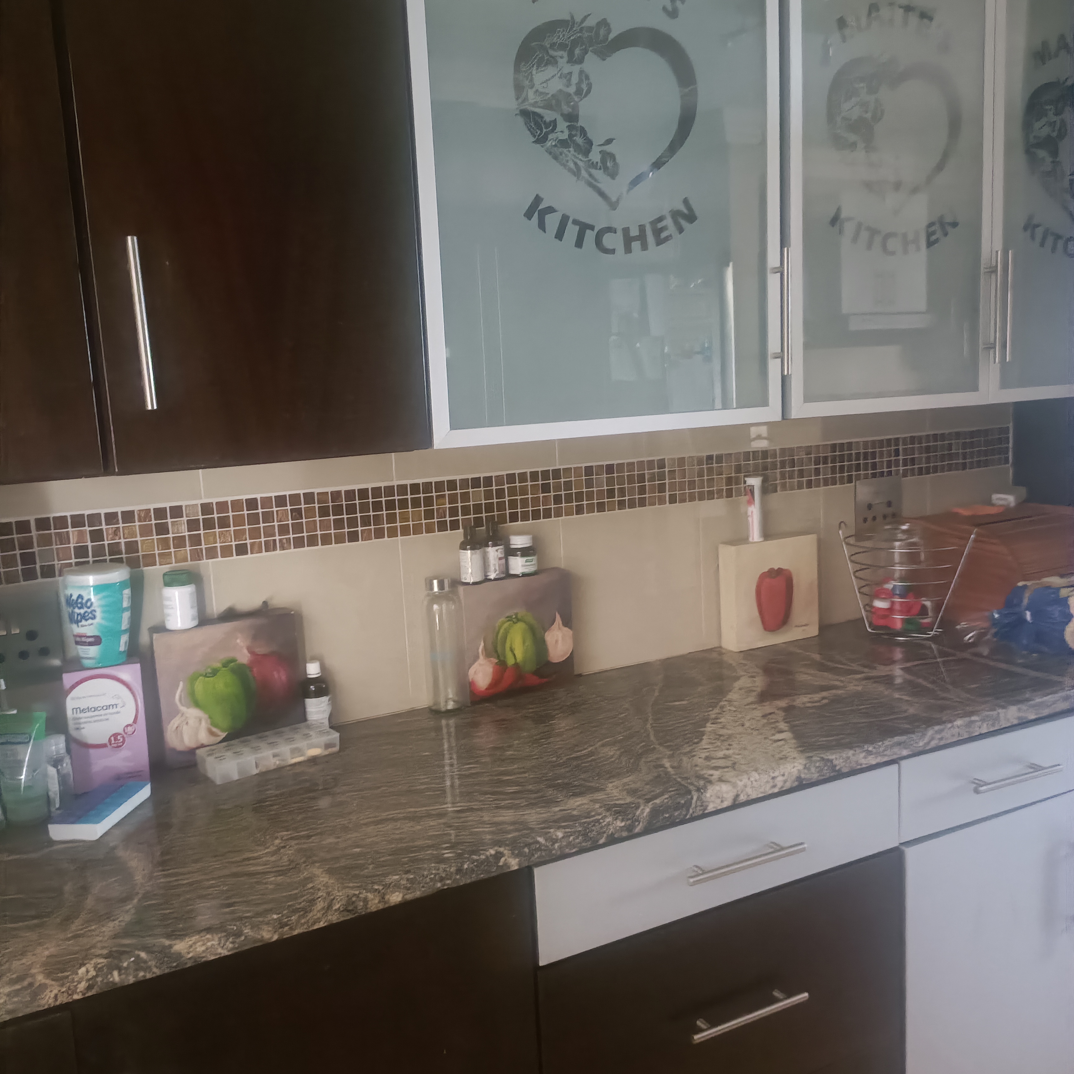 5. Big modern kitchen with its granite tops and lots of cupboards includes a