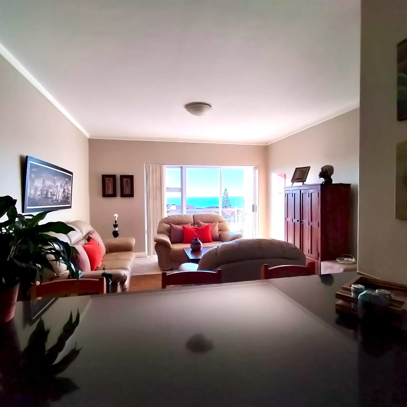 The open plan kitchen offers ample cupboard space and flows seamlessly into the lounge area, leading out to a private balcony with a built-in braai - ideal for entertaining while enjoying the coastal scenery.