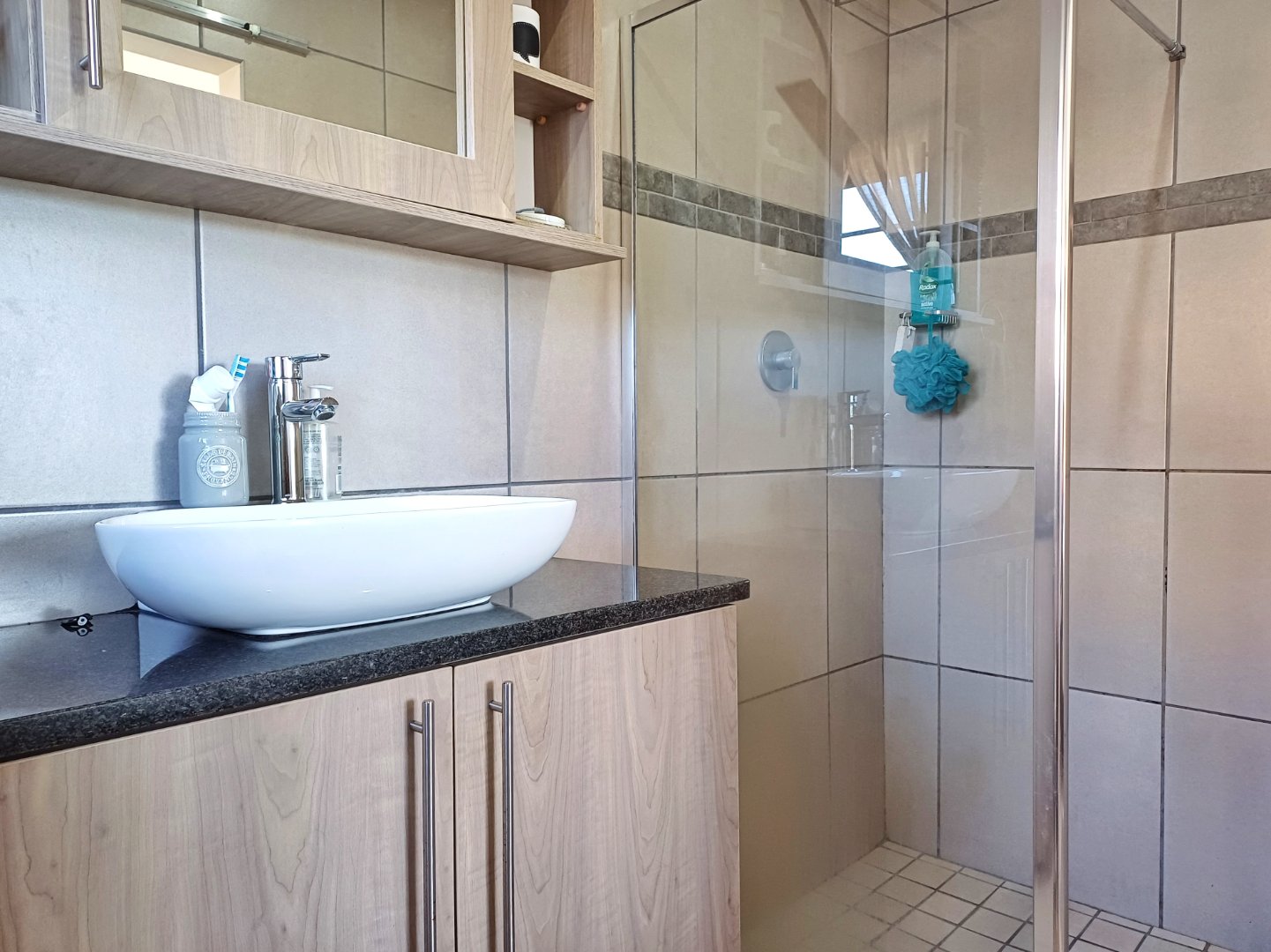 The open-plan living area is the heart of the home, seamlessly connecting to a well-appointed kitchen and dining space. Sliding doors lead to a spacious deck with built-in braai facilities—an entertainer’s dream, where you can host family and friends or simply unwind while taking in the breathtaking sunsets that Reebok is so well known for.