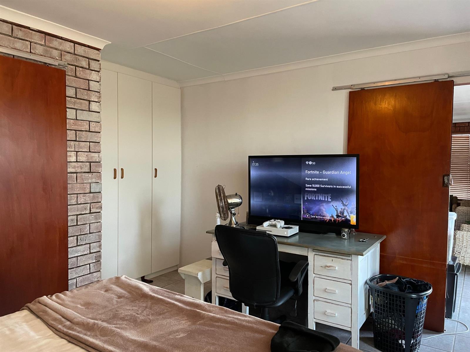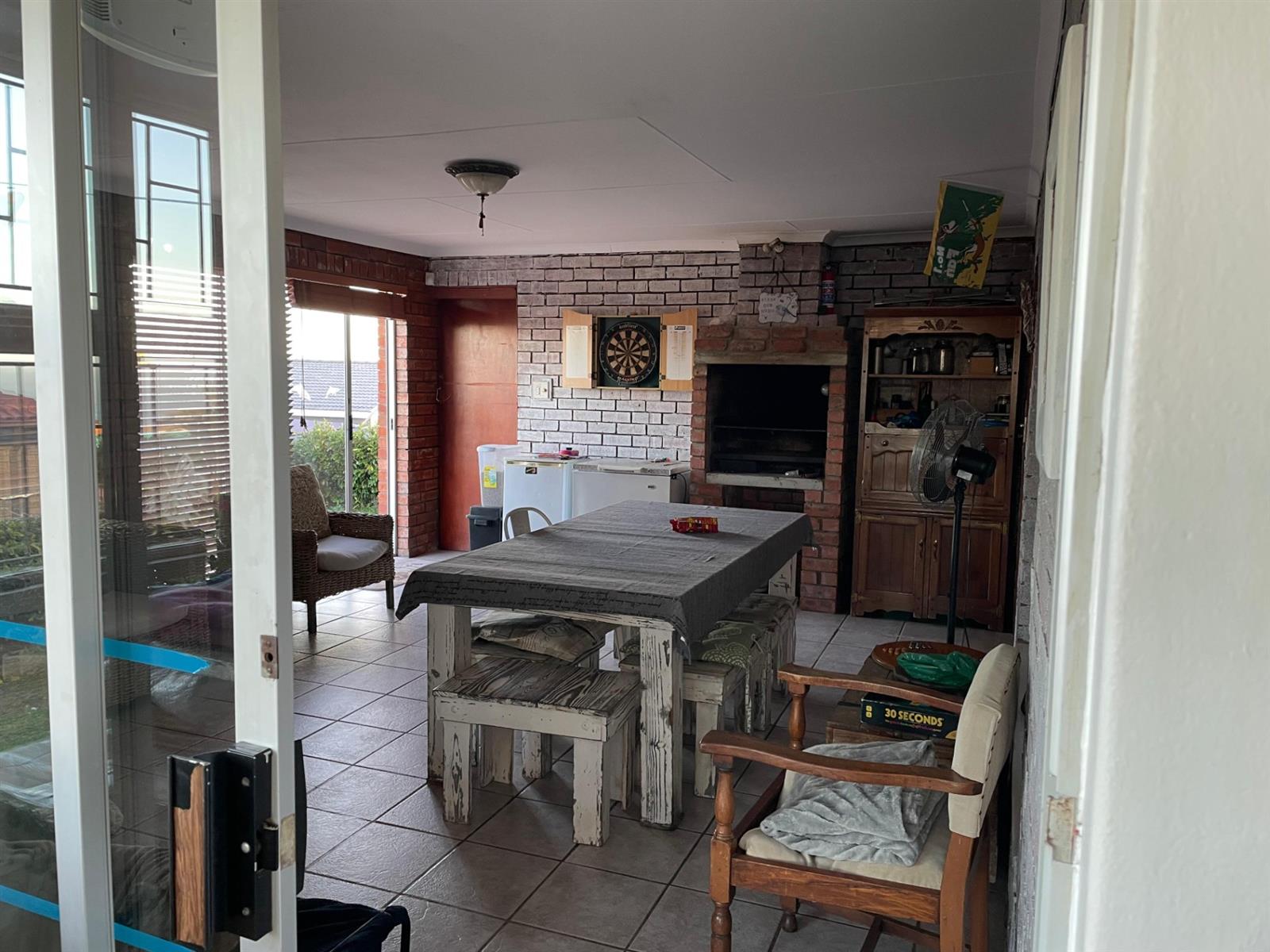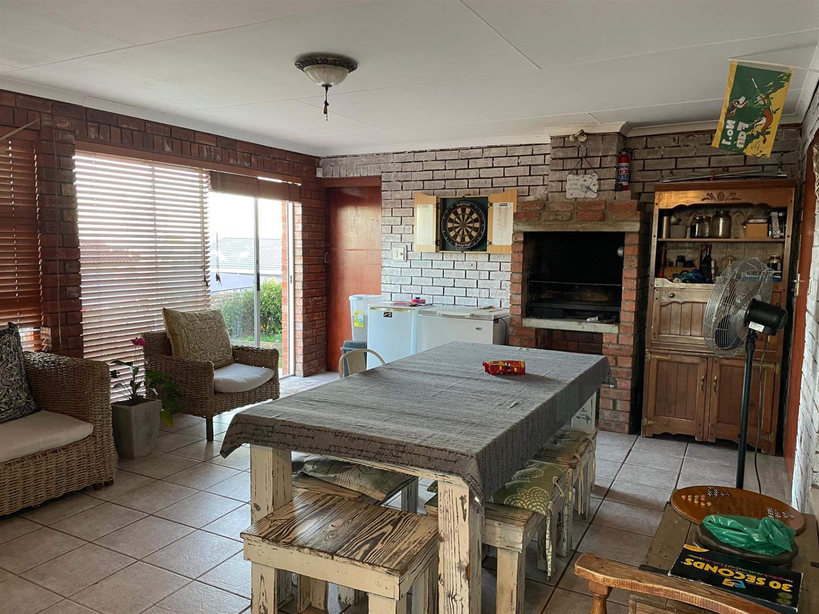 Main bedroom, with veranda and en-suite has an ocean view. Build-in cupboards and neat tile flooring complete the ambiance of this bedroom. The second and third bedroom complete with tile-flooring and build-in cupboards shares a full bathroom .The kitchen flows into the dinning room which is an open plan towards the lounge with a slight view towards the ocean. From the lounge you walk into a spacious braai room with a built in braai and cupboards. This leads to a spacious backyard. Adjacent to this room is a full extra family room with en-suite. However the same entrance, and connected to the main house, the 4th bedroom has one bedroom and a en-suite, shower, basin and toilet, and it has its own privacy very suitable for family or airbnd to rent.