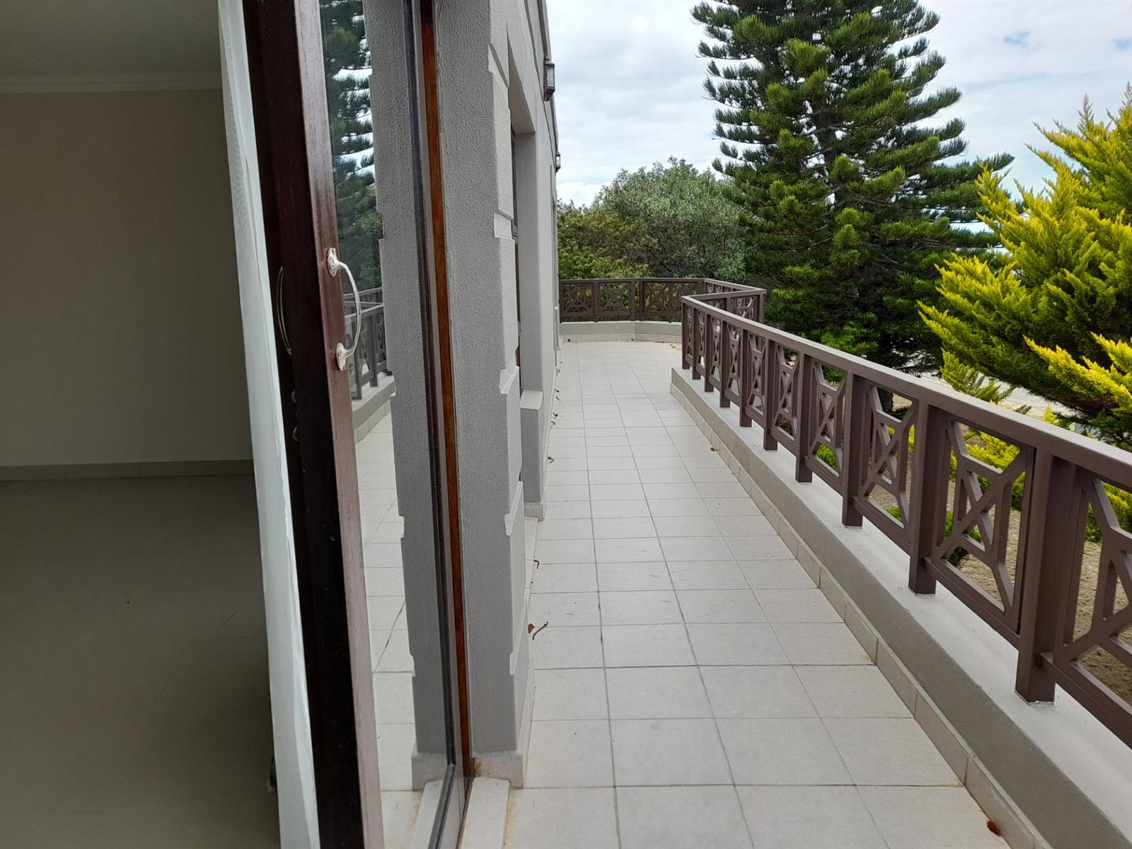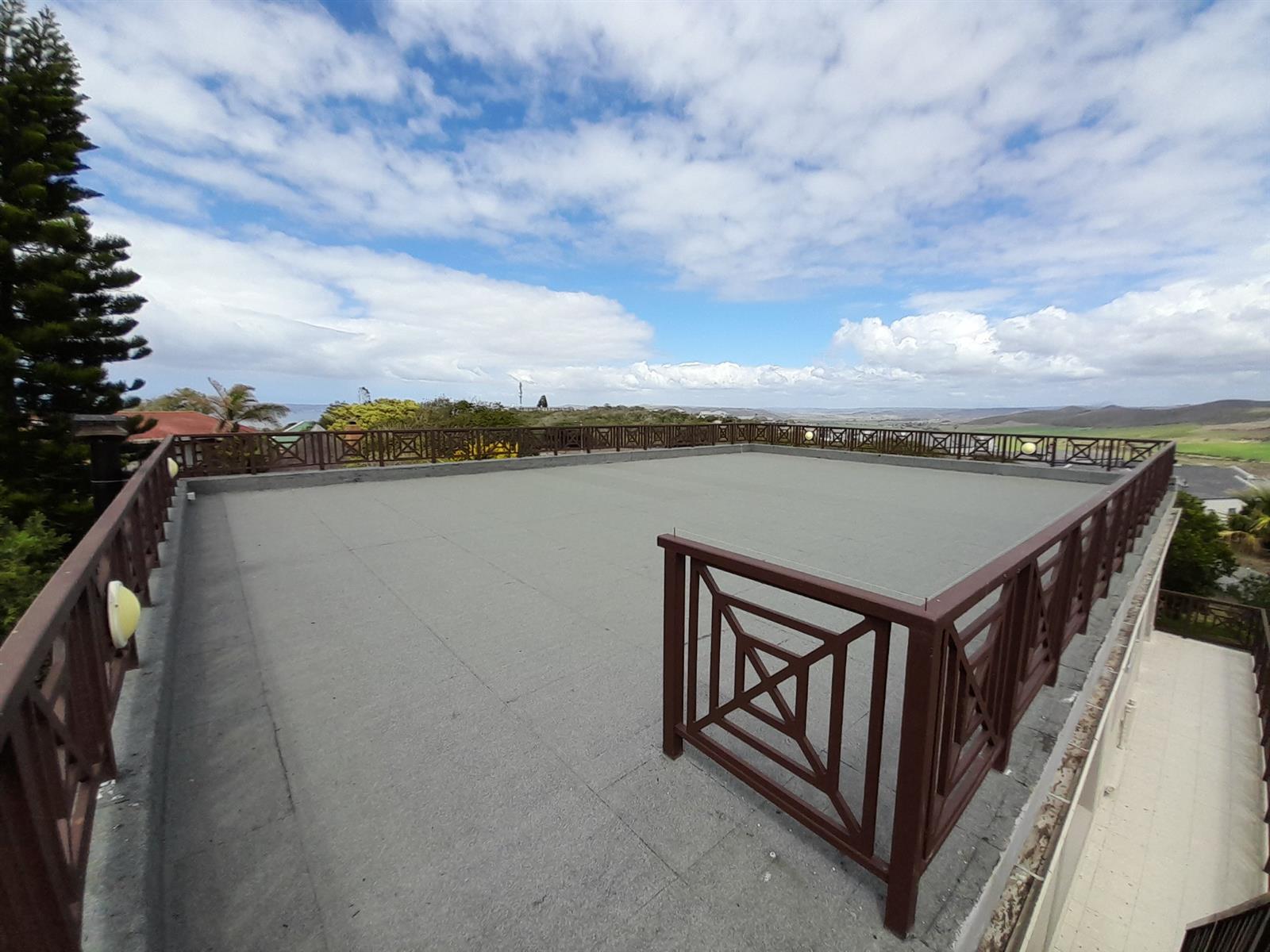 The rear wing of the upper level accommodates three spacious bedrooms, all with sliding doors leading onto the rear balcony and sharing a well-appointed bathroom. From here, a wooden staircase leads to the home’s standout feature - a flat, railed rooftop terrace spanning the full footprint of the house. This exceptional space offers uninterrupted 360-degree views across farmland, the surrounding neighbourhood and out toward the ocean.