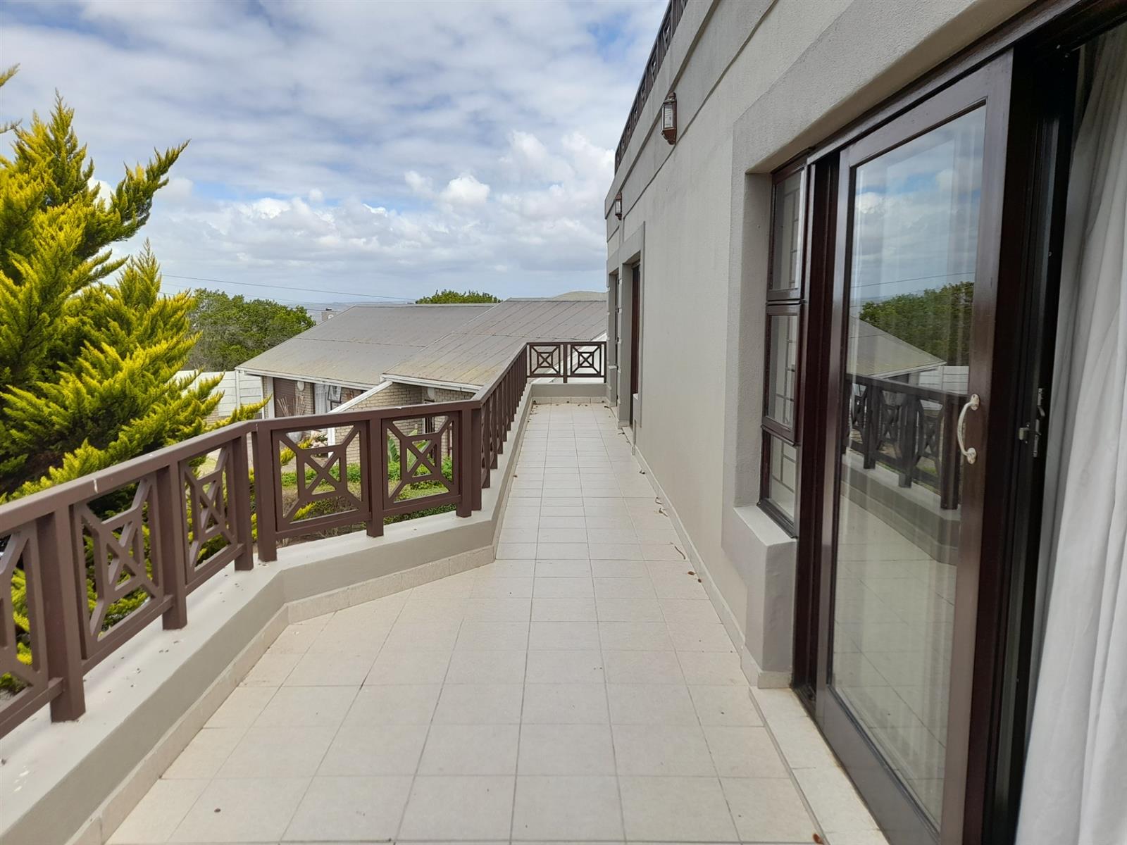 Upstairs, the sense of space continues. The upper living room, complete with a fireplace, opens through sliding doors onto the front balcony - an inviting setting for relaxed evenings and elevated views across the surrounding landscape. The generous main bedroom suite occupies the front wing, featuring an en-suite bathroom and double sliding doors opening onto the same balcony.