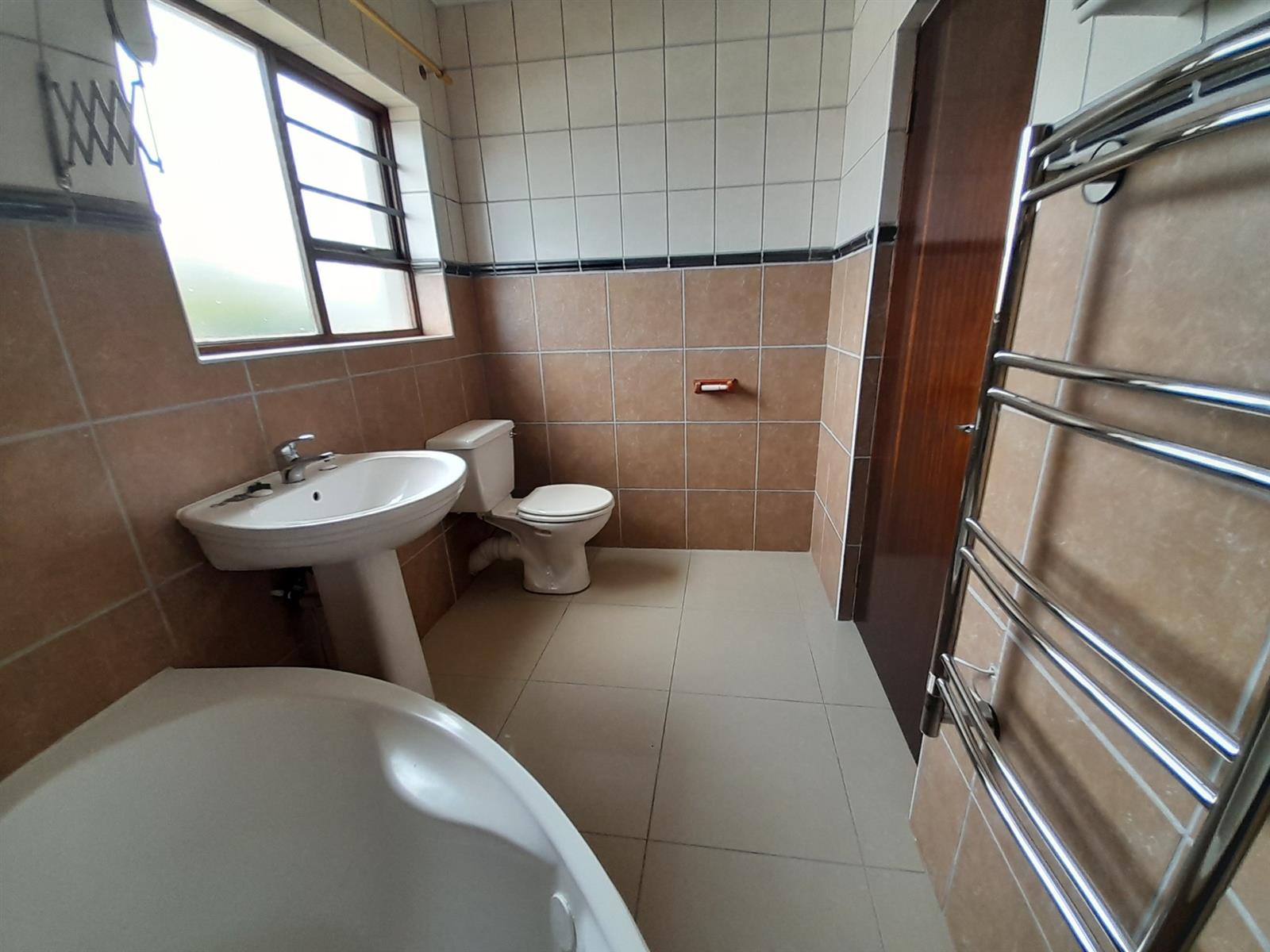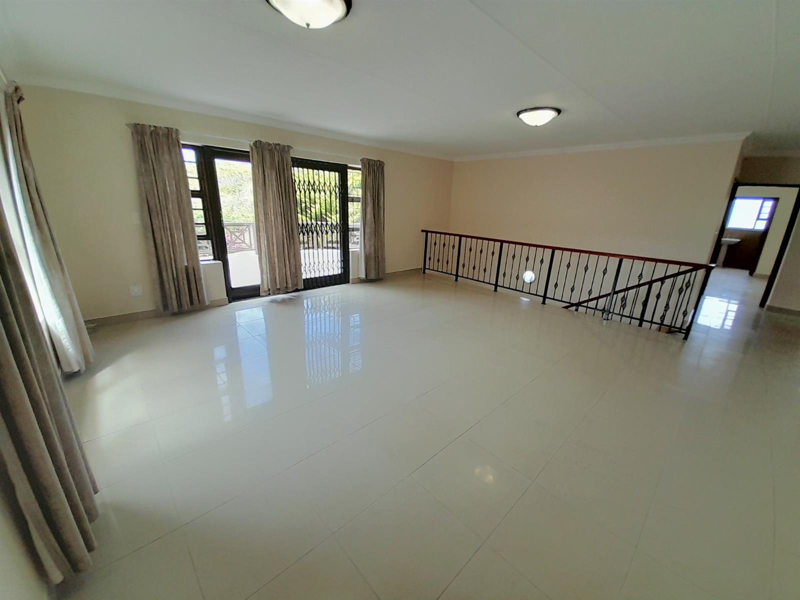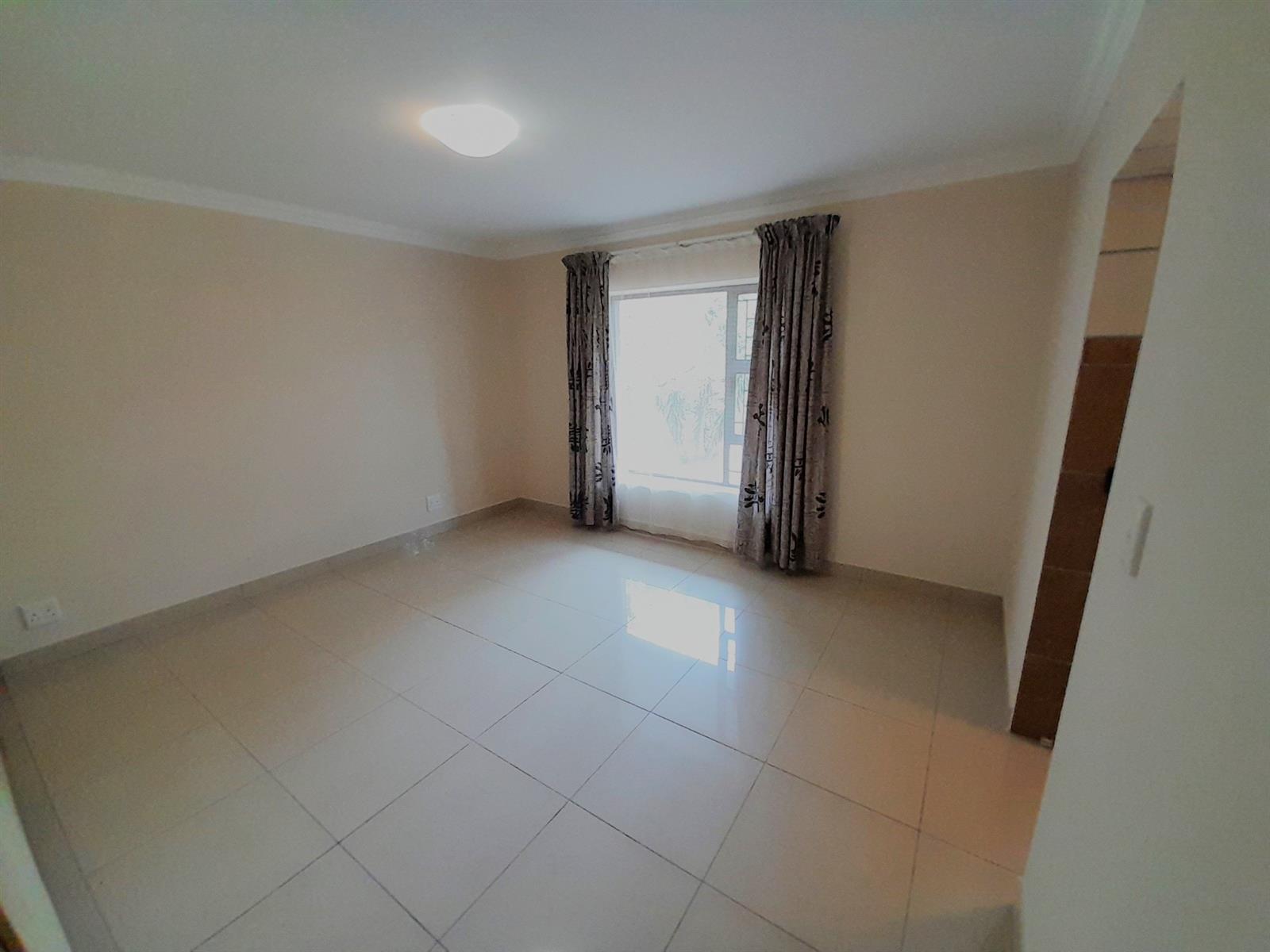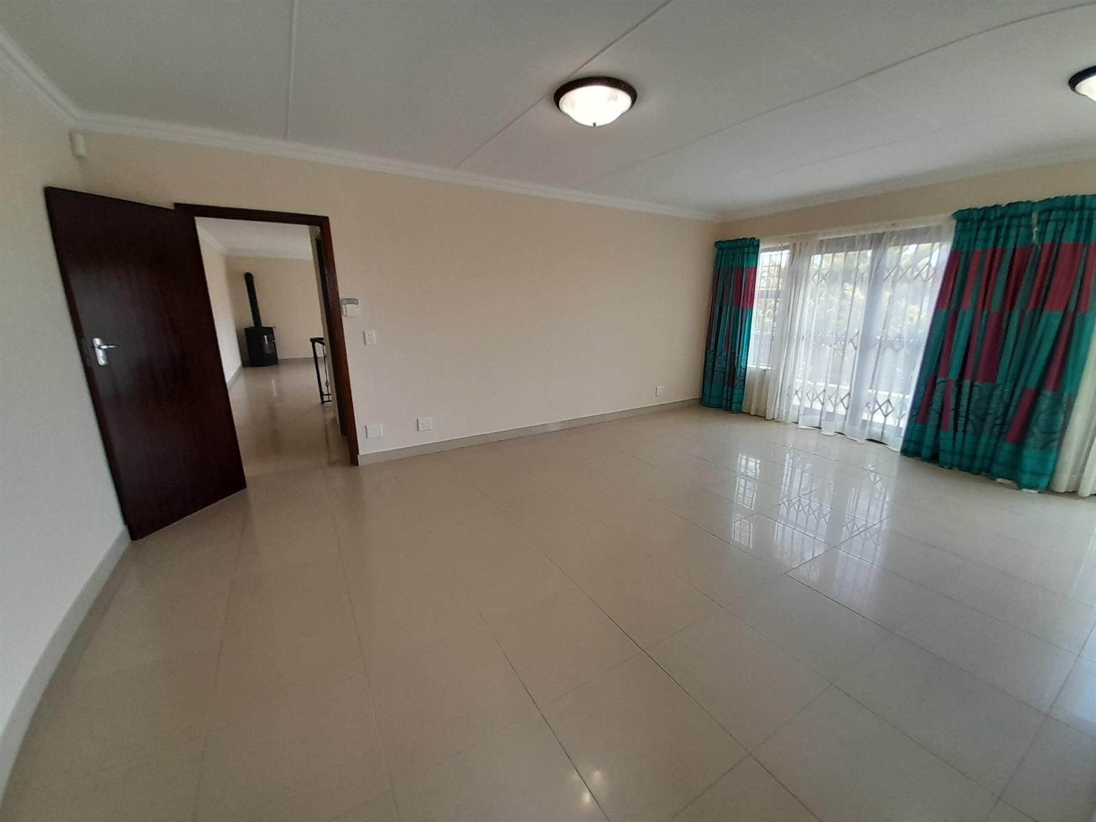 The ground floor welcomes you into a spacious open-plan living and dining area that flows seamlessly into a stylish, practical kitchen. The kitchen is well equipped with ample cabinetry, a corner pantry, gas hob with extractor, under-counter oven, space for an under-counter washing machine and a large central island providing additional storage and preparation space. From the kitchen, a back door leads into a large, light-filled braai room with windows allowing natural light and a sliding door opening directly onto the rear garden, ideal for relaxed, all-season entertaining.