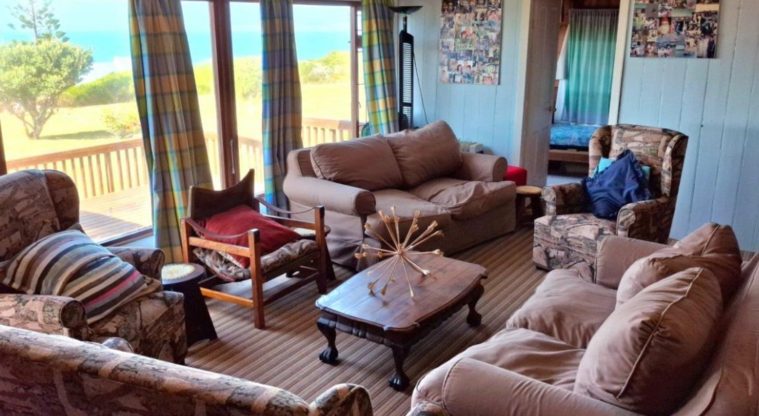 The main home features three bedrooms, one bathroom, a functional kitchen, and spacious open-plan living and dining areas that flow seamlessly onto a large patio — the perfect place to relax and enjoy breathtaking ocean views.