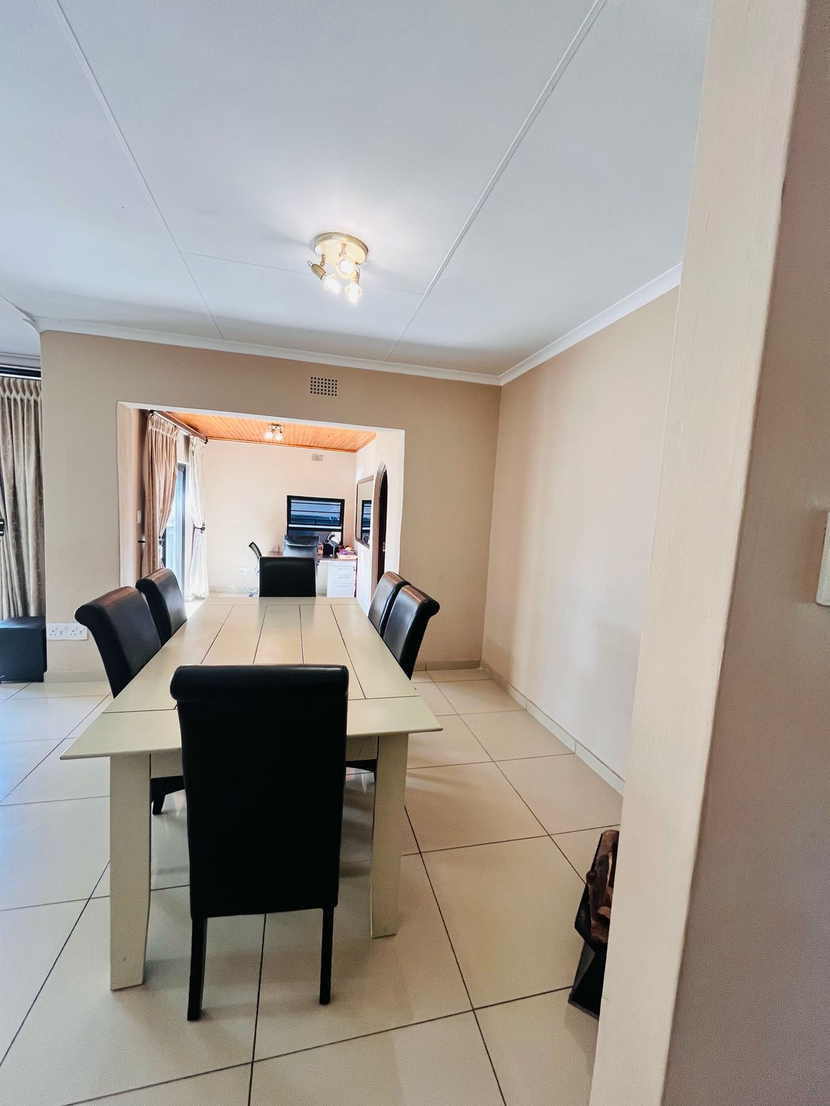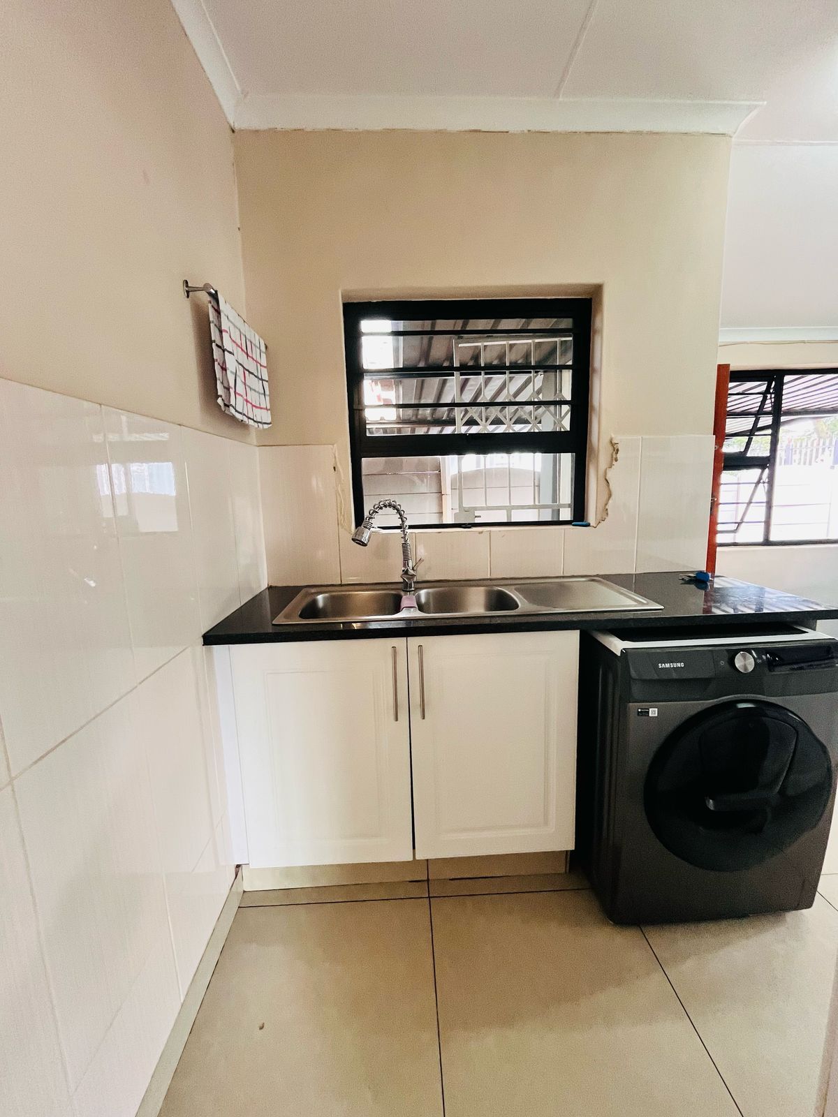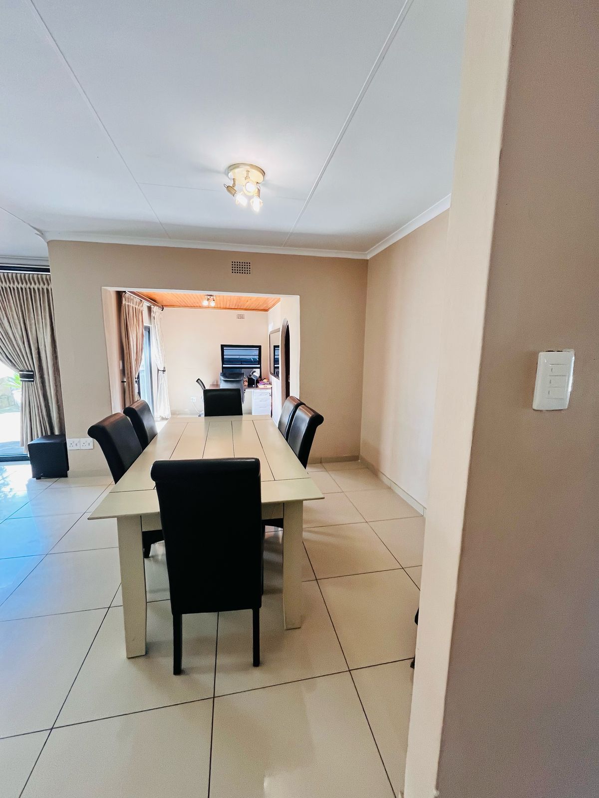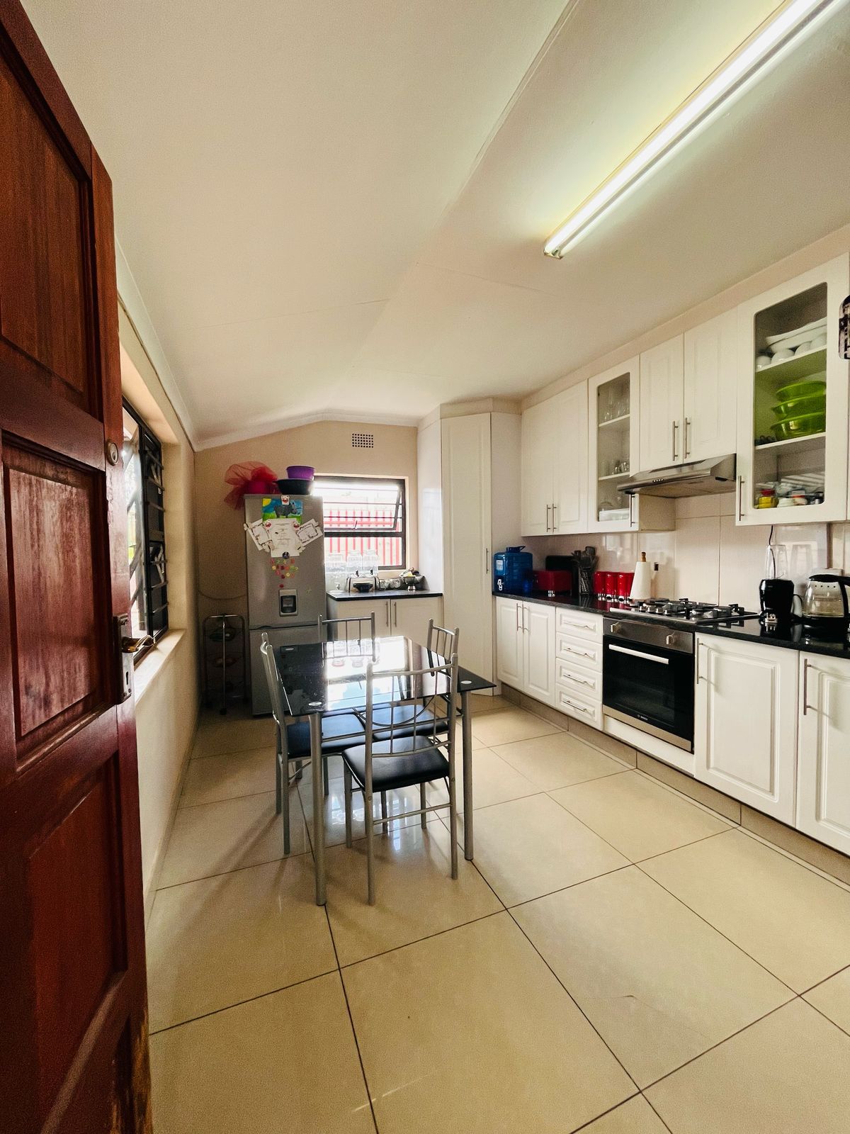 The open-plan lounge and dining area create a bright and inviting space for family gatherings and entertaining guests. Large windows allow natural light to flood the space, creating a warm and welcoming atmosphere. The contemporary kitchen, with ample storage and modern finishes, is perfect for preparing meals for family and friends.