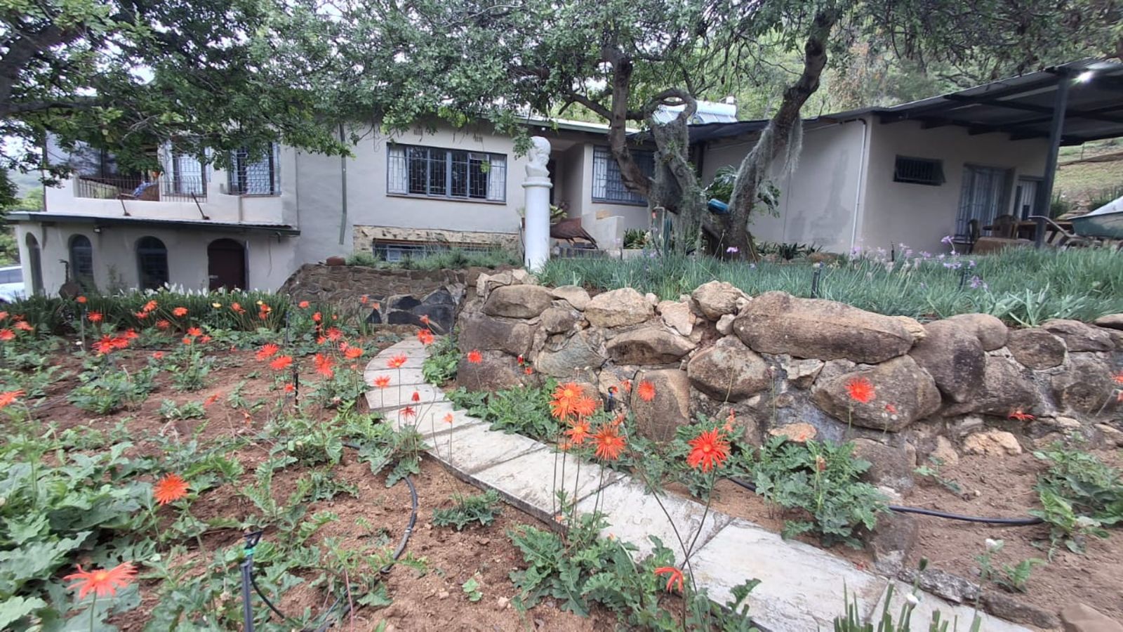 The main home is warm and inviting, designed for comfortable family living. It features three spacious bedrooms, two and a half bathrooms, and a large farm-style kitchen complete with a scullery and pantry. Two generous living areas flow onto a wide balcony where you can take in the sweeping valley views. Beneath the home, three garages and ample storage space add convenience, with stairs leading directly up to the living areas. There’s also a one-bedroom flat with its own living area and bathroom, perfect for guests or extended family. The home is equipped with a solar power system that’s currently on a rent-to-own agreement, offering both energy efficiency and long-term value. A private borehole ensures a reliable water supply, adding to the property’s self-sufficiency and ease of living.