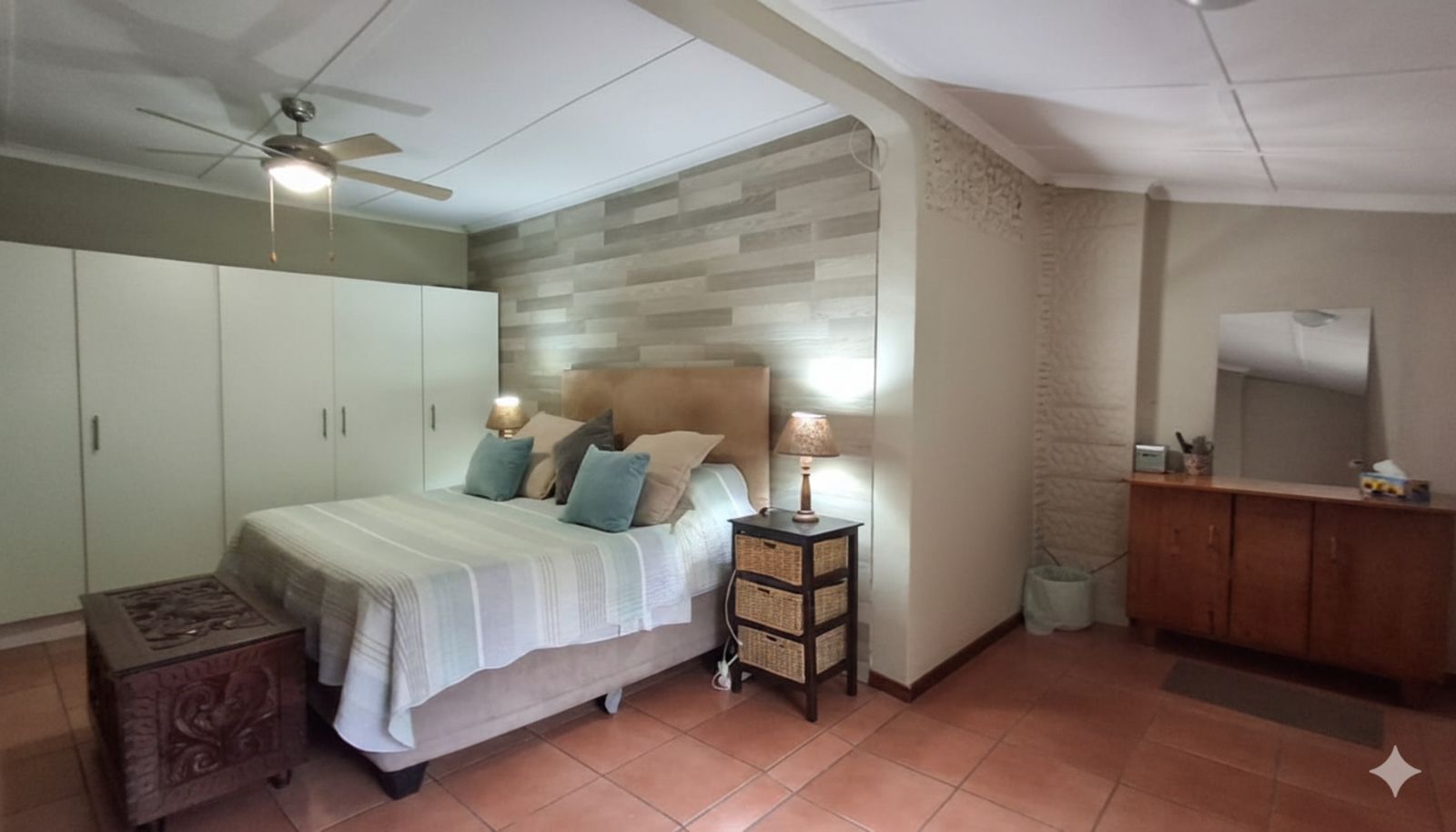 Outside, the property continues to impress. A beautifully maintained garden surrounds the home, complete with a sprinkler system that keeps it lush and green. The swimming pool has recently been resealed and will soon be filled, ready for those hot Lowveld days ahead. There’s a workshop for creativity or business, multiple storerooms for all your needs, and a servant’s room with its own shower, toilet and geyser.