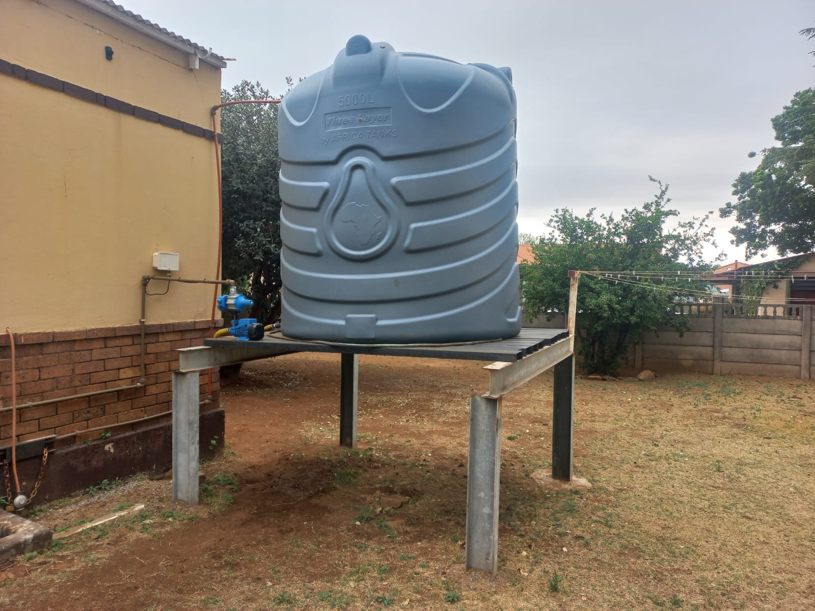The property includes a single garage to the right of the house, along with a long driveway offering additional off-street parking. A standout feature is the 5000-liter water tank, fully connected to the house and offering great water security and cost savings.