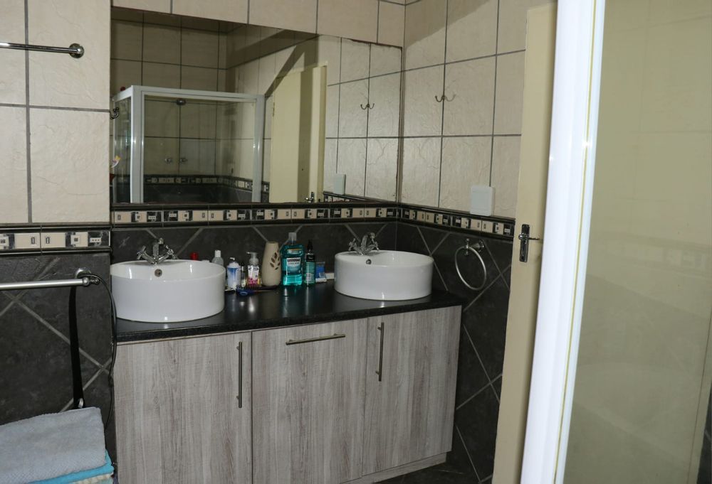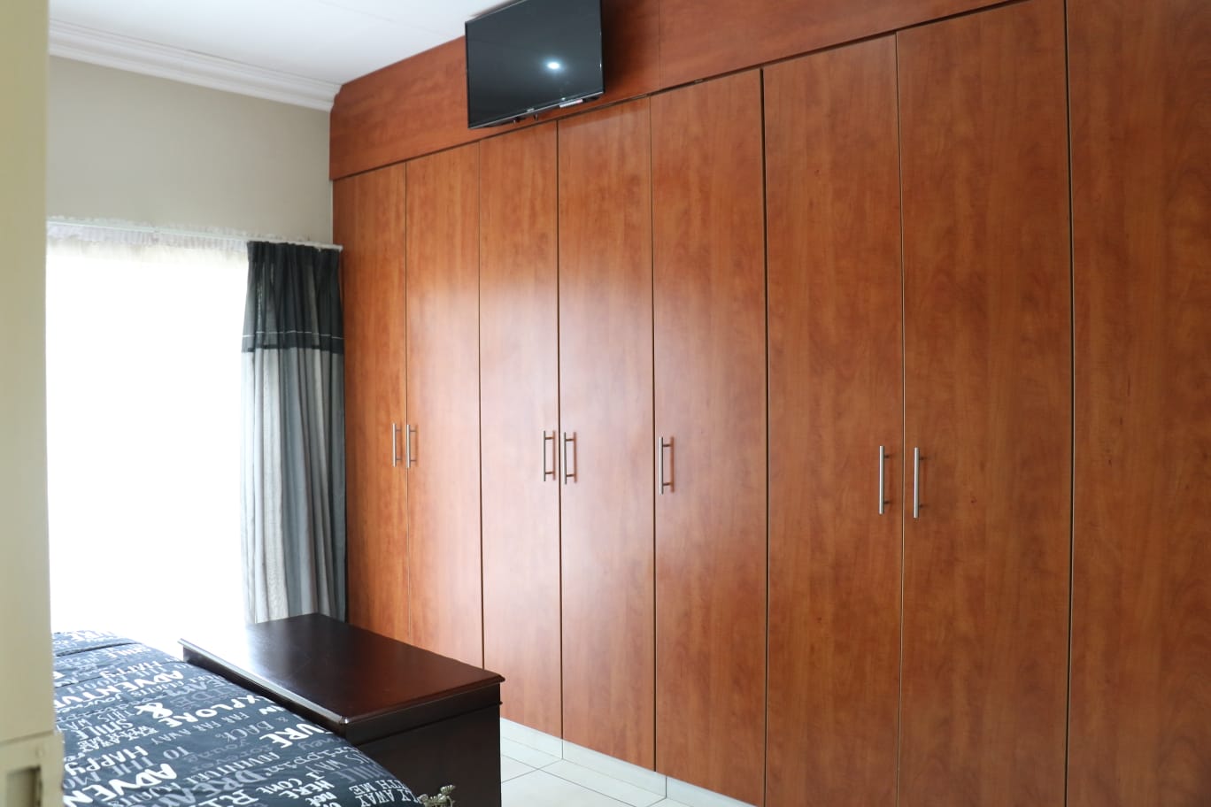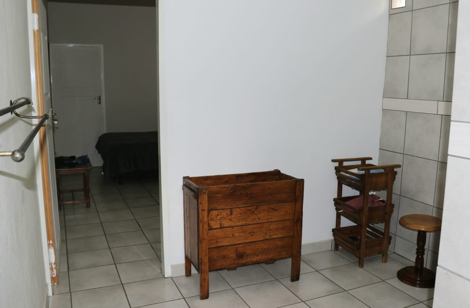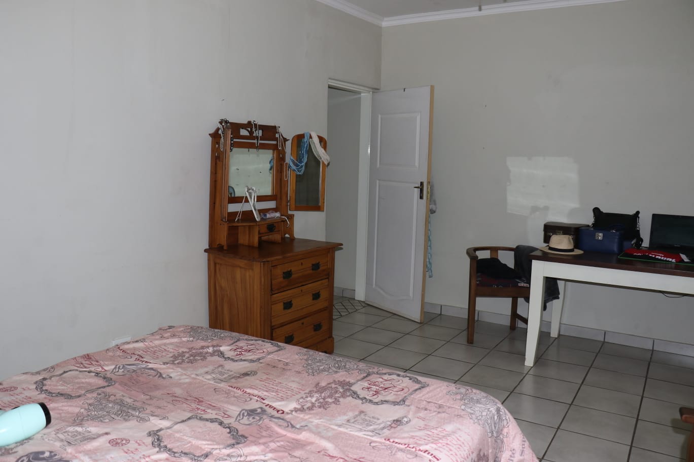 The home also boasts a dedicated dining room, perfect for family meals and entertaining. Flowing from the kitchen, the built-in braai area is ideally positioned just outside the kitchen door to the right and overlooks the neatly kept garden and swimming pool—creating a relaxed space for outdoor entertaining and family gatherings. The main house is completed by a double garage, with double undercover carports located directly in front, providing ample parking.