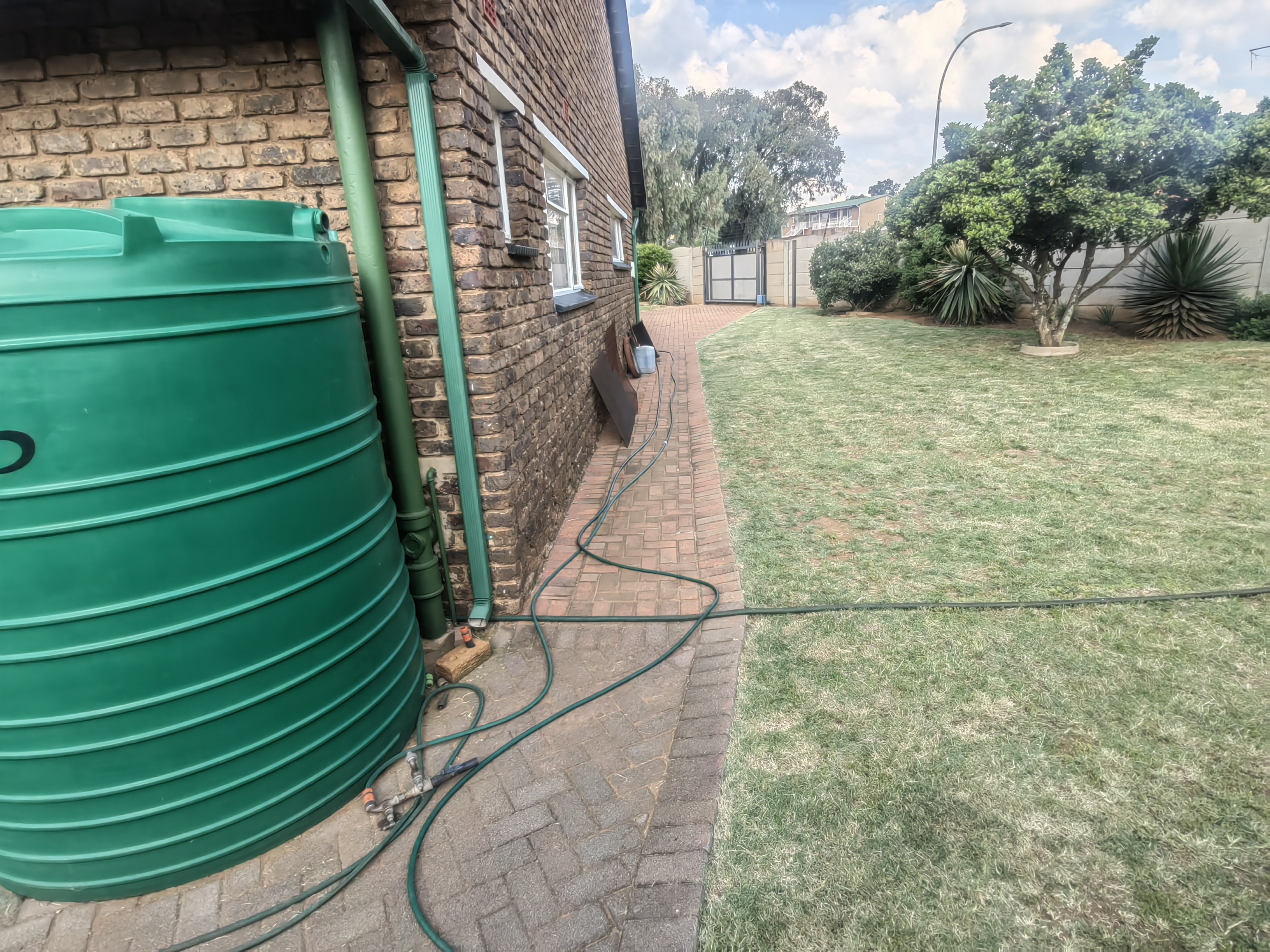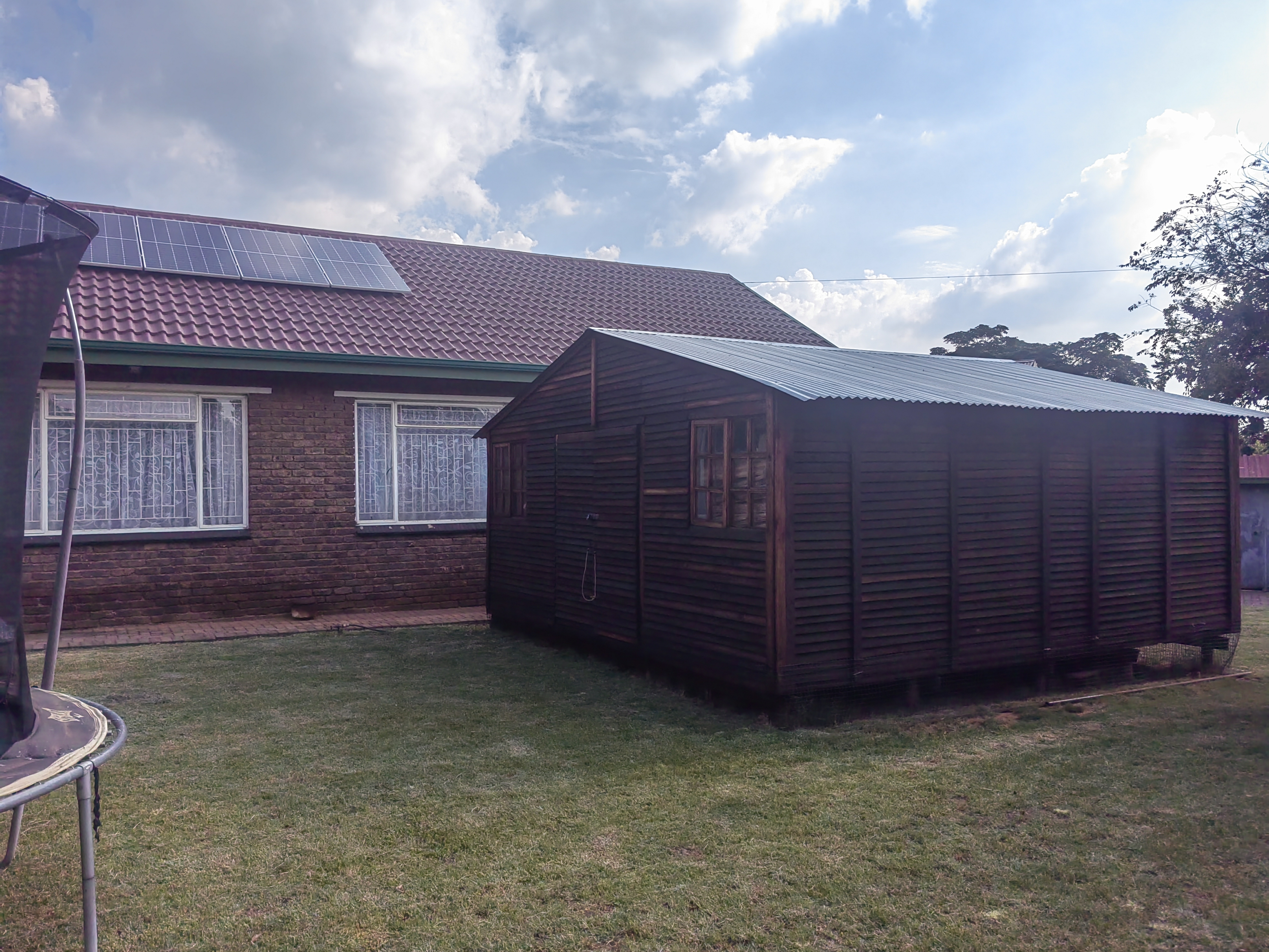 It has a 5.5KW solar system and a borehole with a pump.