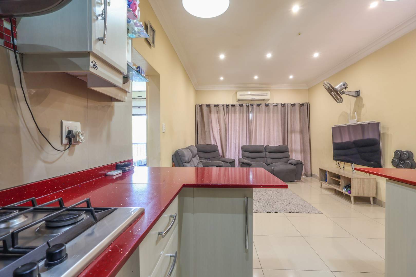 The fully fitted kitchen is sleek and modern, complete with a gas stove, quality finishes, and downlighters. The apartment is fully tiled throughout and fitted with aluminum windows for low maintenance living.