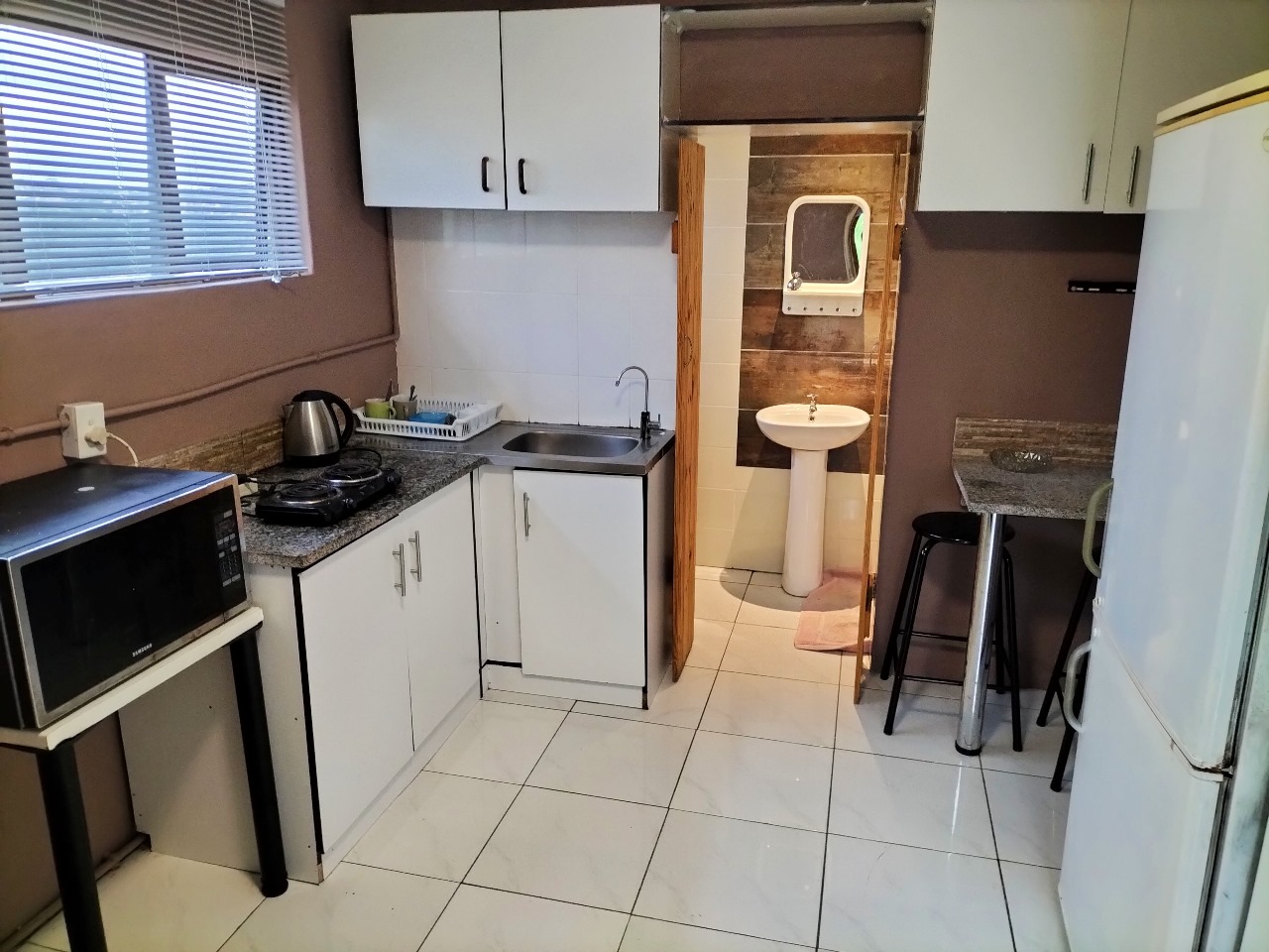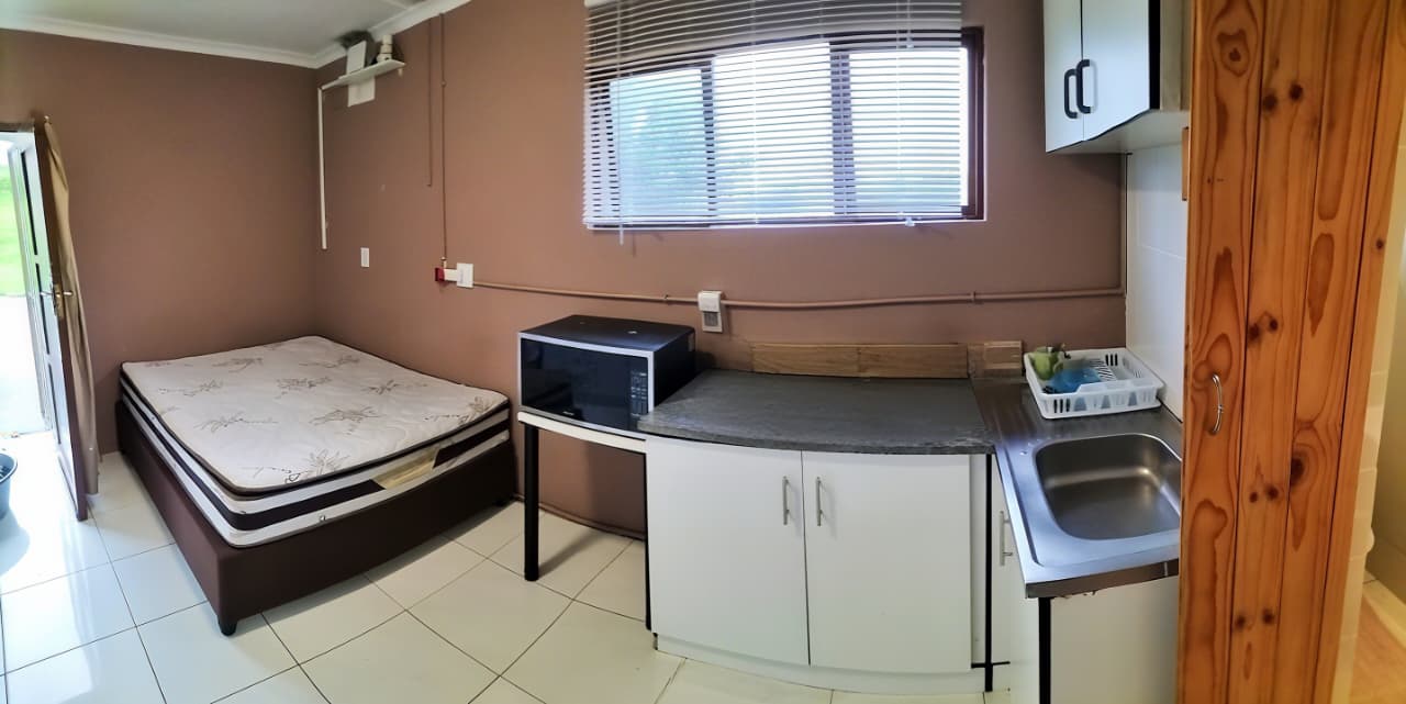The main house offers three cozy bedrooms - two double and one single - each equipped with built-in cupboards and dedicated study desks, creating functional and private retreats. The communal heart of the home features shared, air-conditioned spaces including a welcoming lounge, a dining area, a well-equipped kitchen, and modern bathrooms, fostering a sense of community among tenants. Every detail has been considered for ease of living, from the full suite of appliances (fridges, washing machine, microwave, lounge suite) to the newly installed, warrantied geyser. Efficiency is built-in with a prepaid electricity meter and smart wiring that ensures internal lights operate only when needed.