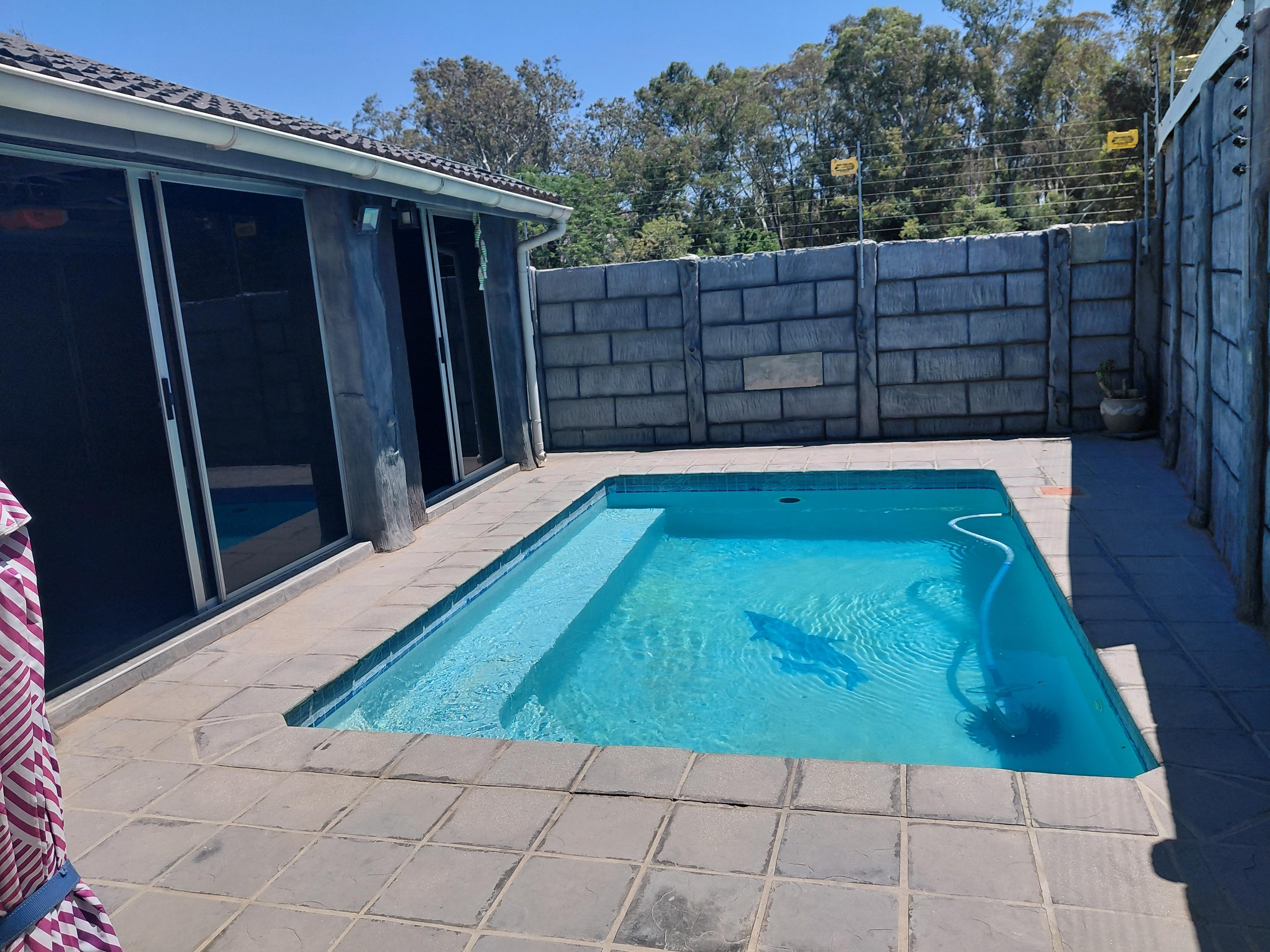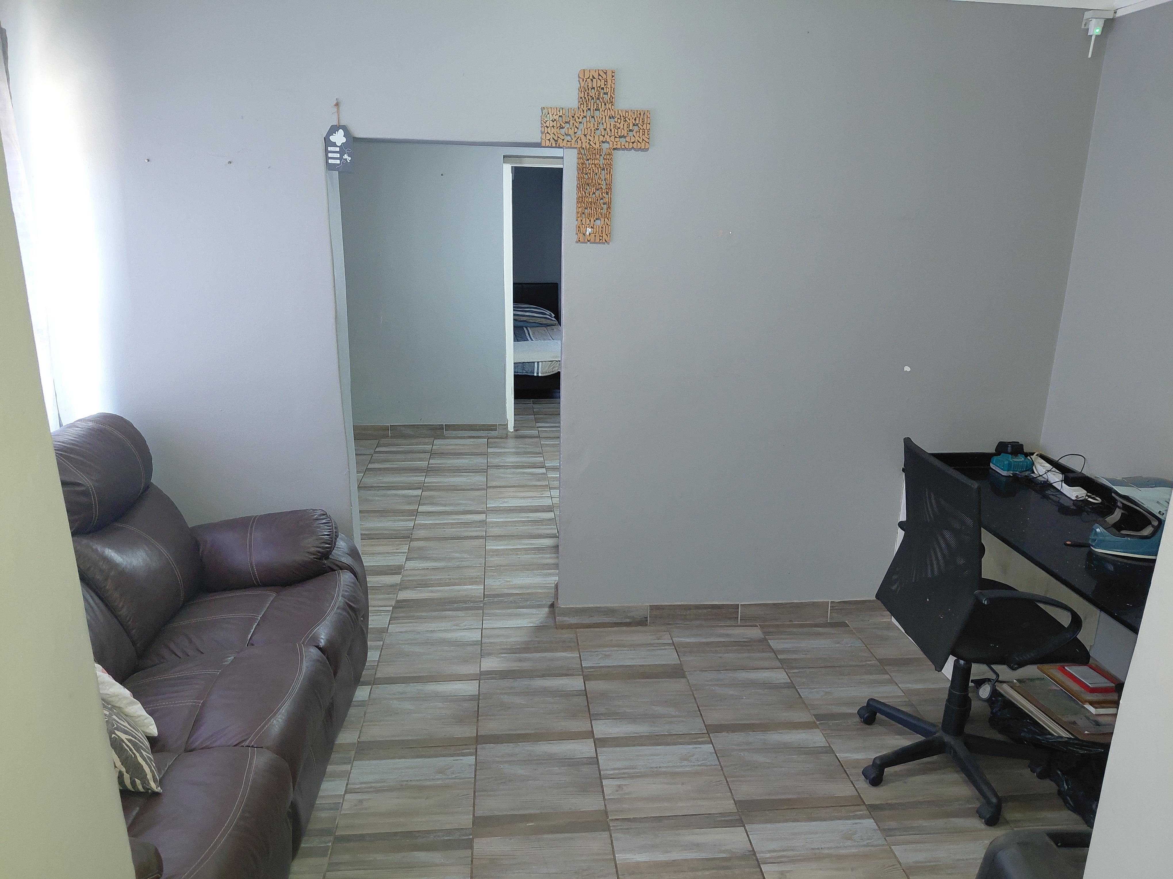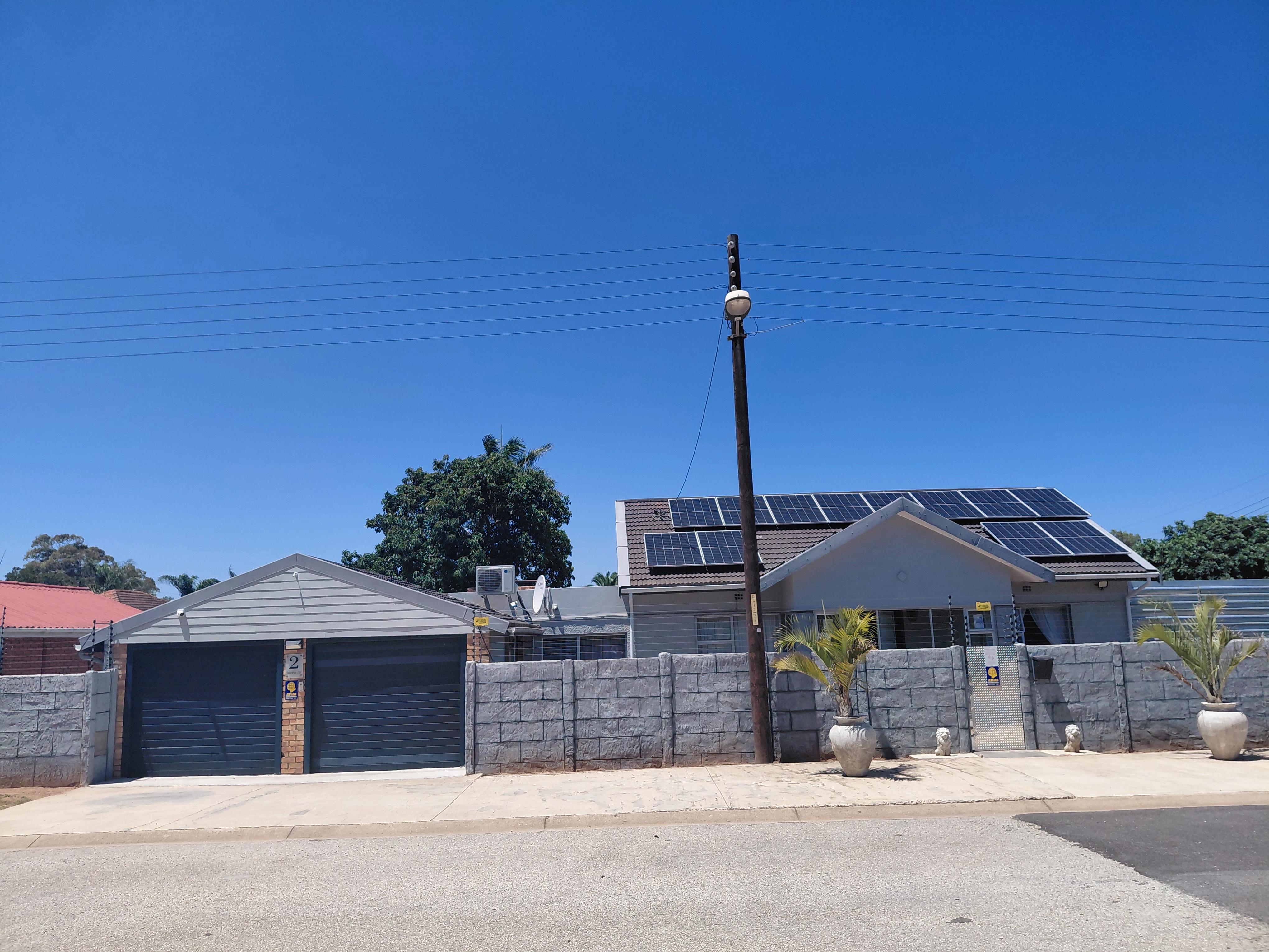 The home features a tiled roof, aluminium window frames, and is fully enclosed with an electric fence, alarm system, 6 cameras, and 3 beams. Energy efficiency is enhanced with 12 solar panels, prepaid electricity, and inverters (included). The property is so efficient that electricity is only purchased every four months.