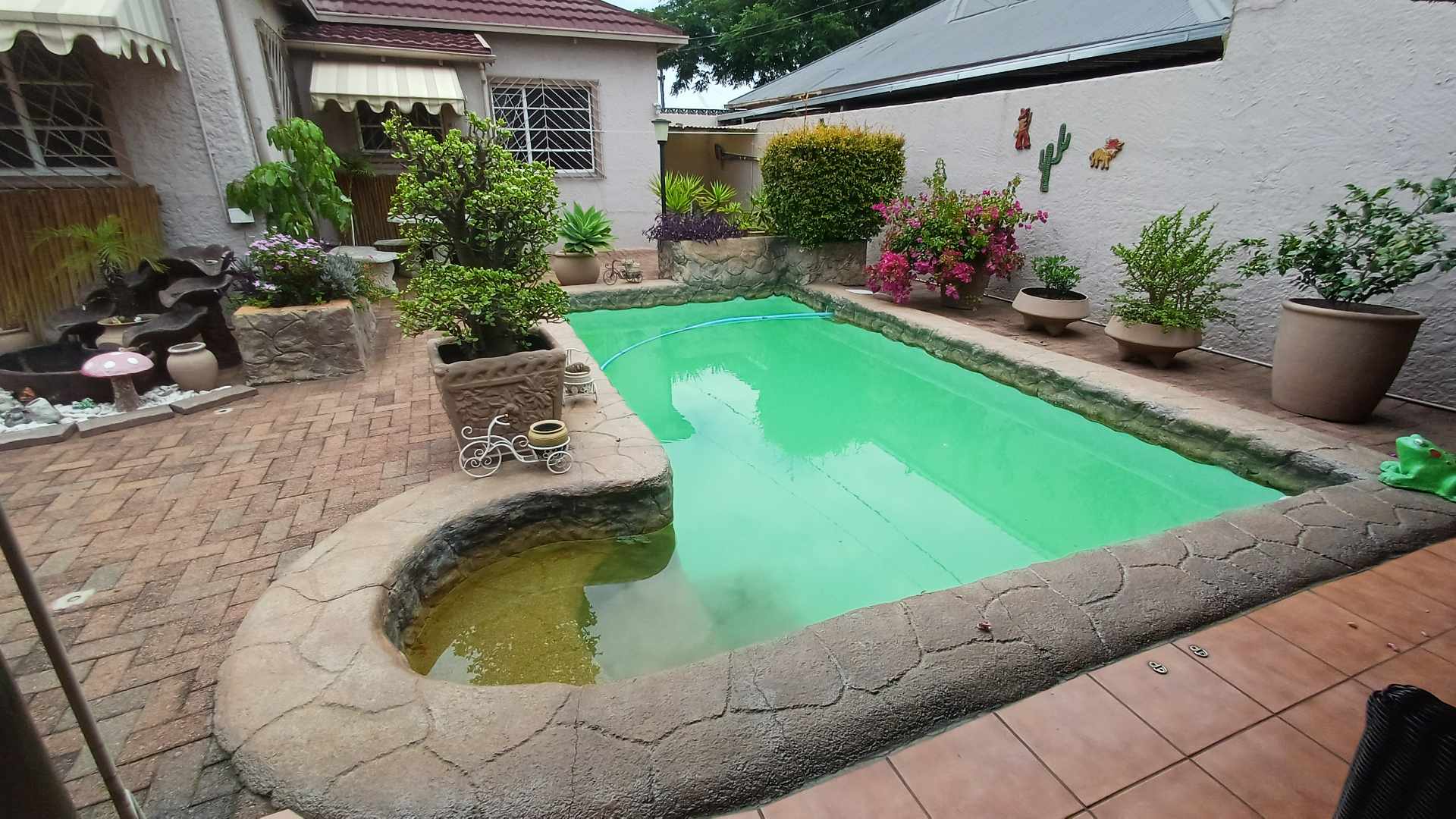 The entertainment area at the pool and has a built-in braai which rounds off the entertainment are. Should entertainment not be required, it can be converted into a two bedroom flat, with bathroom.