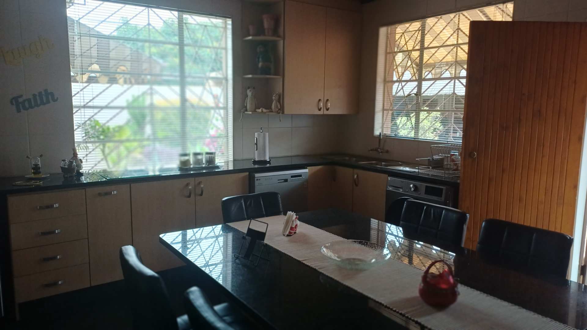 A Spacious entrance hall leads to a well appointed lounge / dining room, which leads to a magnificent kitchen which has granite tops and a six burner gas stove. The kitchen is plumbed for a washing machine and dishwasher with space for all your modern appliances.