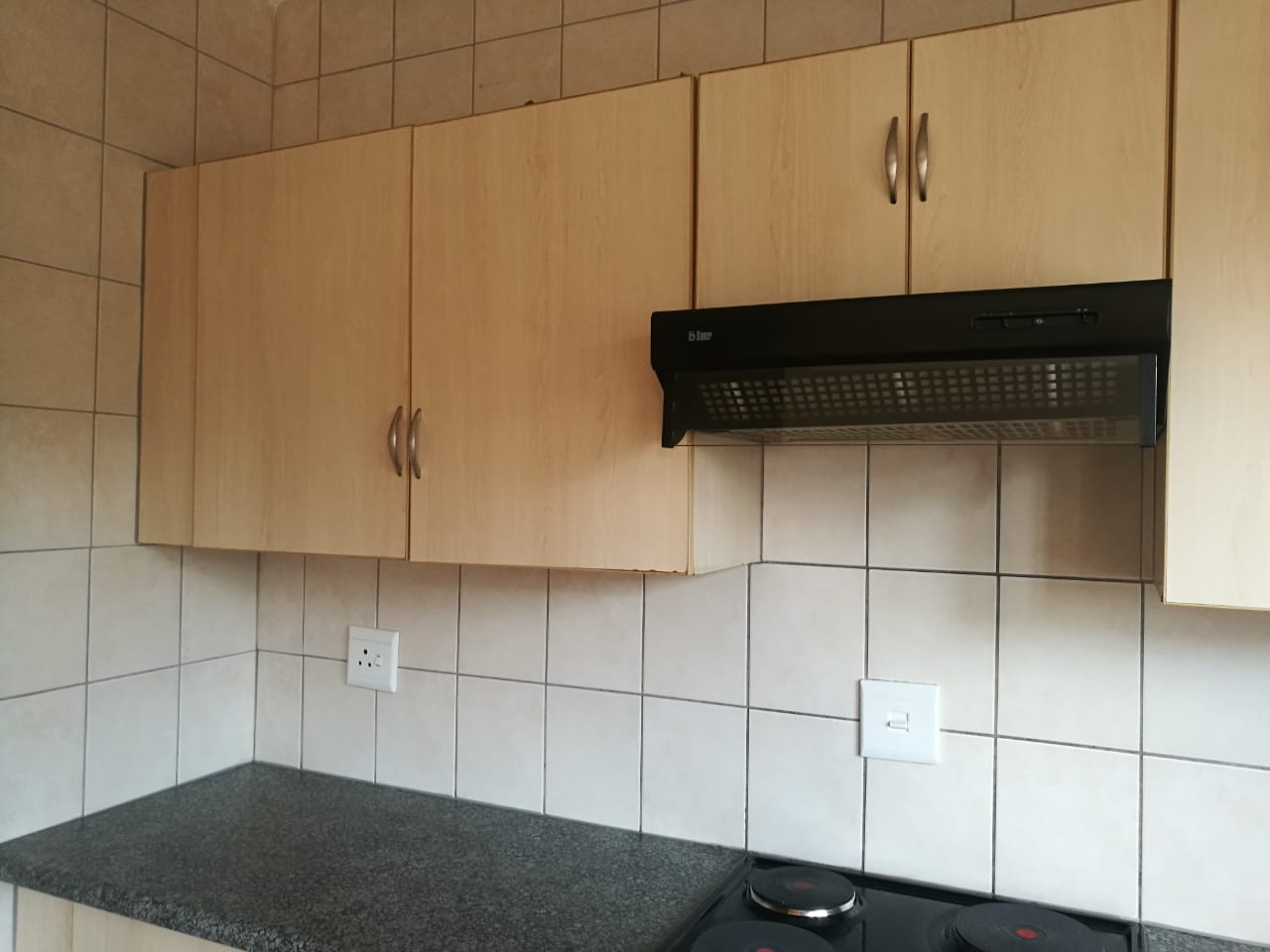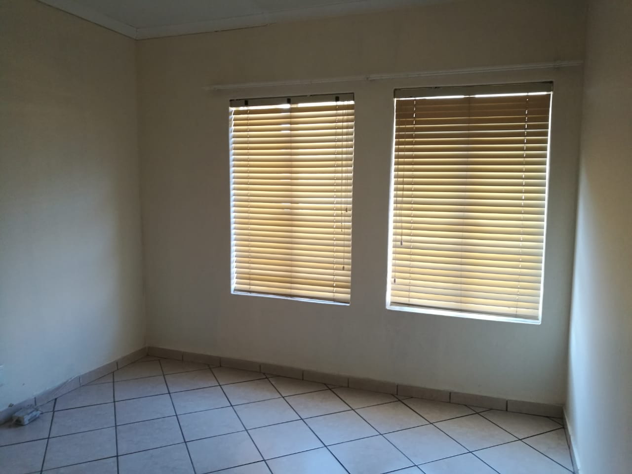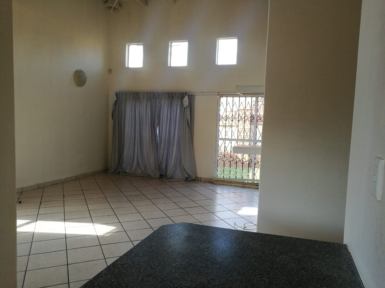 This spacious 2 bedroom, 1 full bathroom, kitchen, lounge, with floor tiles throughout the house is on an estate with 24 hour security. There are a guard house and electric fence on the perimeter walls. There is a prepaid meter and is gated into the yard. Pets are allowed as the yard space is big enough.