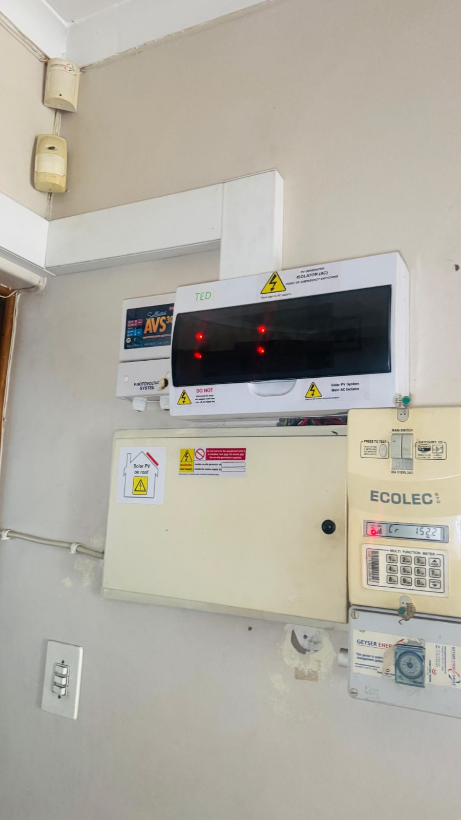 Main Solar Power System:16 solar panels (5.45 kW), inverter, and 2 batteries for sustainable energy