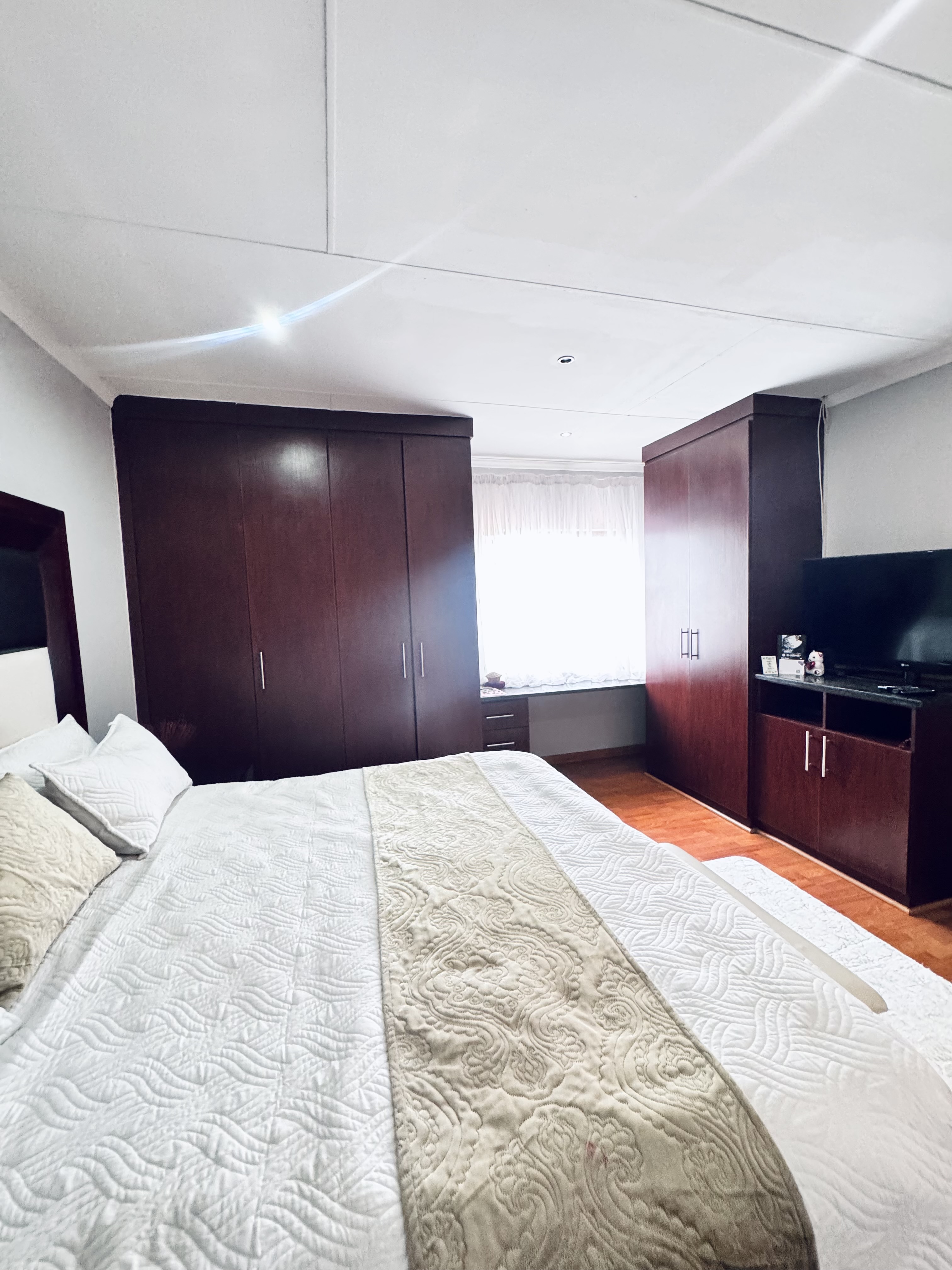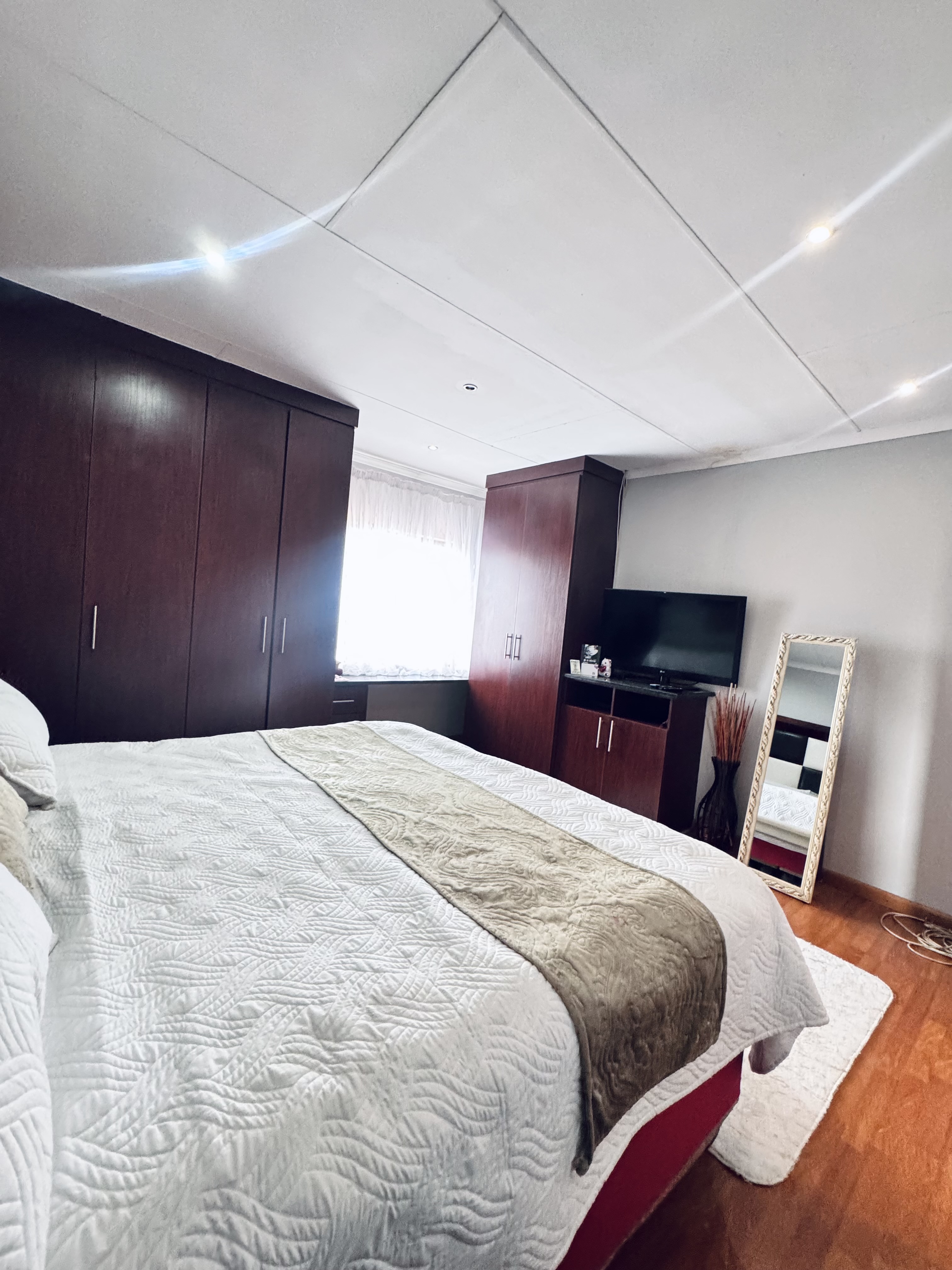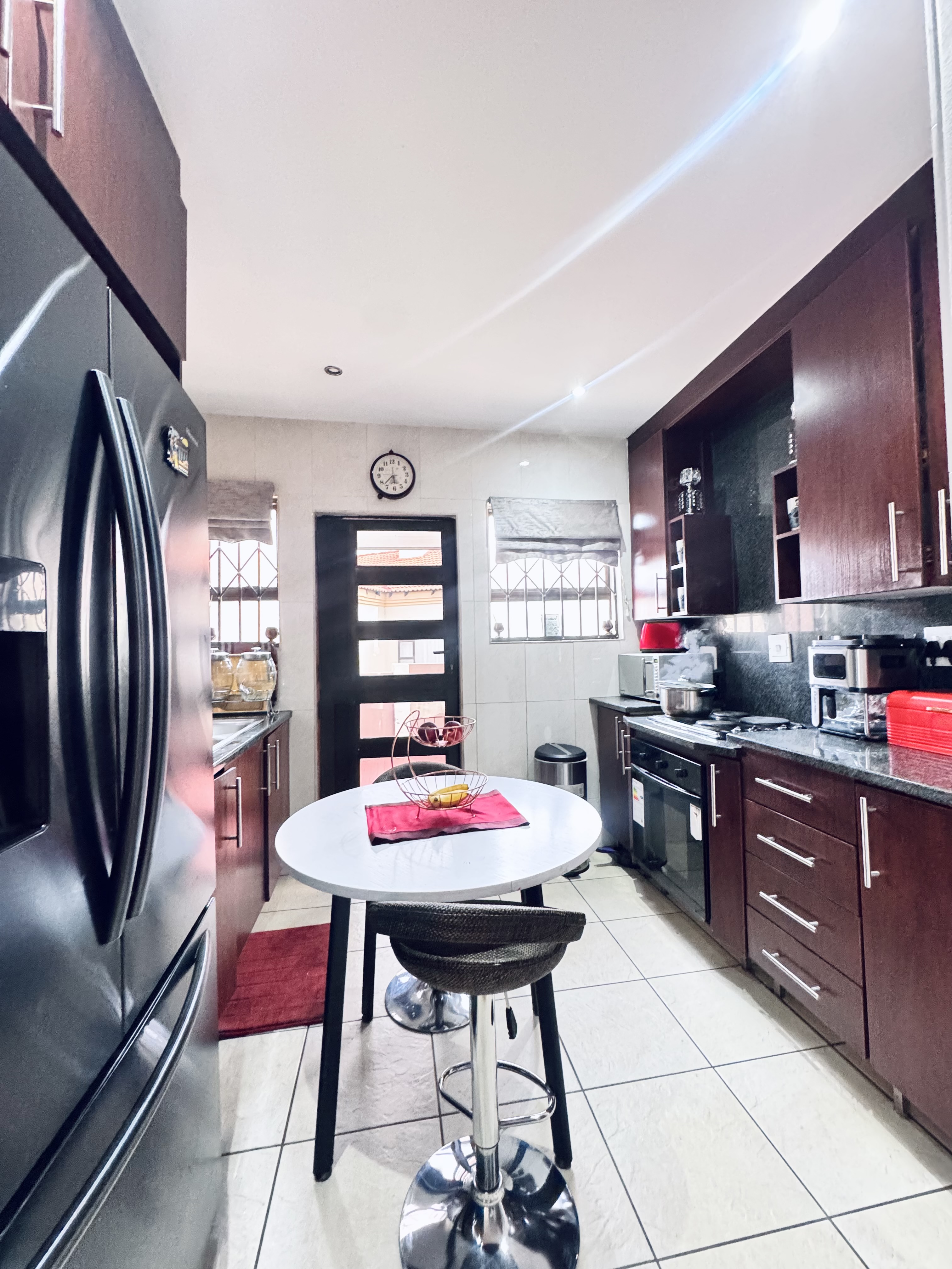 The modern kitchen has neat finishes and enough space for everyday cooking and entertaining. Outside you’ll enjoy a private backyard with a patio and built-in braai ideal for family time and entertaining guests. The yard is also safe for kids to play.