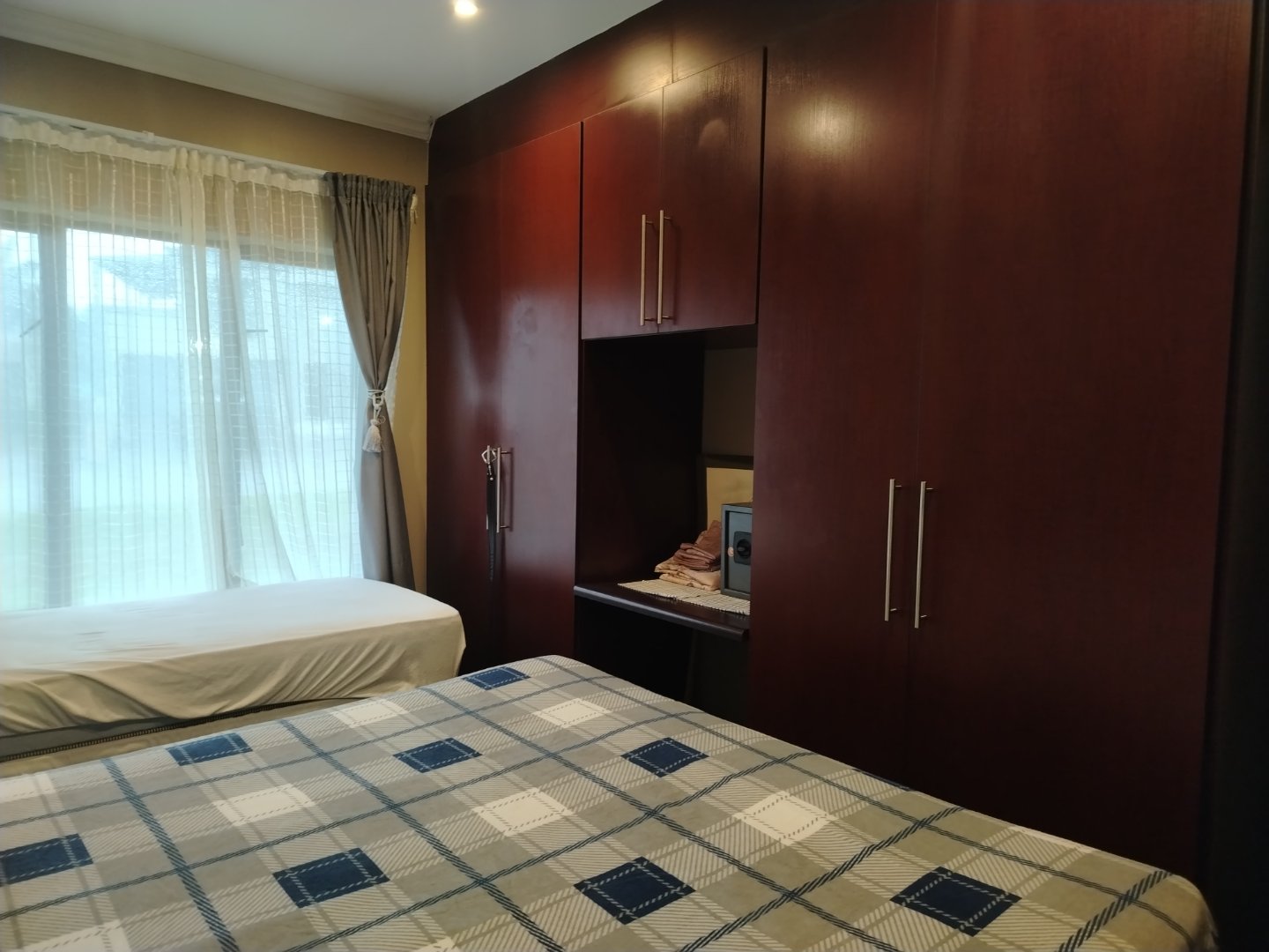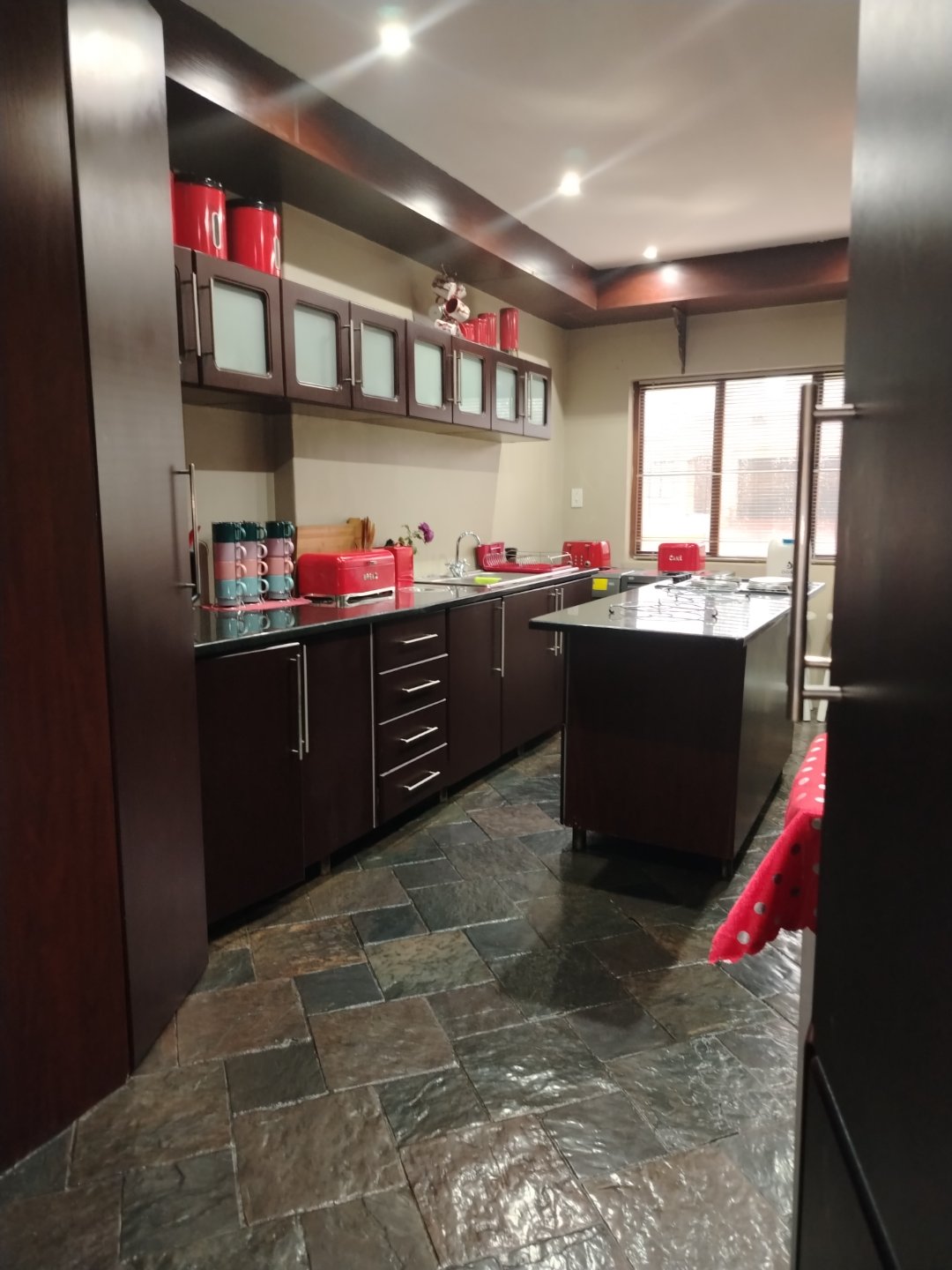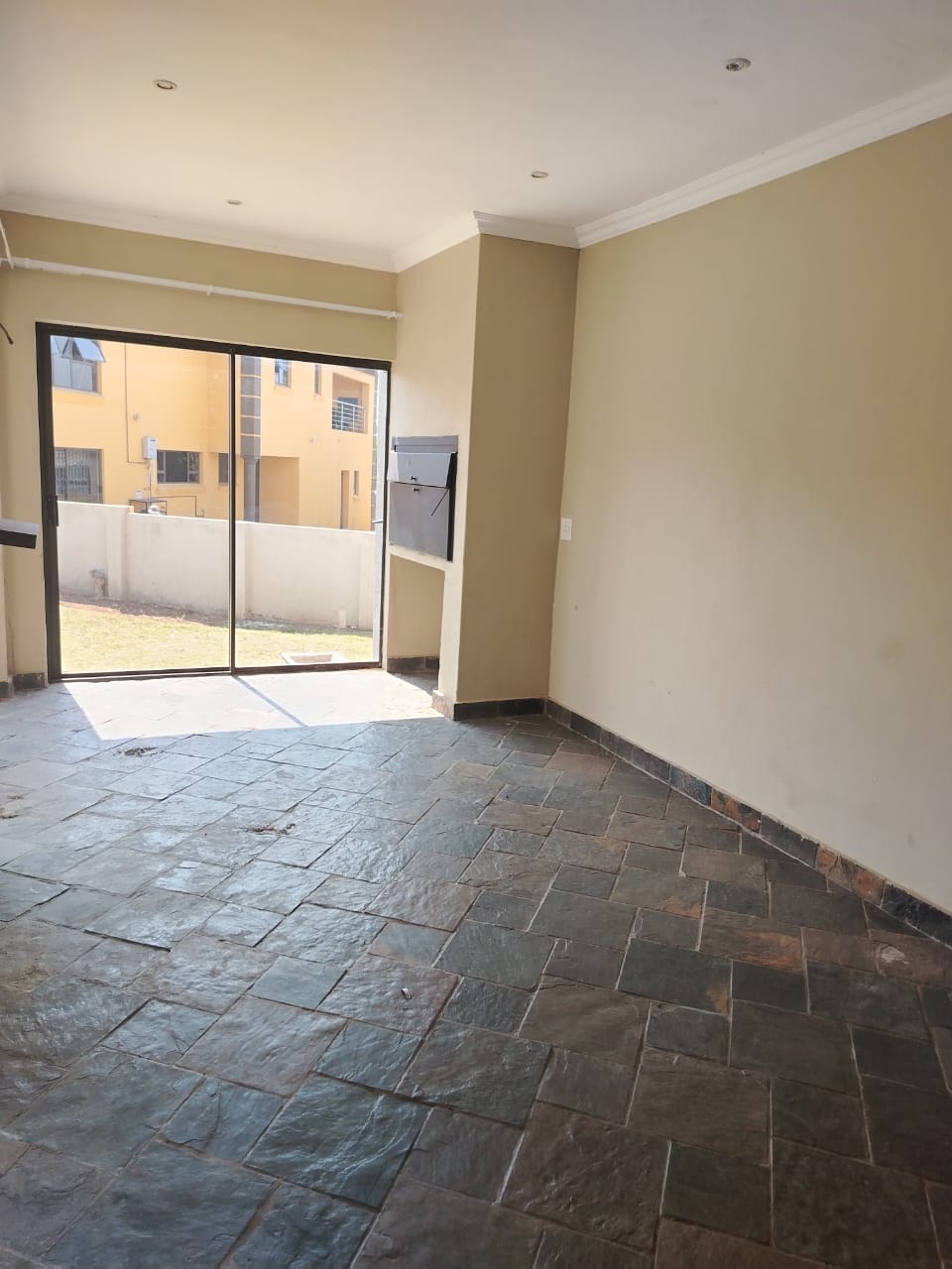 offering three bedrooms with two bathrooms that both have shower and bathe with stoned textured tiles for bush vacation feel soaking, as well as spacious family room and a spacious braai room both with sliding doors leading into the green backyard for you to enjoy. there is also a lovely kitchen with easy access into the double garage. In addition there is also a jo-jo tank for when the areas taps run dry