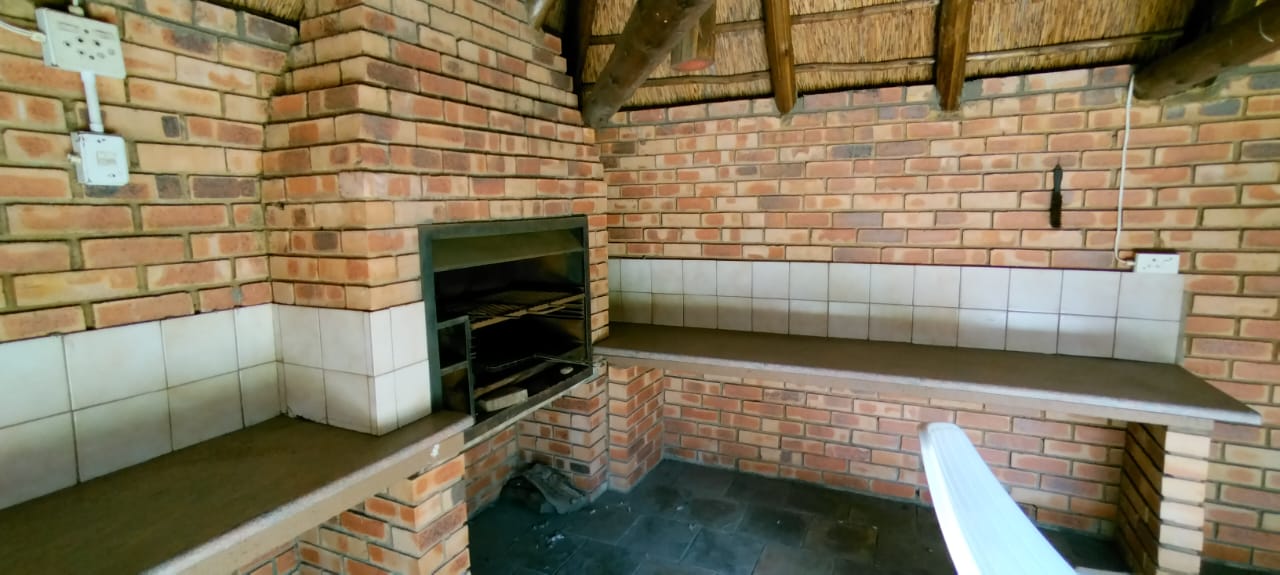 Has a lapa with a built in braai and a jacuzzi. Small low maintenance garden.