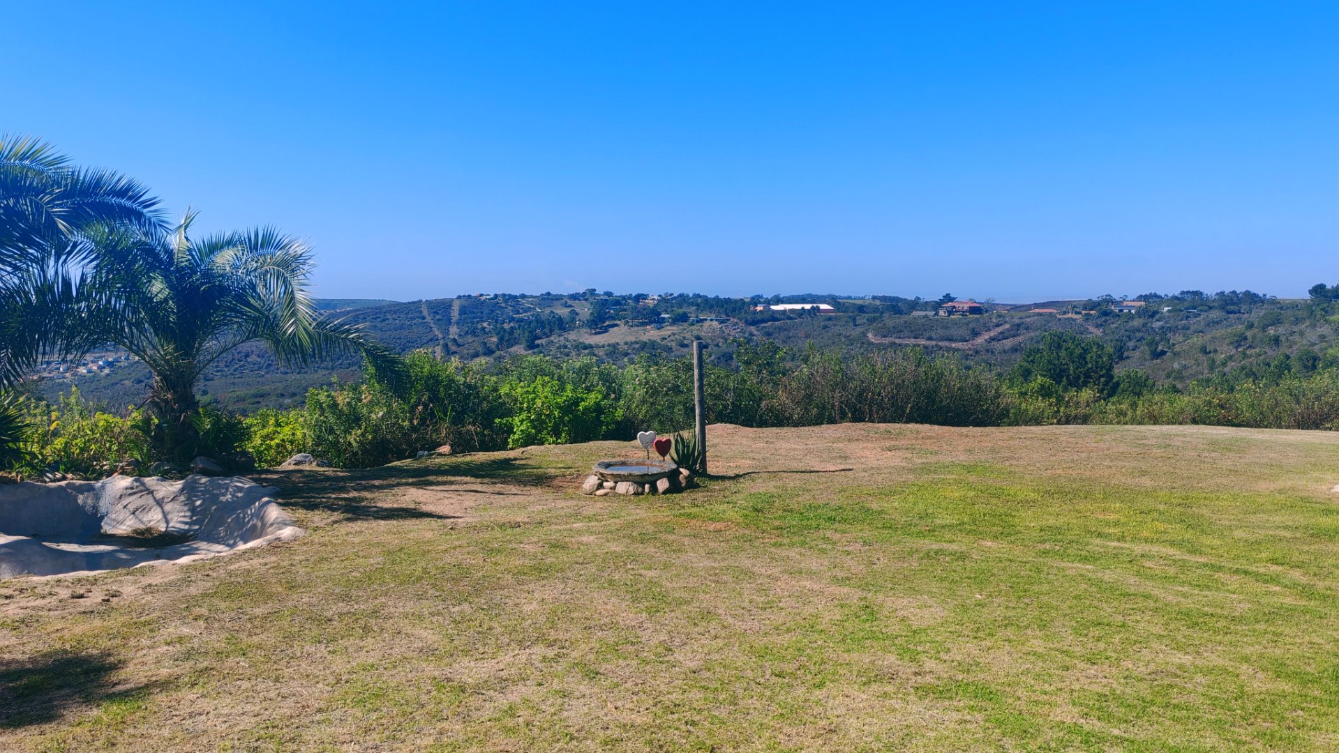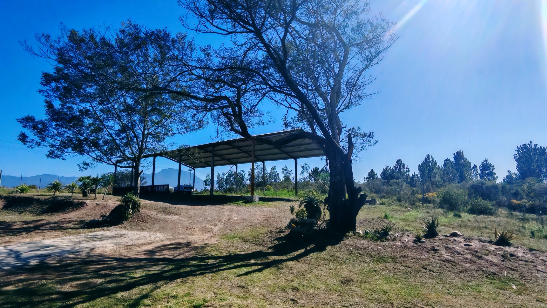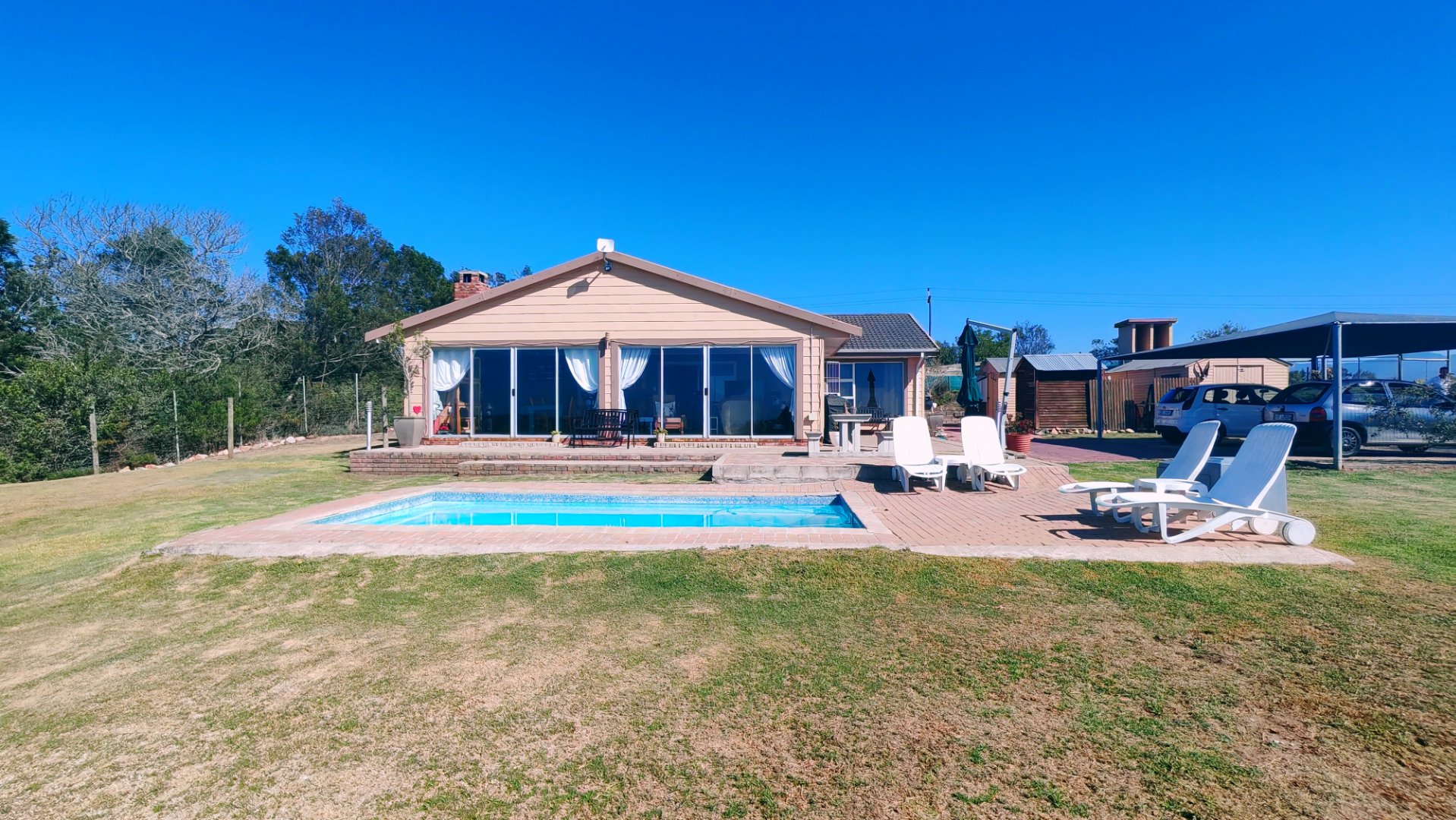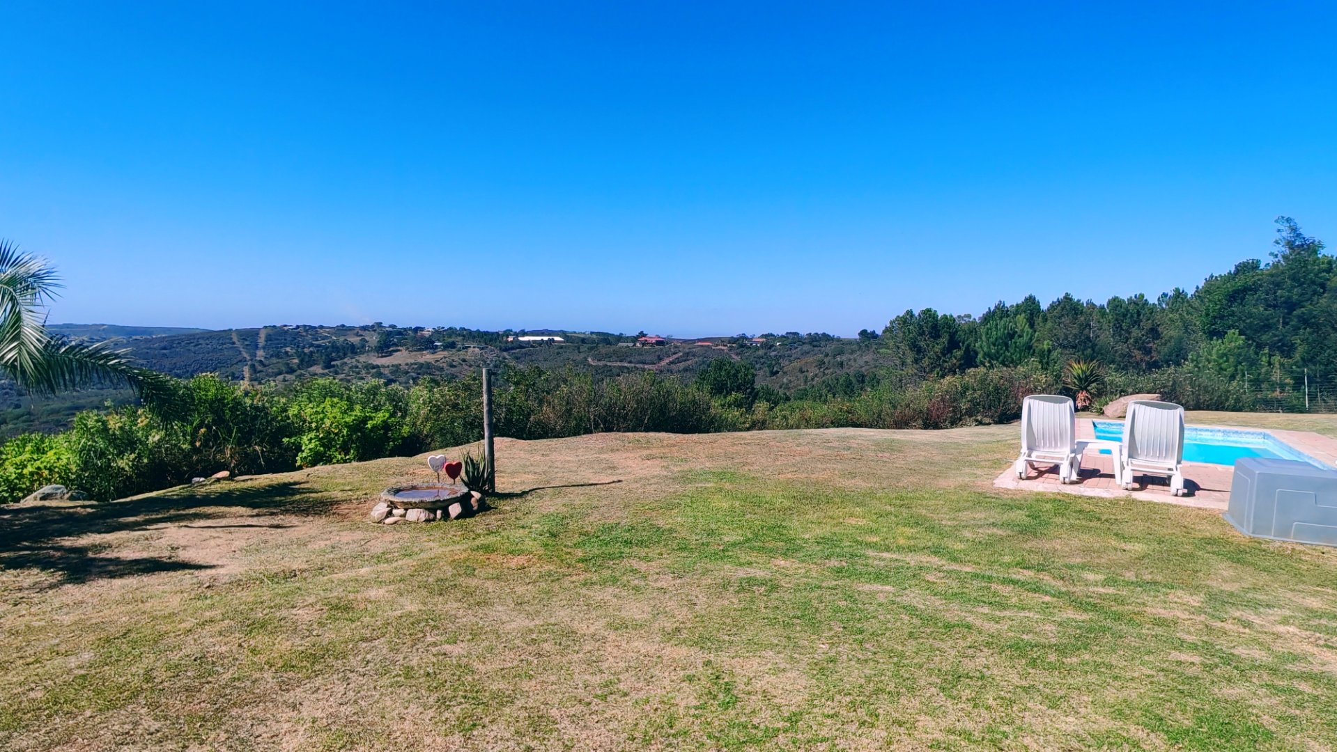 A beautiful 1,16ha small holding that consist of a 3 bedroom house with open plan kitchen and living areas, with a fire place, 2 bathrooms, laundry , a spacious braai room with a built-in braai and a sparkling pool. The house has stunning views over the valley, Great brak river, and the Ocean in the distance. Additional features are 3 separate wooden storerooms, a double shaded carport, a 12x25x4 m open store with a Chromadek roof and various fruit trees. The property is zoned Agricultural Zone 2. With approval a 2nd dwelling to the size of 150m2 can be constructed. There is already a terrace prepared for it. The property is totally fenced with a 2,4m wire fence.