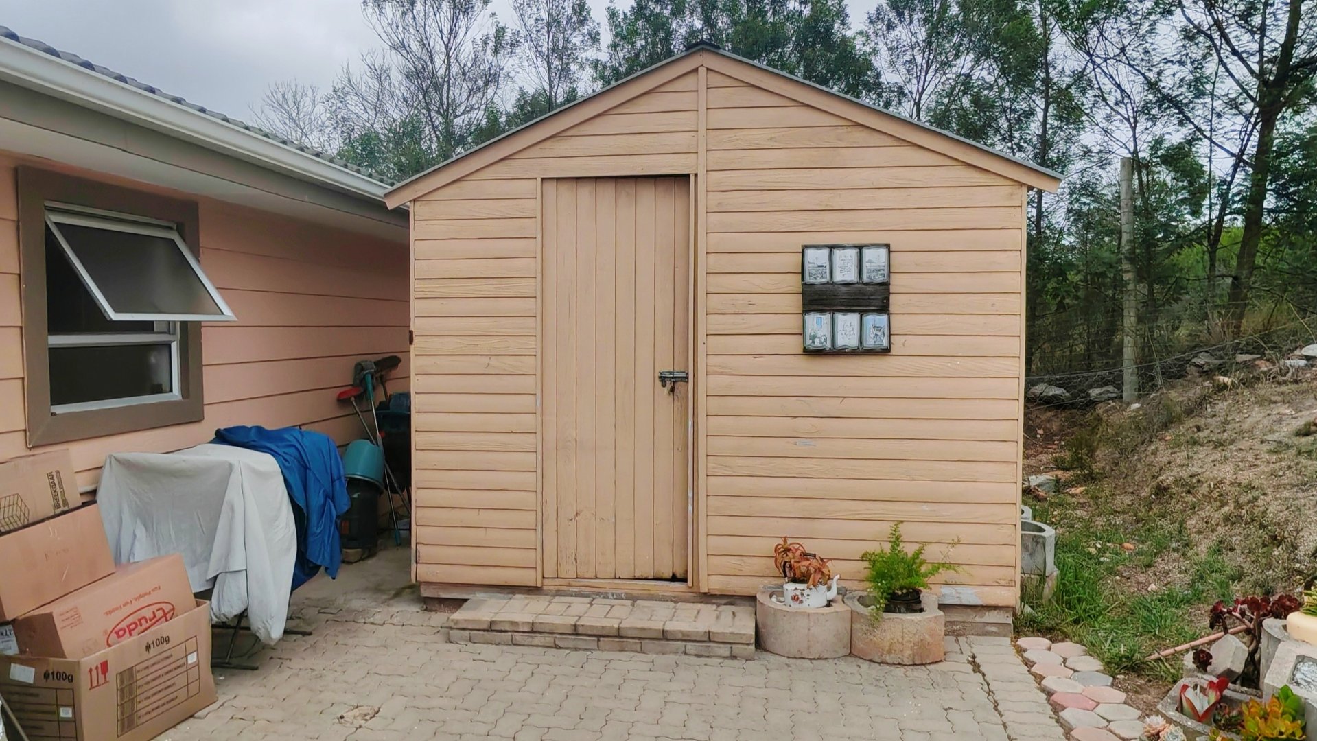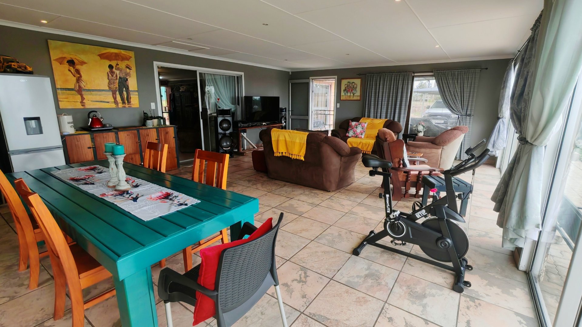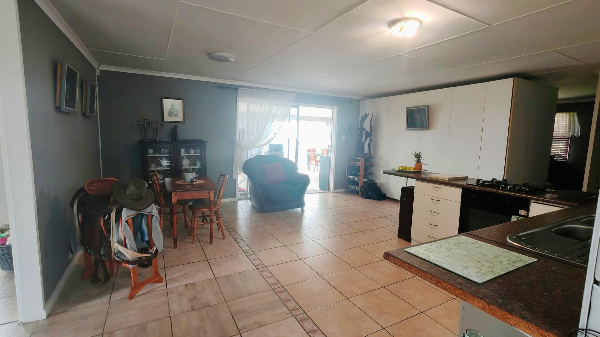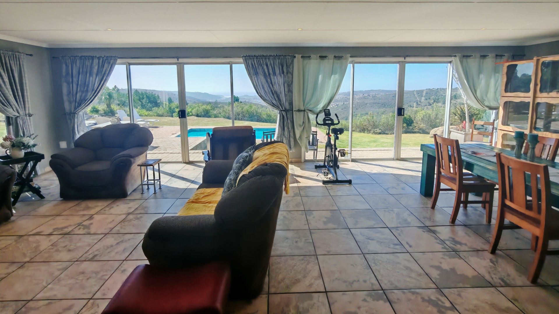 A beautiful 1,16ha small holding that consist of a 3 bedroom house with open plan kitchen and living areas, with a fire place, 2 bathrooms, laundry , a spacious braai room with a built-in braai and a sparkling pool. The house has stunning views over the valley, Great brak river, and the Ocean in the distance. Additional features are 3 separate wooden storerooms, a double shaded carport, a 12x25x4 m open store with a Chromadek roof and various fruit trees. The property is zoned Agricultural Zone 2. With approval a 2nd dwelling to the size of 150m2 can be constructed. There is already a terrace prepared for it. The property is totally fenced with a 2,4m wire fence.