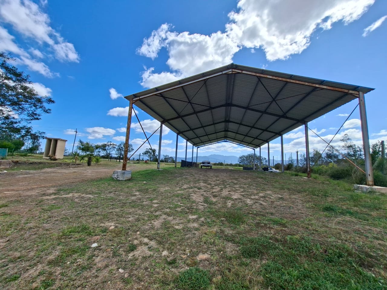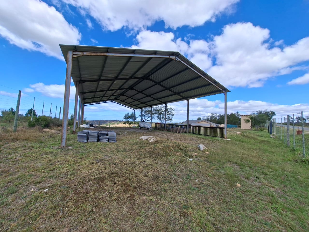 On the property you’ll find a solid brick building with an iron roof (15m x 6m), currently set up as an open-plan home with a kitchen, lounge/TV room, and living area. There are two bedrooms, plus a bathroom with shower, basin, and toilet.