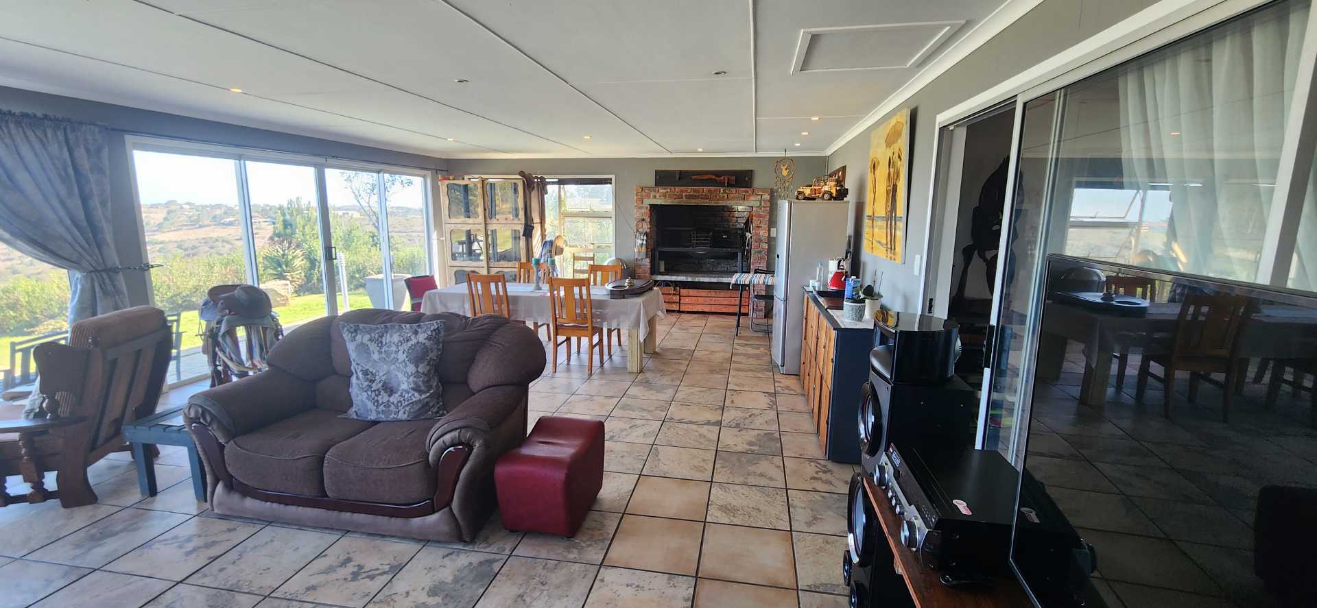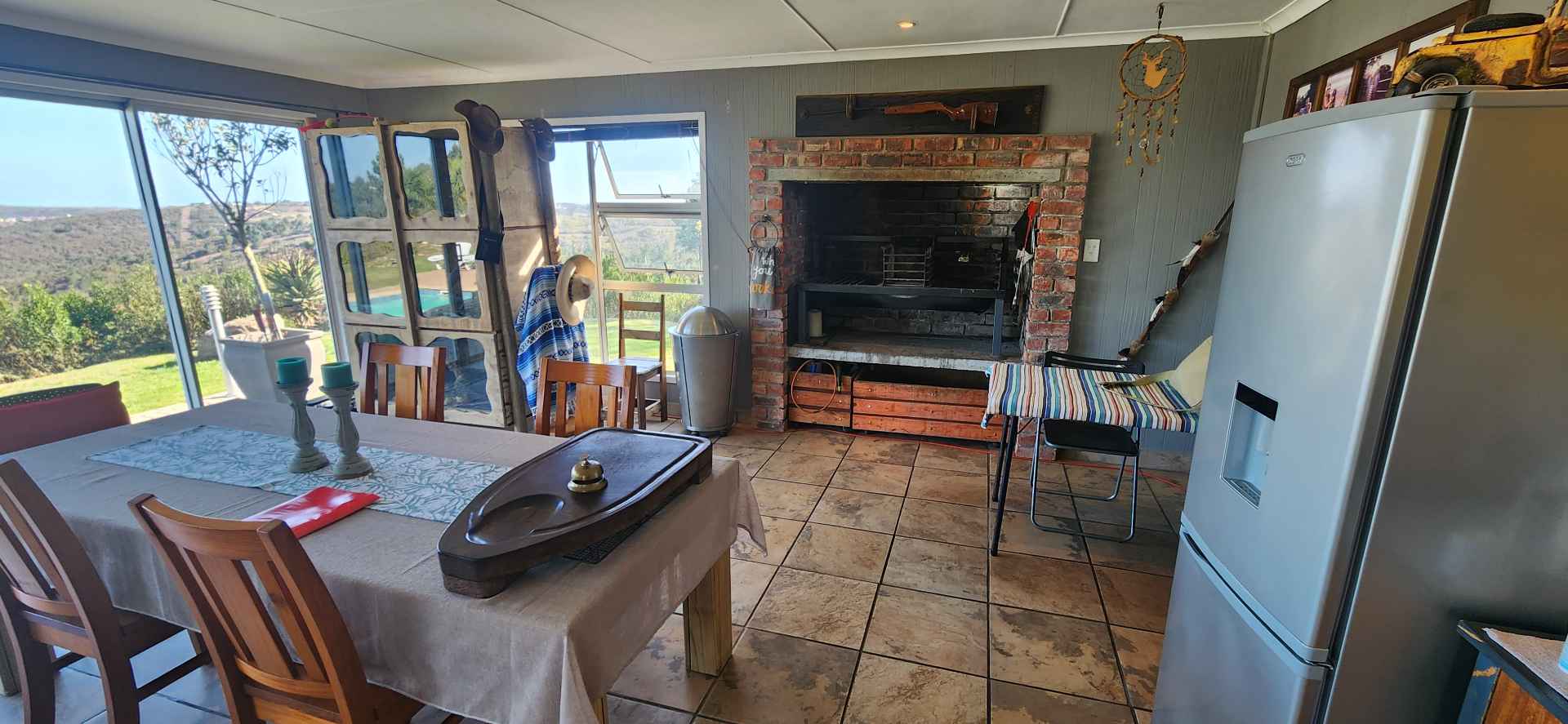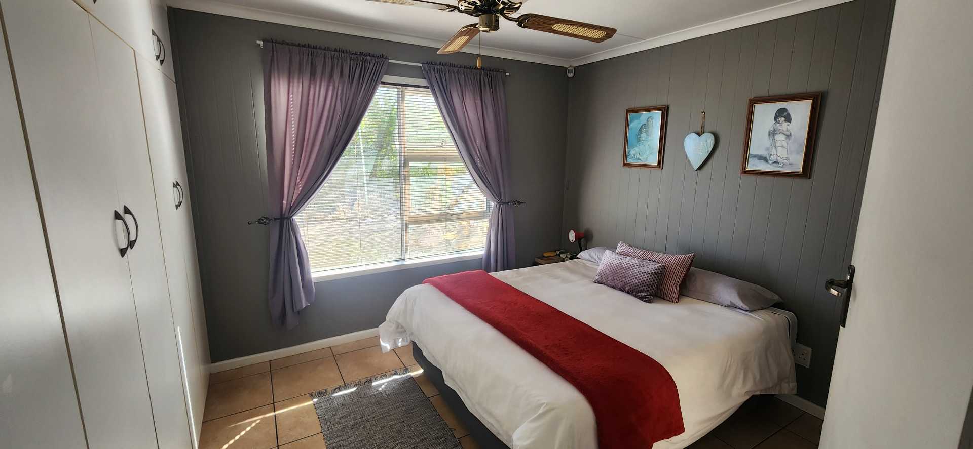 The neat well designed and well-maintained house has a spacious living area with built-in braai and large sliding doors leading to a sparkling pool with distant sea view.