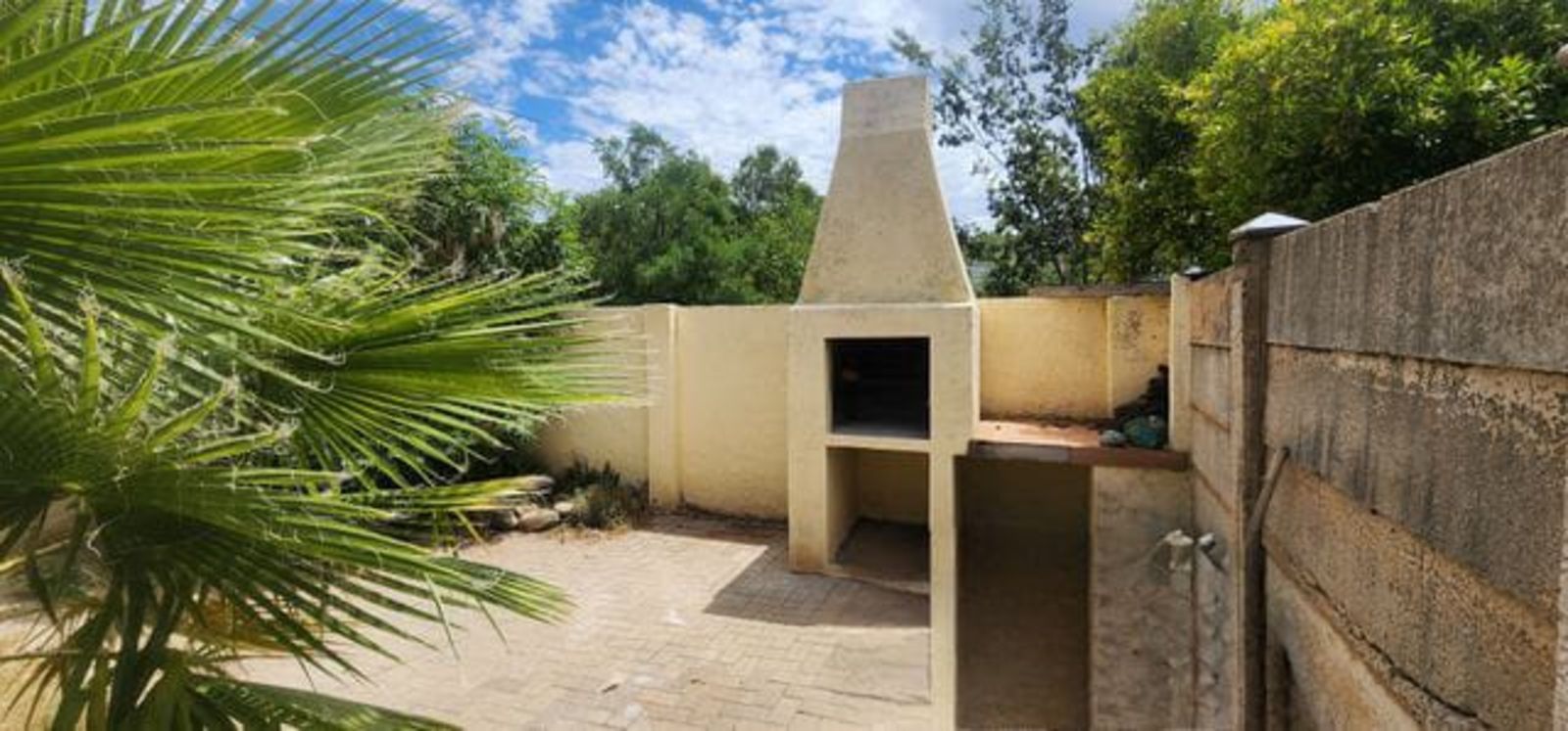 The inviting lounge provides a warm and welcoming atmosphere, while the modern kitchen is well-equipped with built-in cupboards, an under-counter oven, hob, and extractor fan—ideal for effortless meal preparation. An inside braai area with a built-in braai makes entertaining a delight, no matter the season.