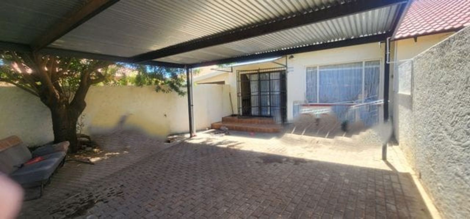 A double carport ensures ample covered parking, while the fully fenced yard, burglar bars, and alarm system provide added security and peace of mind.