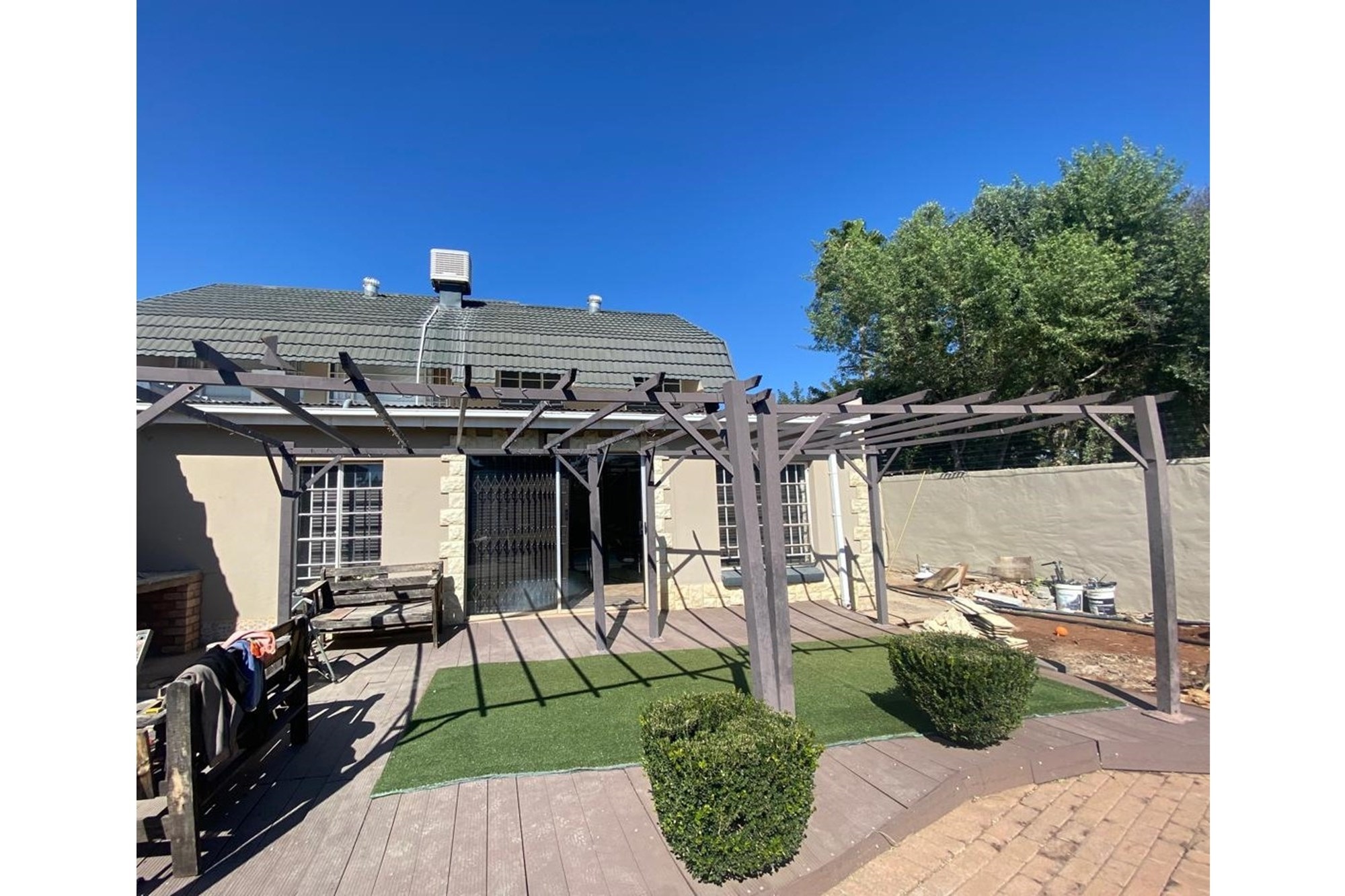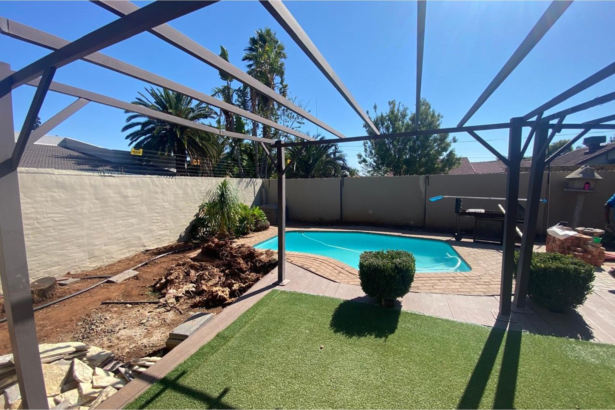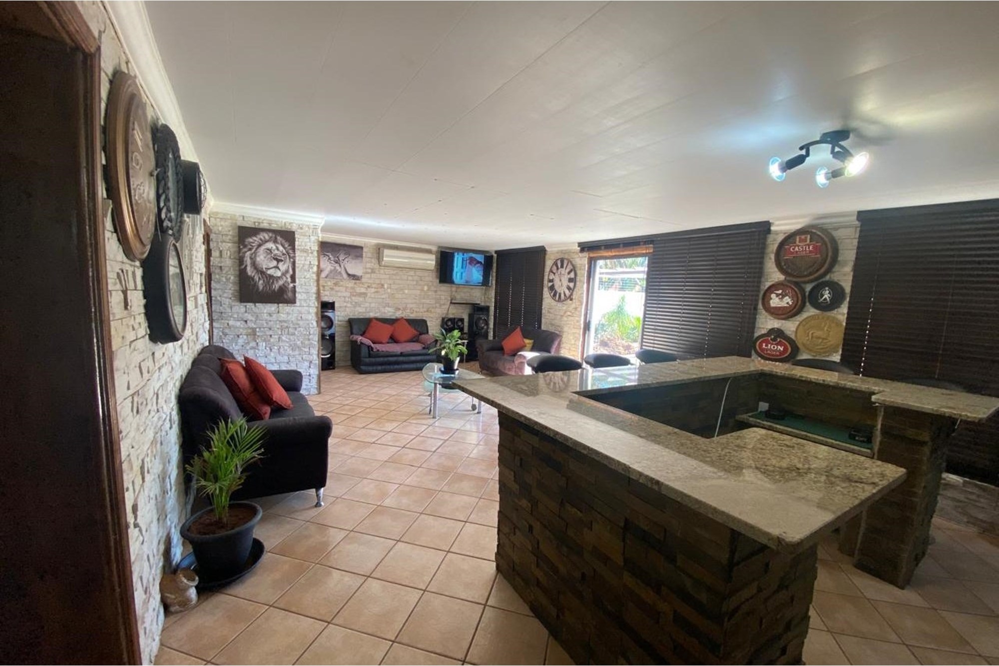 The home boasts an entertainment room featuring a built-in braai and bar, creating an ideal space for hosting gatherings. Outside, you`ll find a swimming pool to enjoy on warm days, surrounded by a well-maintained garden equipped with a Jo-Jo tank for water conservation.