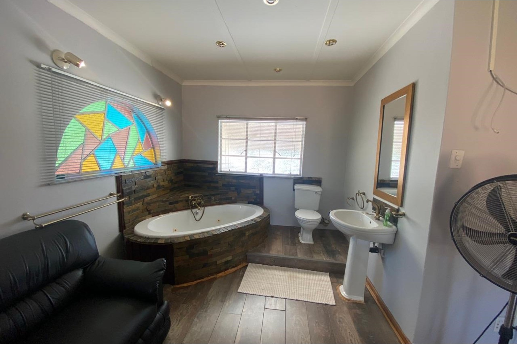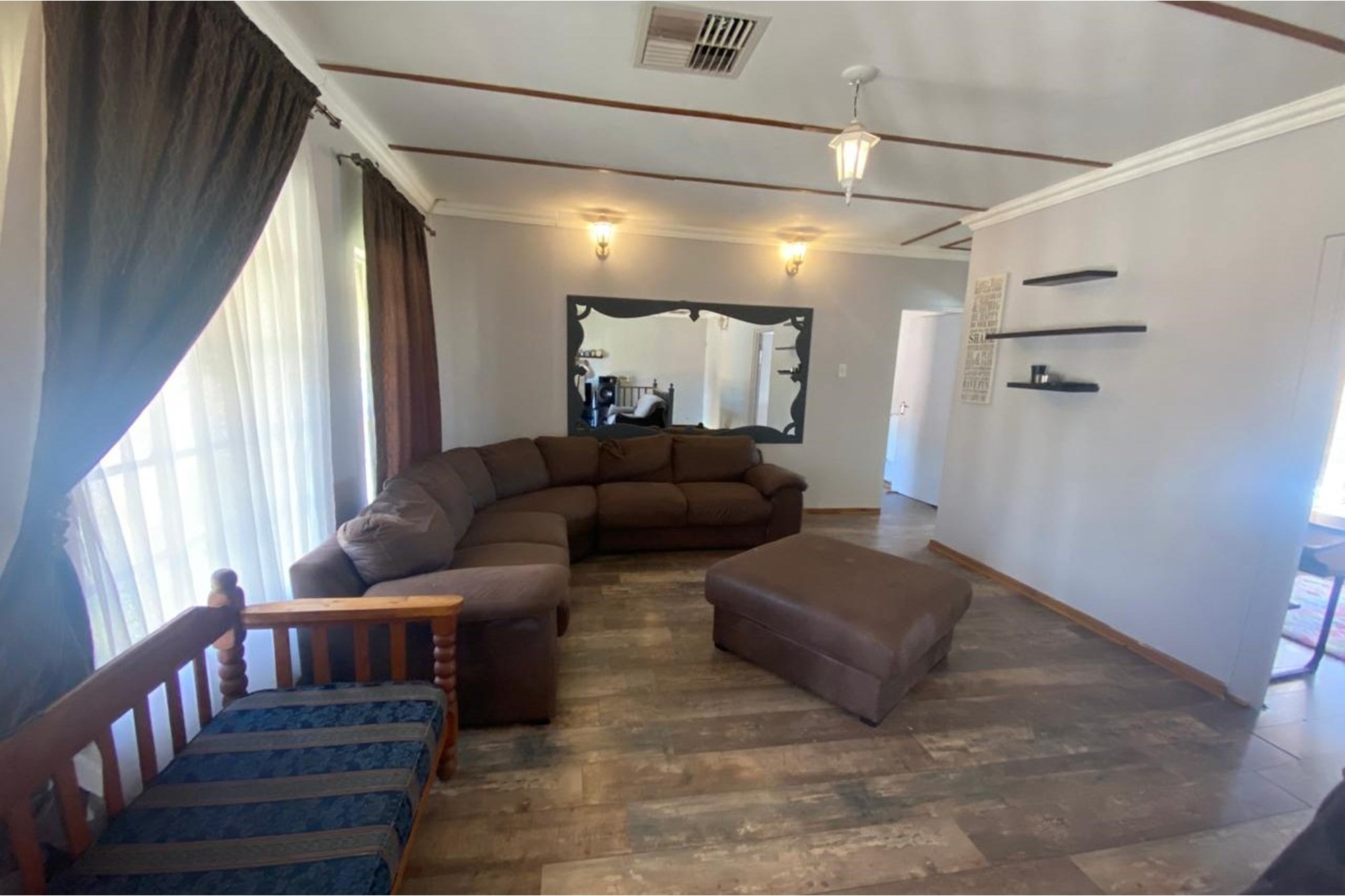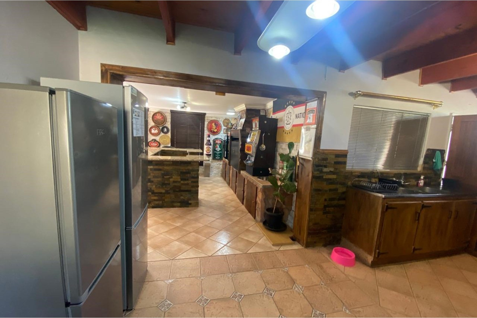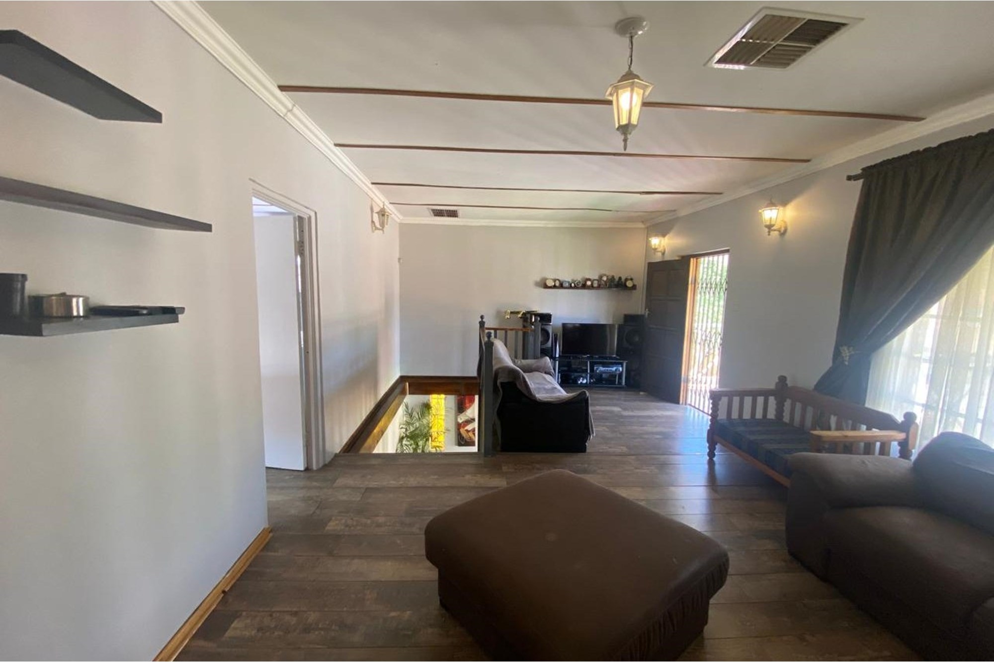The home boasts an entertainment room featuring a built-in braai and bar, creating an ideal space for hosting gatherings. Outside, you`ll find a swimming pool to enjoy on warm days, surrounded by a well-maintained garden equipped with a Jo-Jo tank for water conservation.