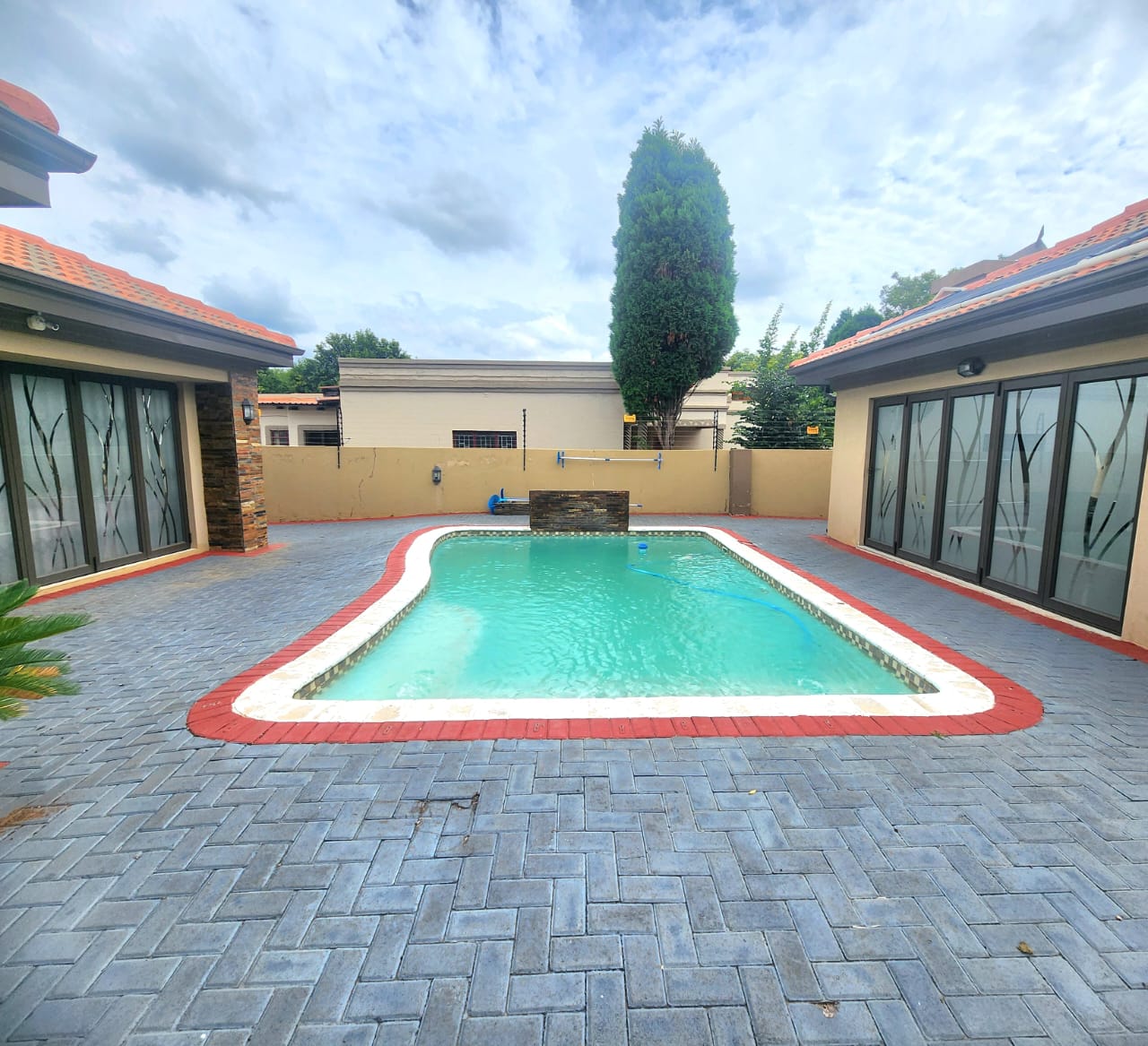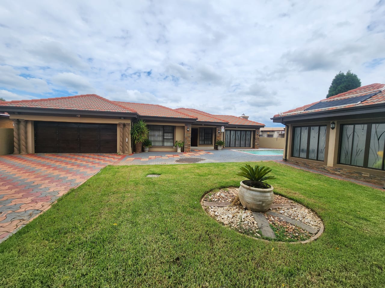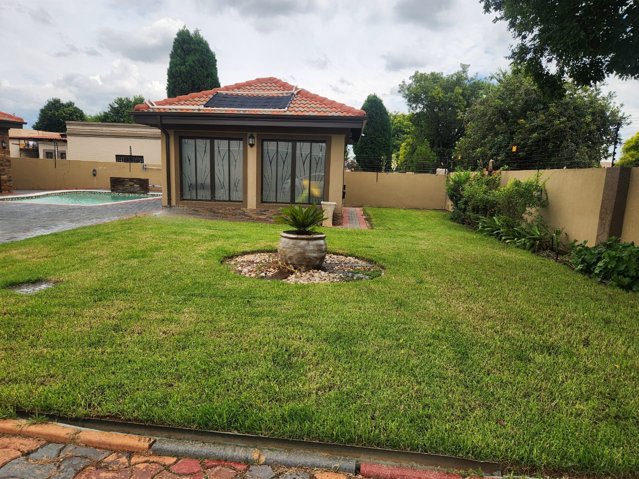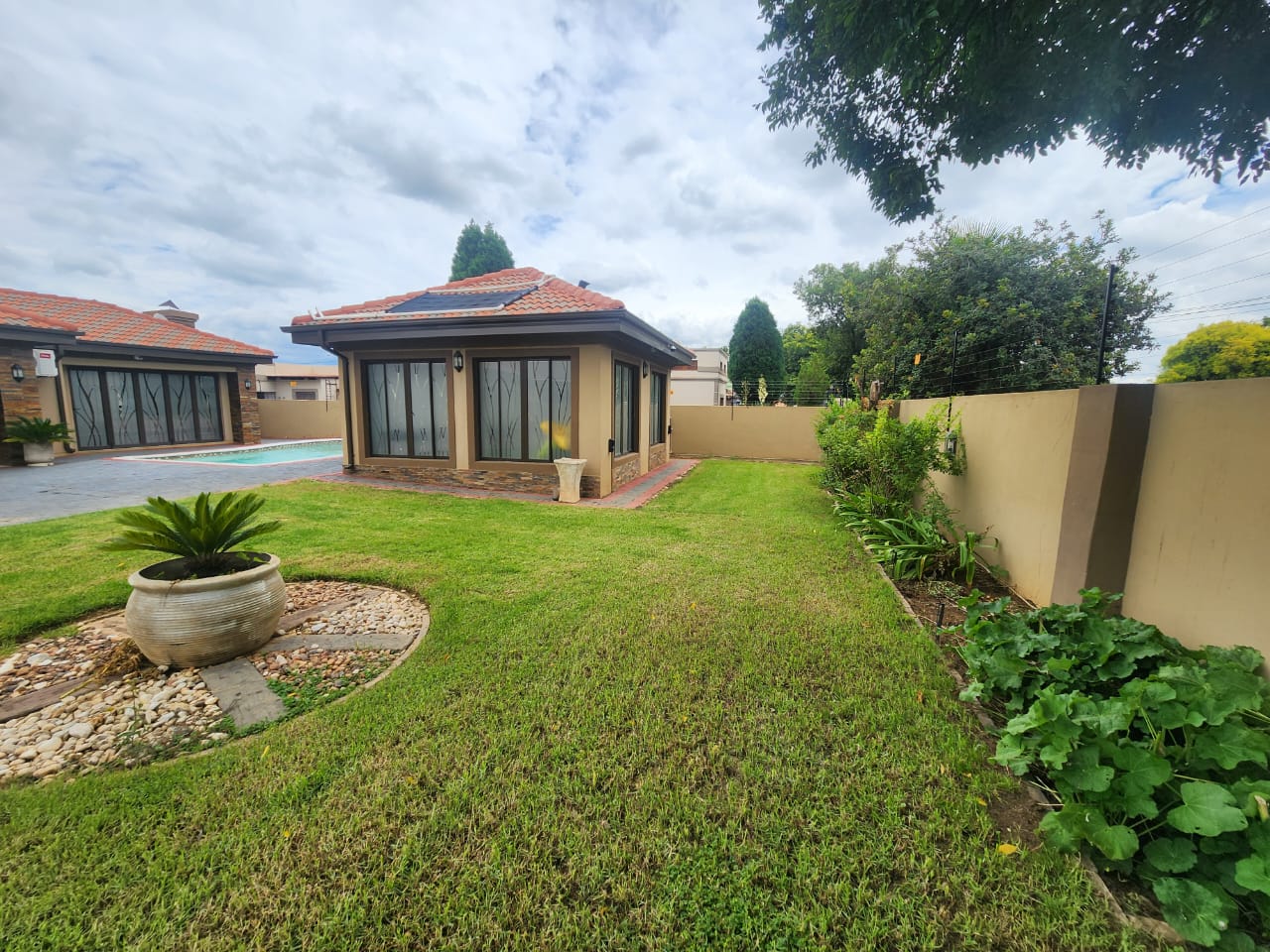 Introducing a beautiful modern 3-bedroom, 2-bathroom home that has it all. This property features a pool, a reliable borehole, and a gas geyser for your convenience. The house is equipped with solar power and a backup battery, ensuring you have a sustainable and uninterrupted power supply. Additionally, there's a separate outside room with an en-suite bathroom, perfect for guests or as a private workspace. The modern kitchen is a chef's dream, ready for all your culinary adventures. You'll love the outdoor entertainment room, ideal for hosting gatherings and enjoying leisure time. For your peace of mind, the property is secured with an advanced alarm system and electric fence. Don't miss out on the opportunity to own this extraordinary home. Schedule a viewing today and make this dream house your reality!
